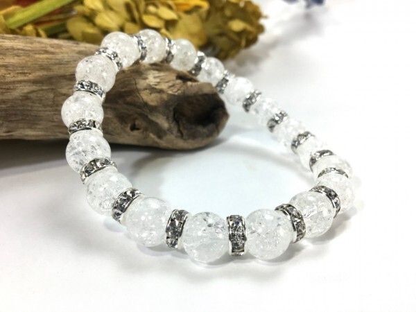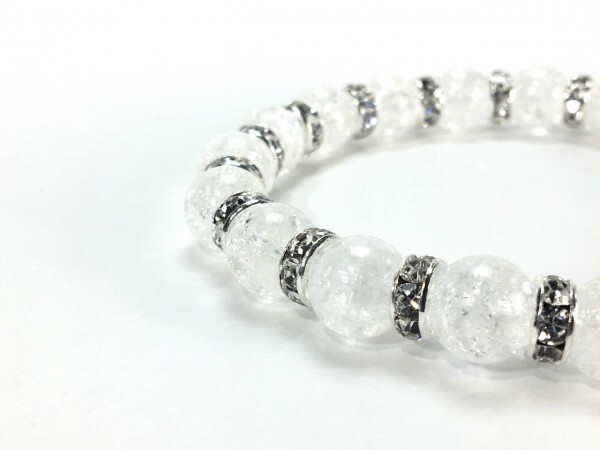 こちらは、10mm玉のクラック水晶を使用したパワーストーンブレスレットです。間にはロンデルを挟み高級感あるブレスレットに仕上げています。石大きさは腕にも馴染みやすいように10mm玉を使用して、サイズは内径約18cmです。(サイズ調節も無料で承っています。サイズ変更の場合は落札後、取引ナビにてご一報くださいませ。) 数に限りがございますので気になる方はお早めにどうぞ。