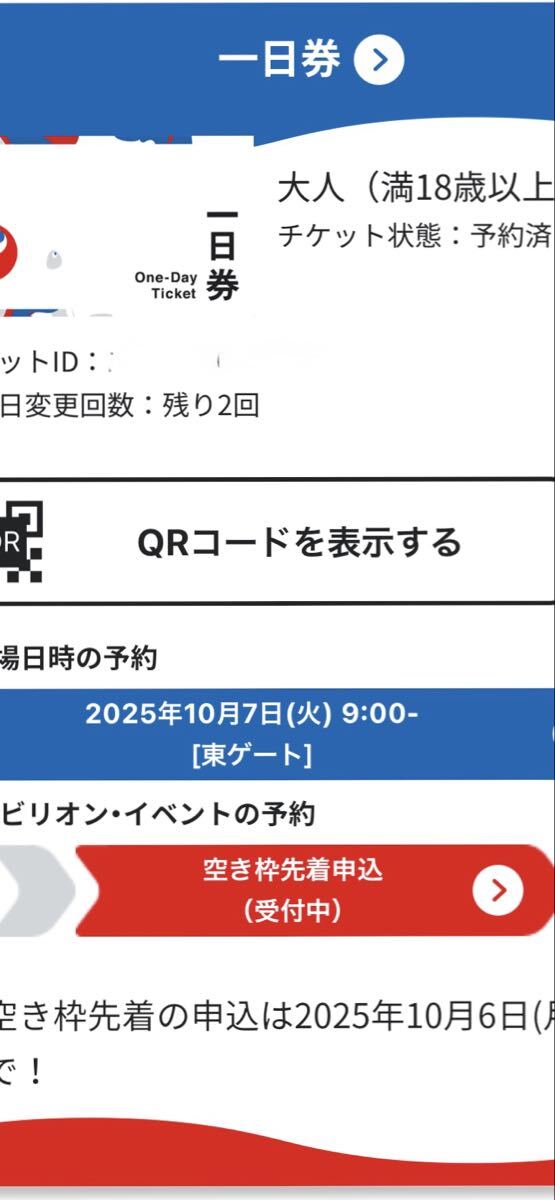 10月 7日東ゲート9時に予約してあります。