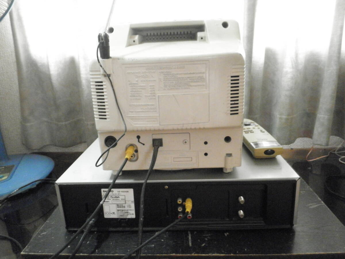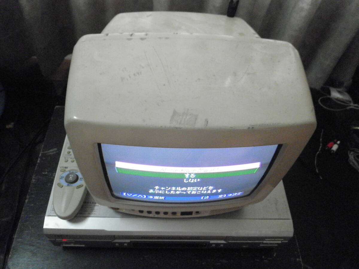 ☆送料無料!三洋SANYOのステレオビデオデッキVZーH33G,パナソニックのテレビ付き(おまけとお考え下さい)です。リモコンは作動しませんがお付けしますのでネットで安価で入手できます。小テレビ付きで机の上に置いて見られ手動操作できます。地デジは直接は見られません。テレビからのライン入力で視聴、録画できます。以上の分お安く出品いたします。☆点検、ヘッドクリーニングいたし、完全動作を確認しています。☆撮り貯めたビデオを見たい人には貴重でしょう。☆プレイ、REWFF及びそのピクチャーサーチの機能。☆ライン1、2とも録音OK。DVDやVHSテープのダビング、テレビのアナログ出力から本VHSに録画もできます。☆天板に置き傷はありますが、目に見える傷はありません。見た目もきれいです。☆純正リモコン(不良)とAVコード、電源コード付きです。☆落札いただきましたら感謝の気持ちを込めまして、送料をサービスいたしております。☆よろしくお願いいたします。