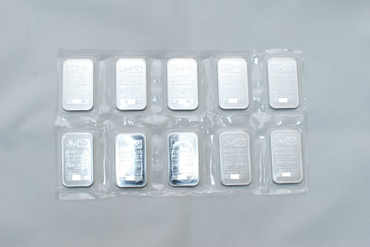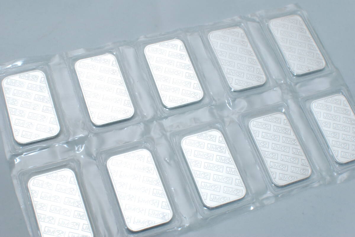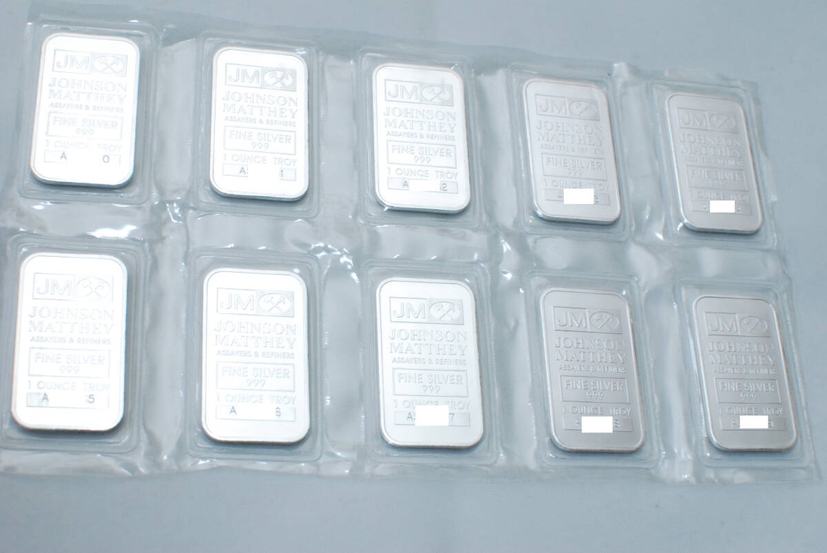 新品 JOHNSON MATTHEY 銀 インゴット 311g 31.1g x 10枚 シリアル連番 ジョンソンマッセイ 10トロイオンス 1トロイオンス