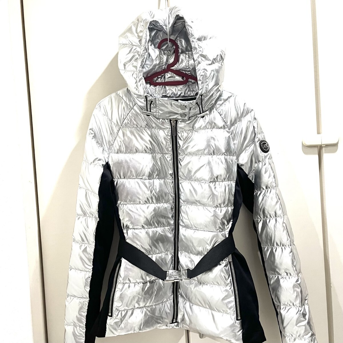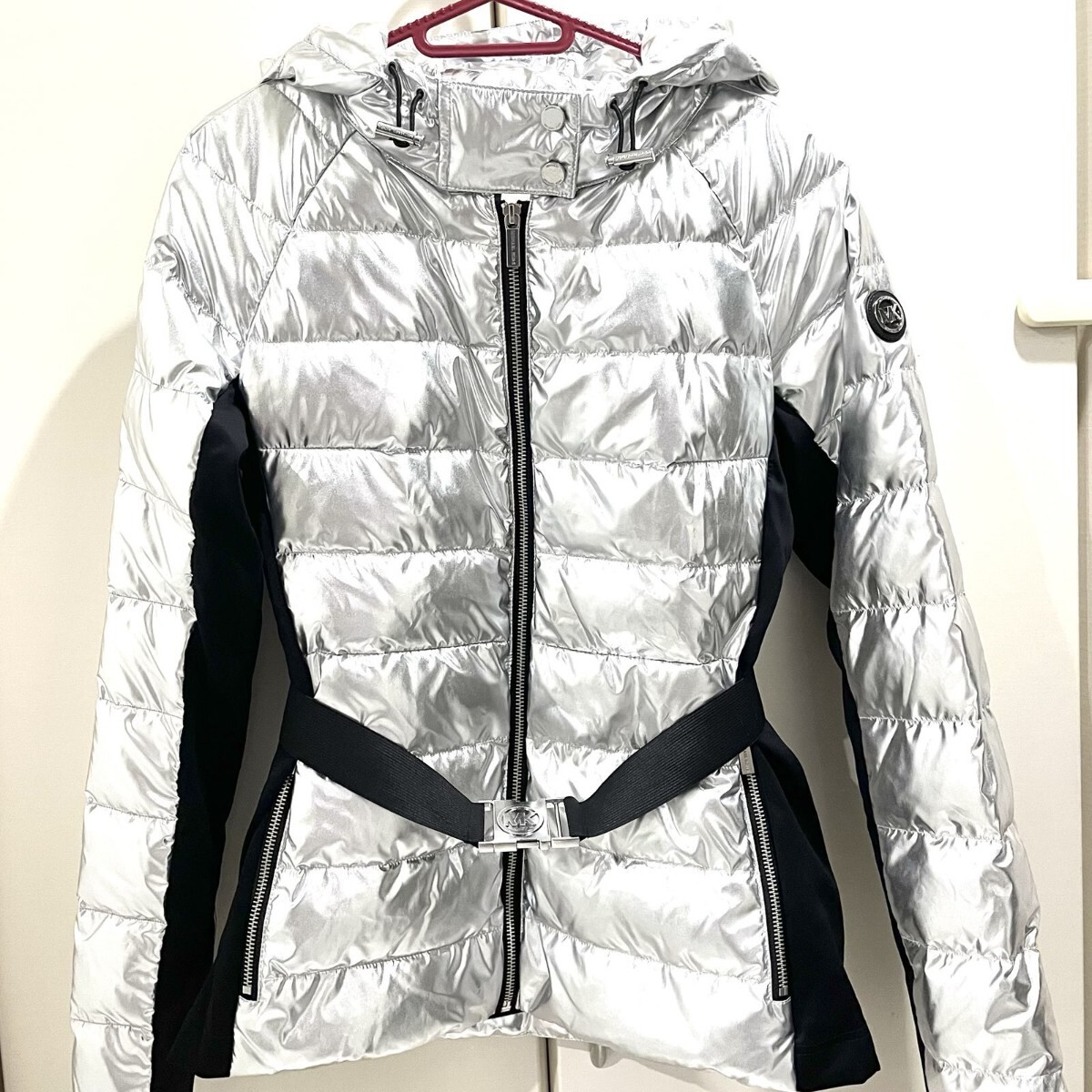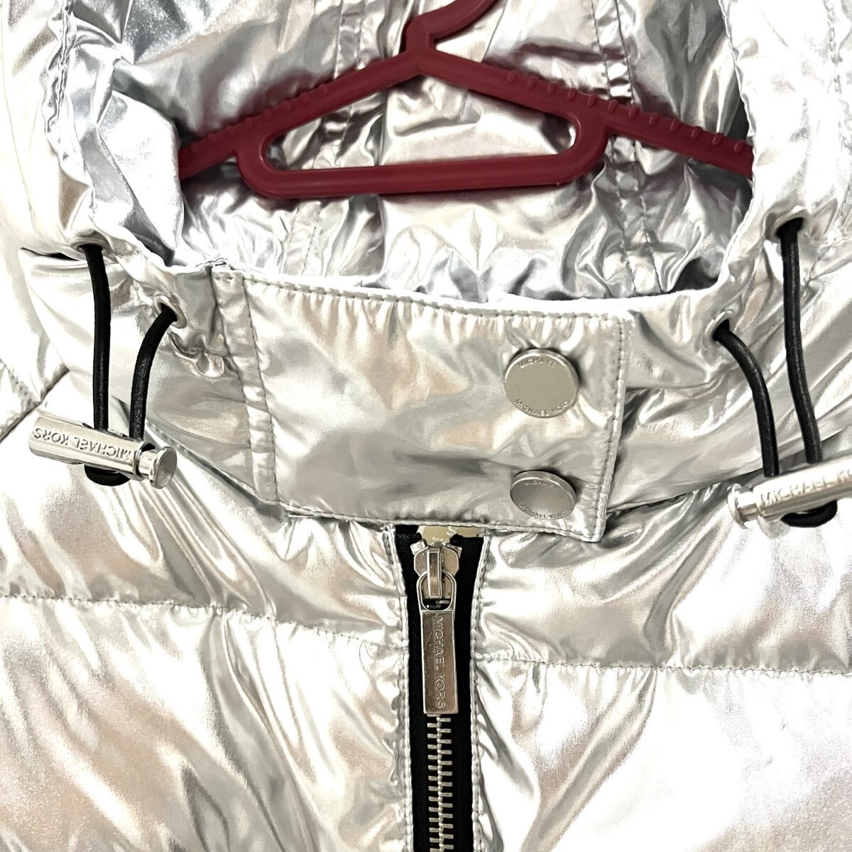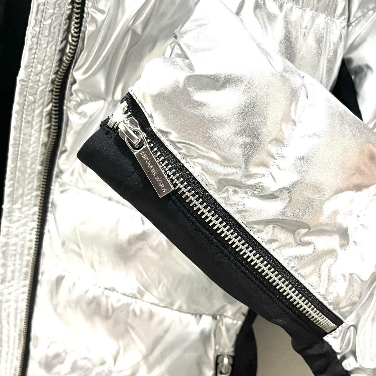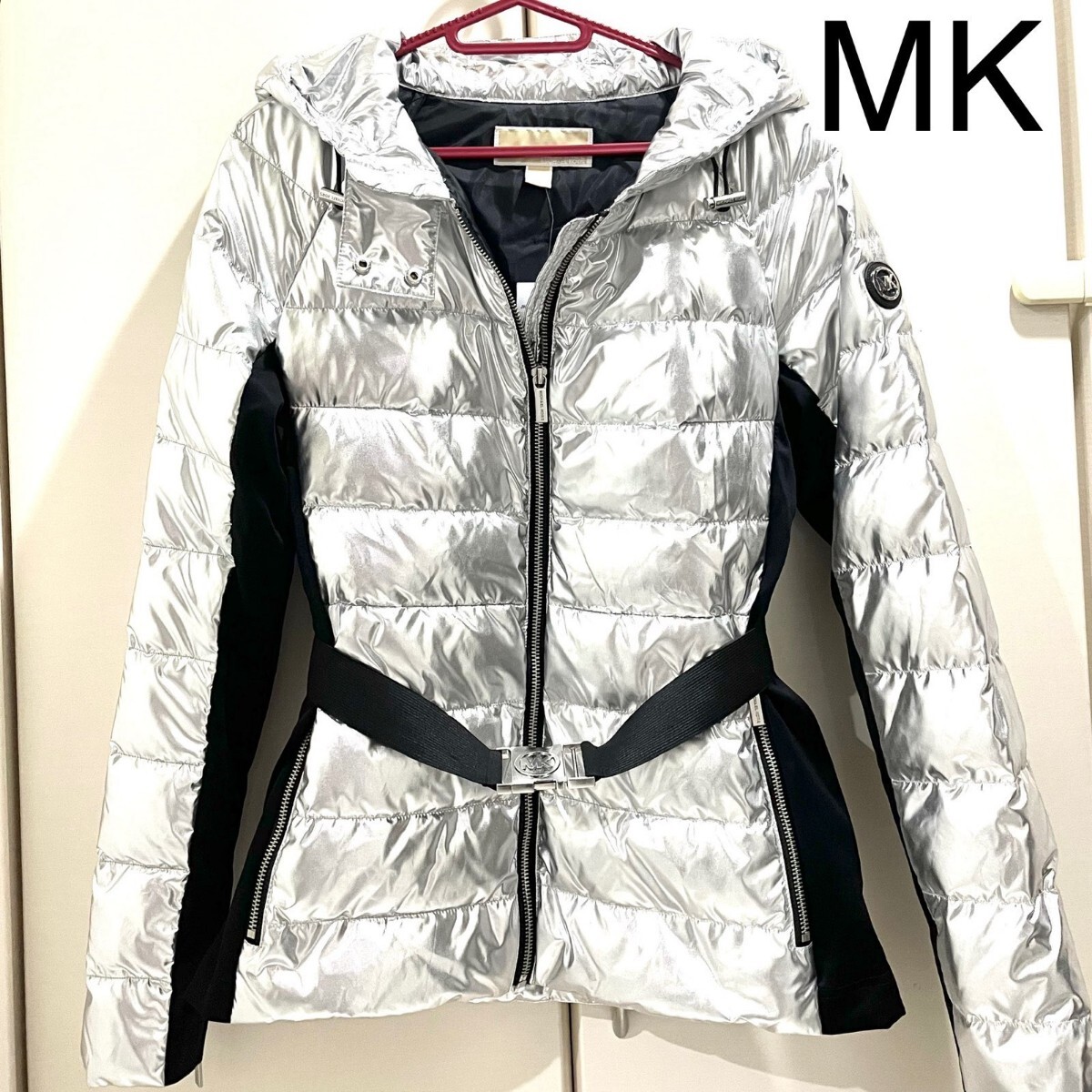 マイケルコース MK 新品 ブランド 光沢 ベルト シルバー ロゴ フード ダウンジャケット コート アウター レディース 防寒 2way 撥水 防風