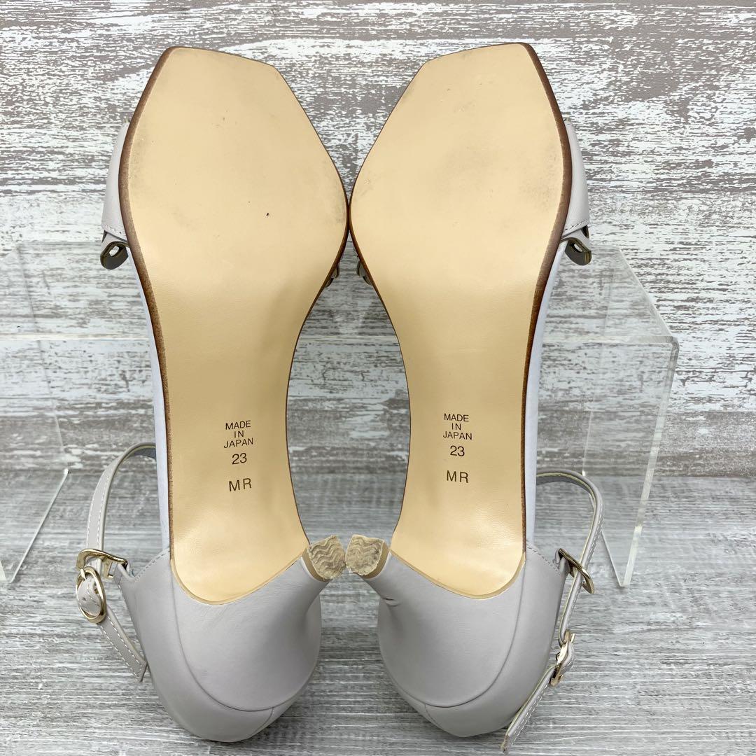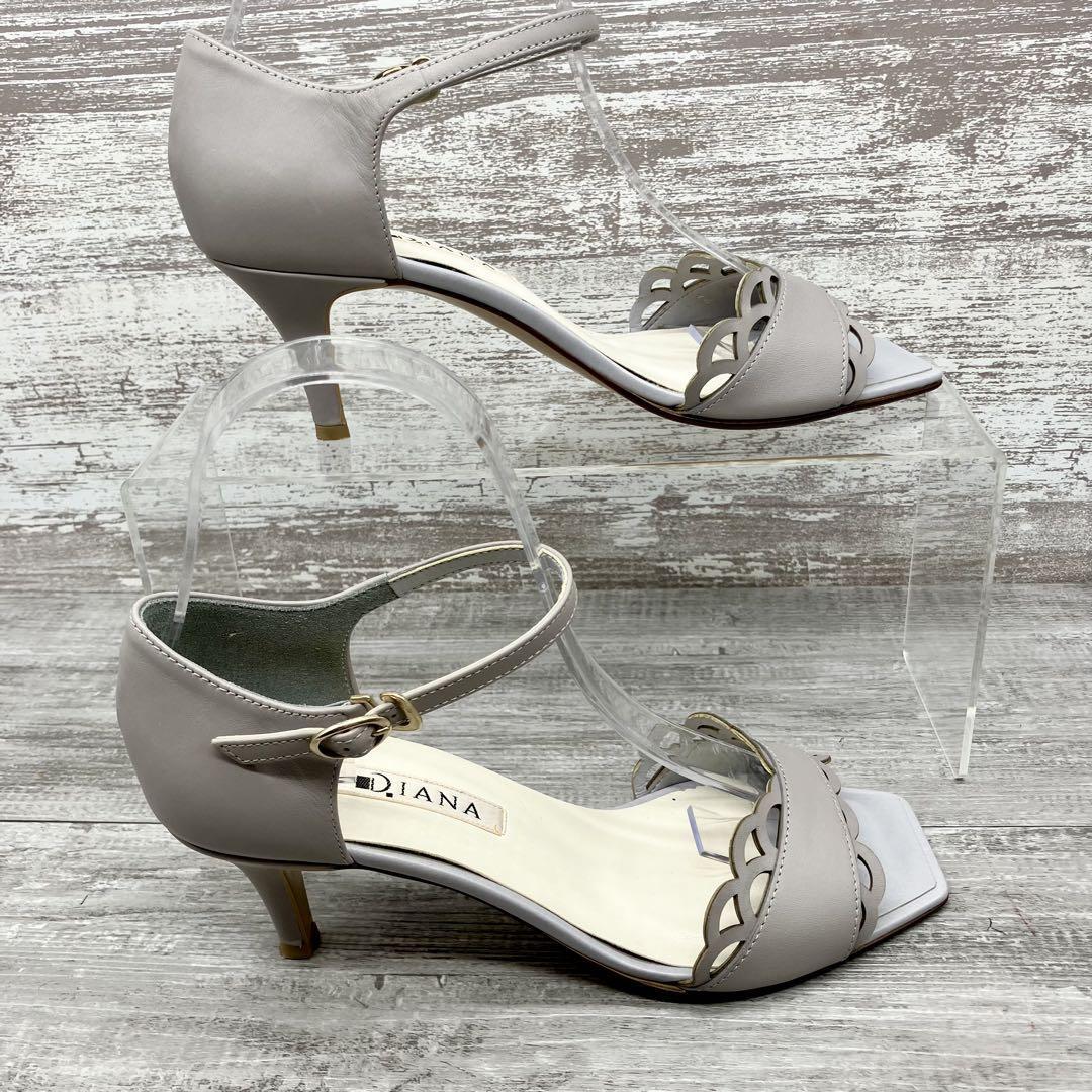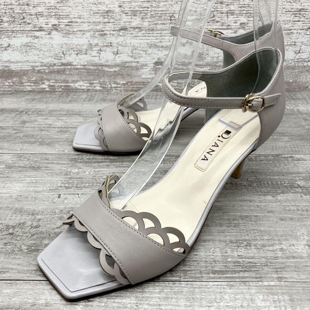 540【美品】DIANA ダイアナ カットアウト レザーサンダル レディース 23.0cm パープル系 グレージュ 紫 灰色 レース