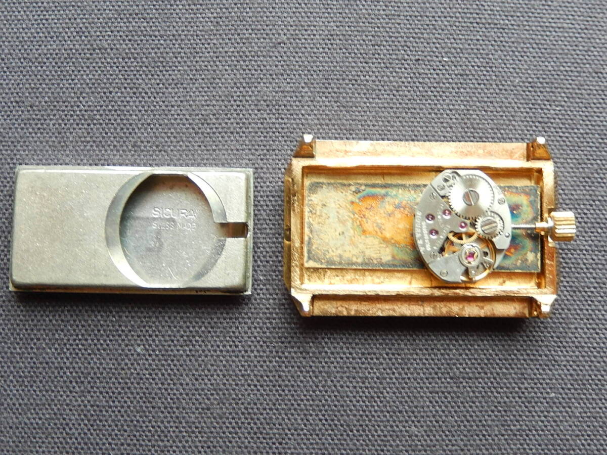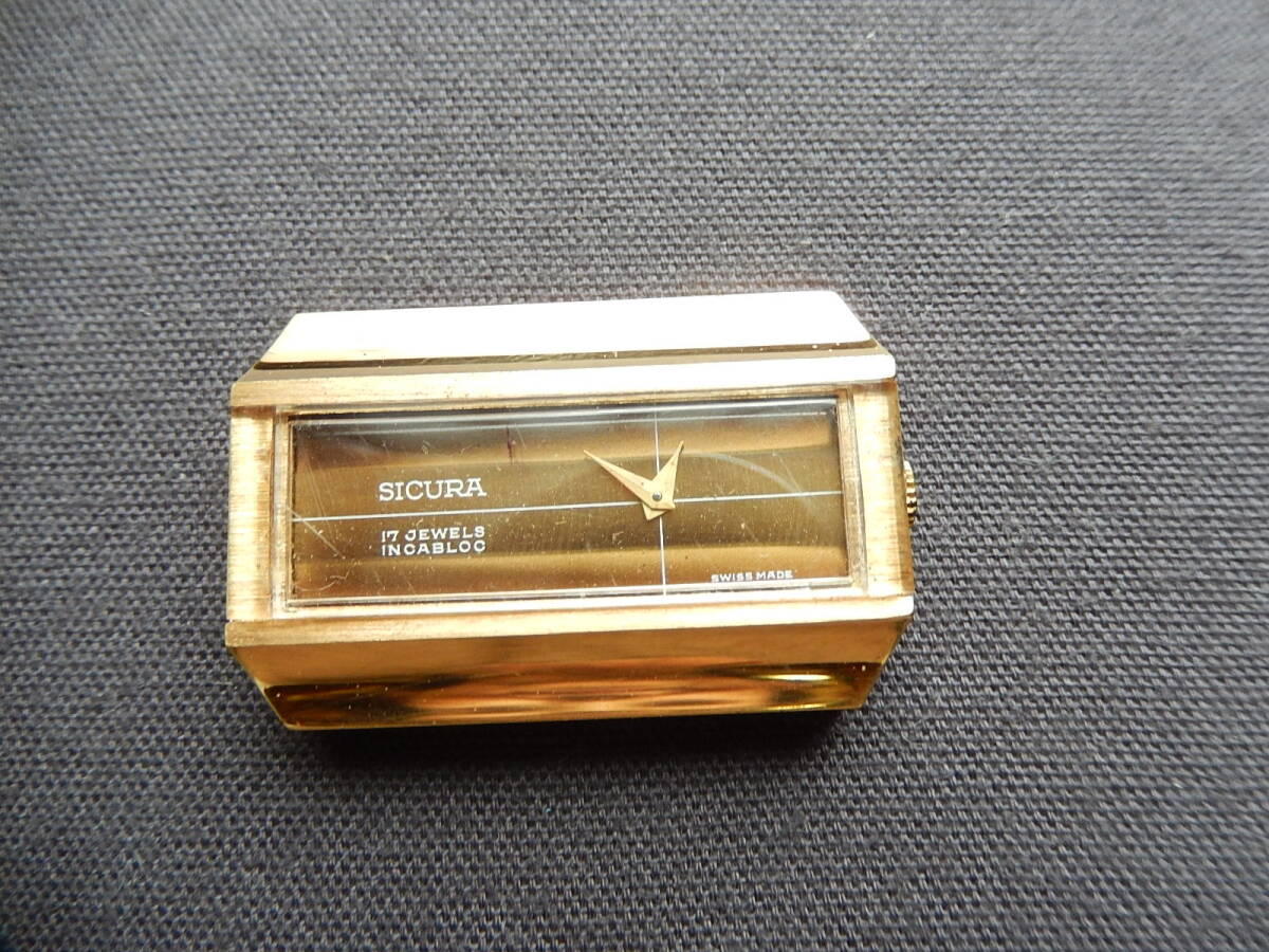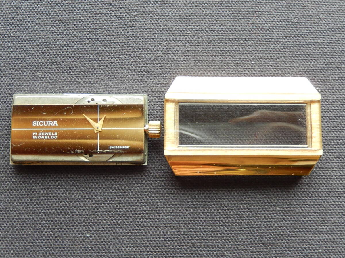 <SICURA 金色・横長時計ケース>ジャンク。   17石。INCABLOC。SWISS MADE。