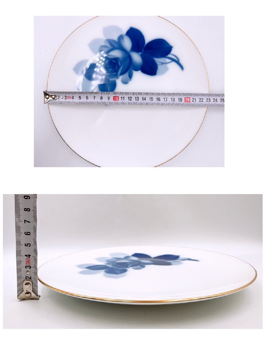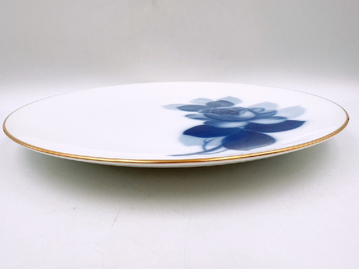 1円【未使用品】OKURA 大倉陶園 ブルーローズ 23㎝ 金縁 プレート 大丸皿 陶器 現状品【KO007】