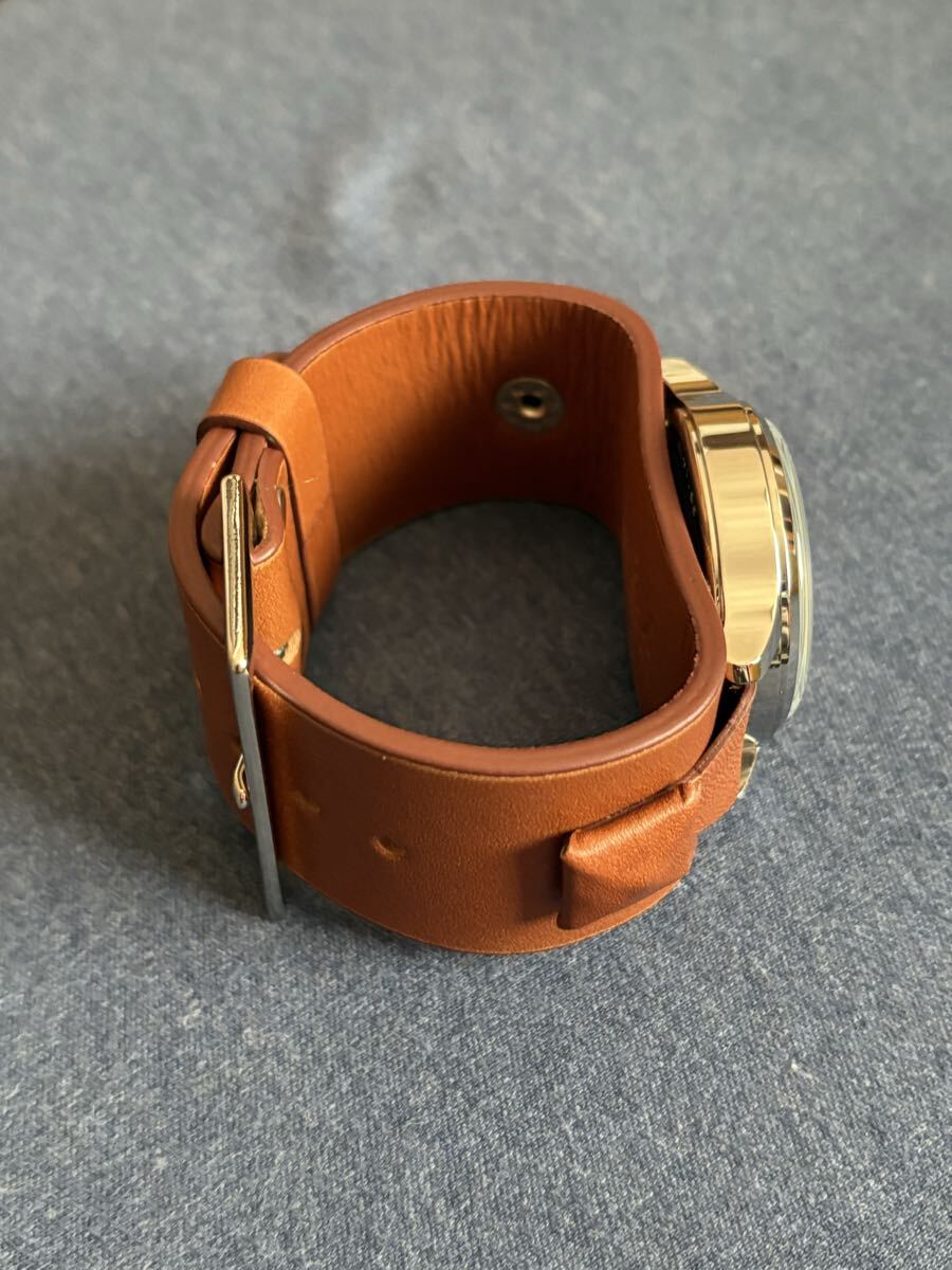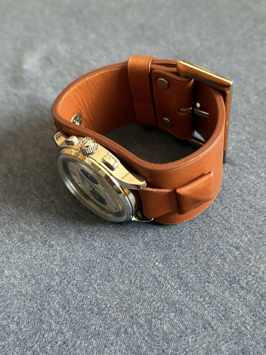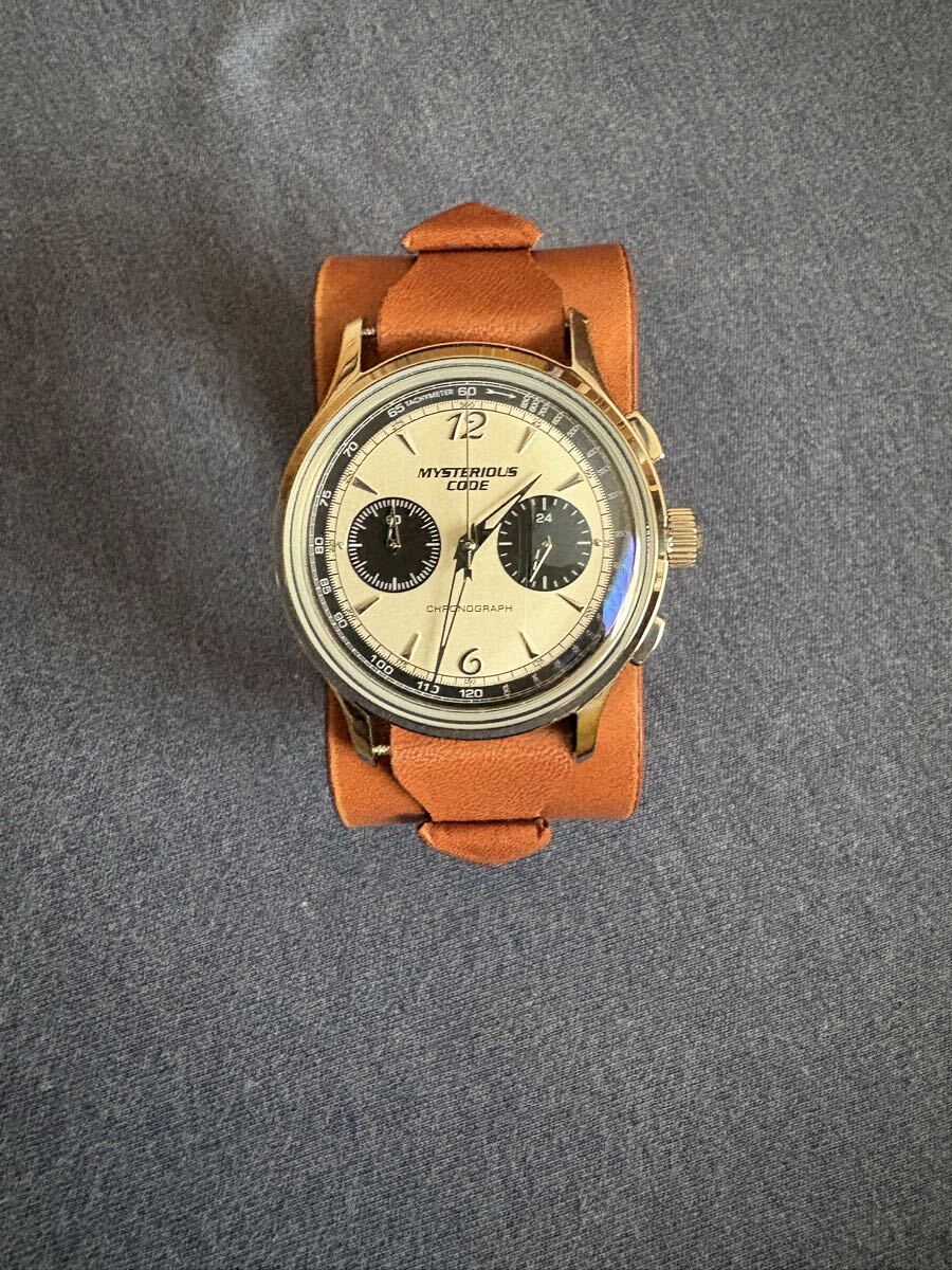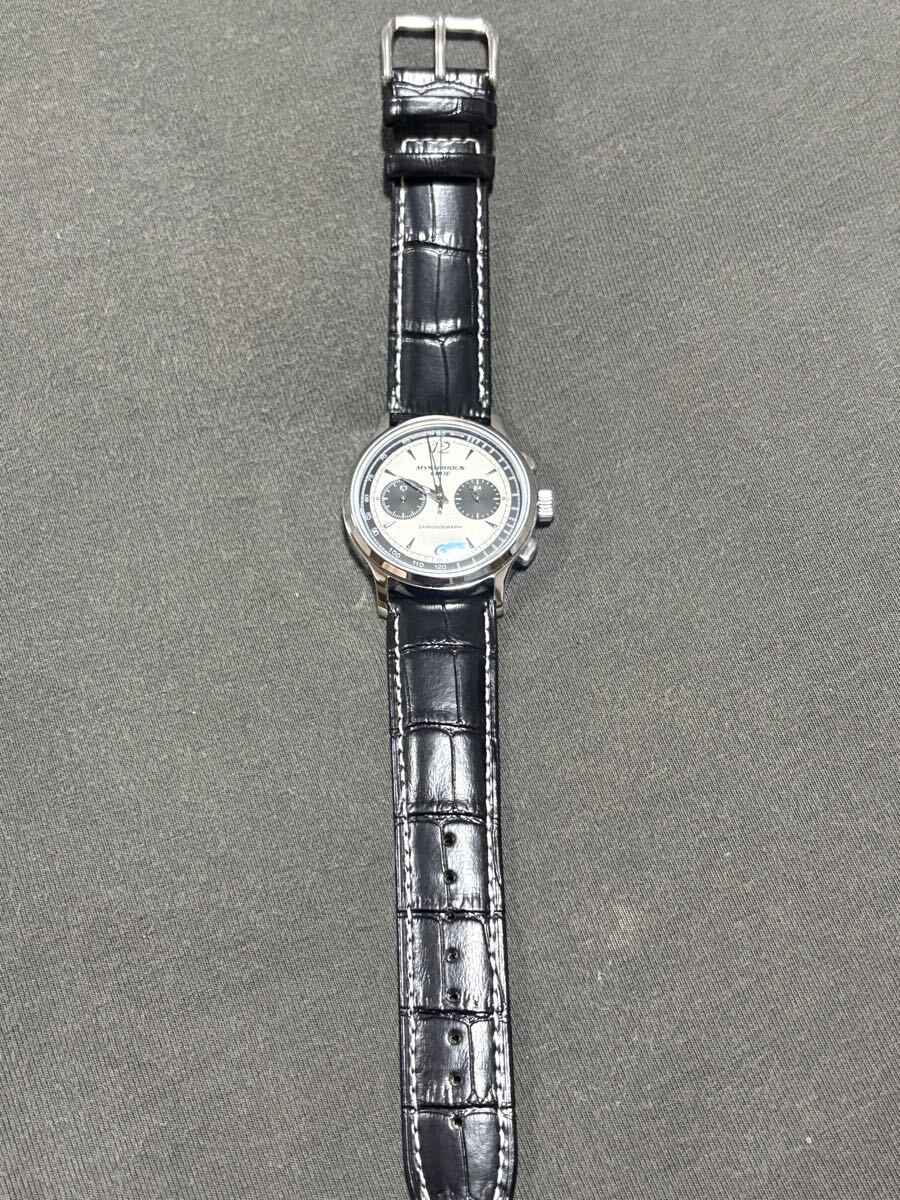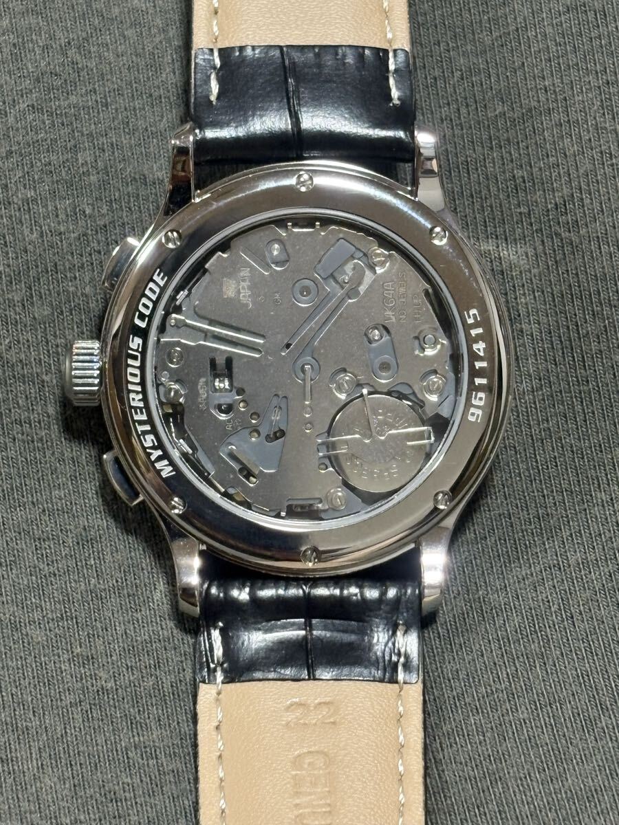 秒針の無いクォーツ式クロノグラフです。ストップウォッチ時には機械式のような運針をします。