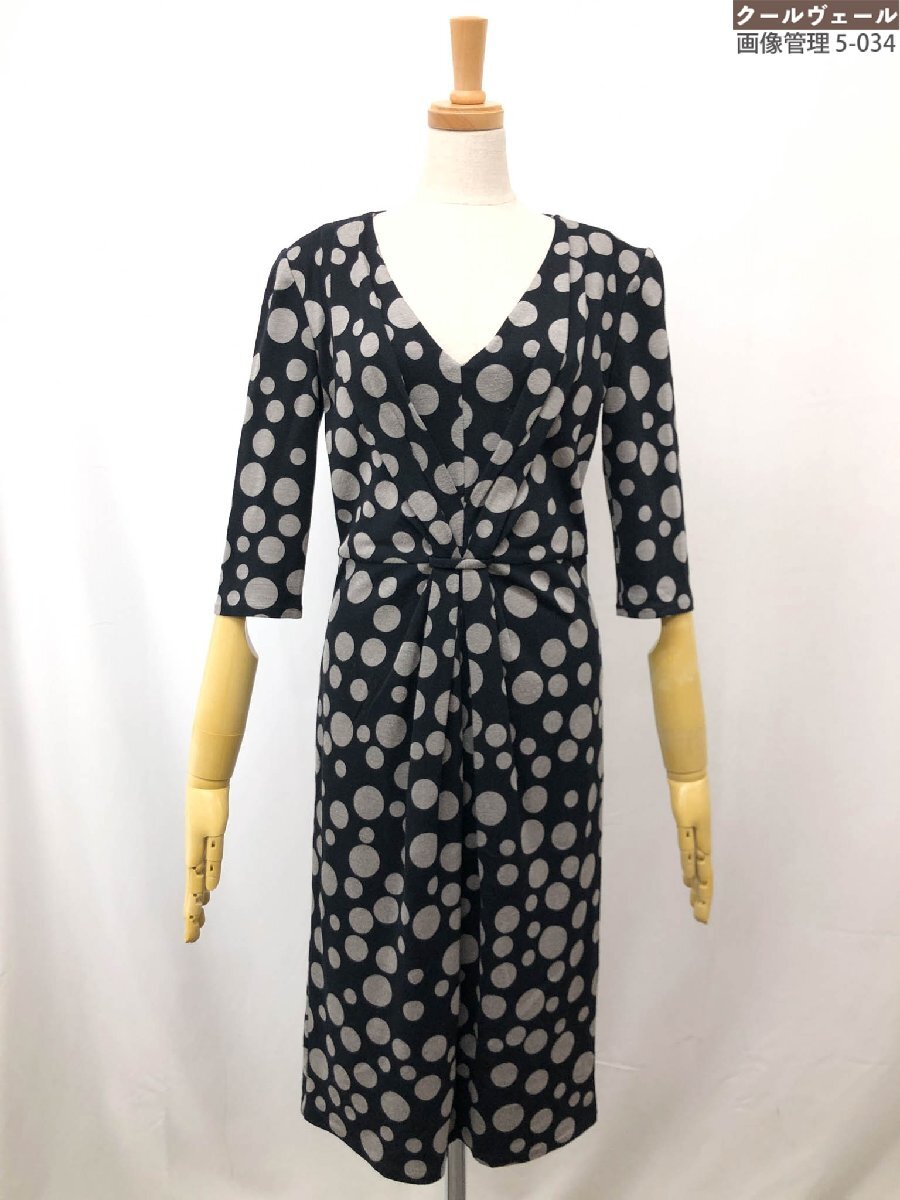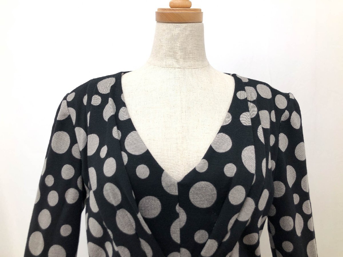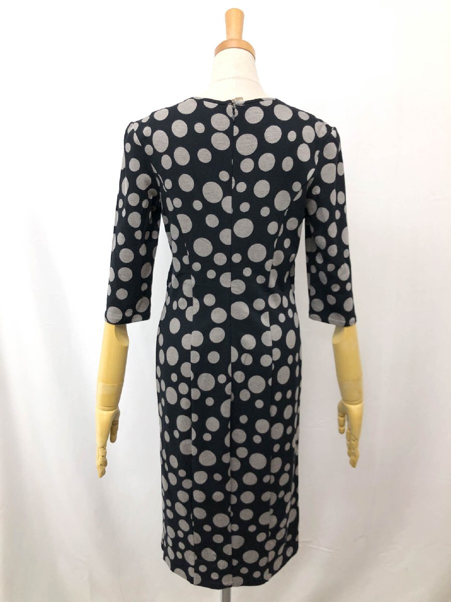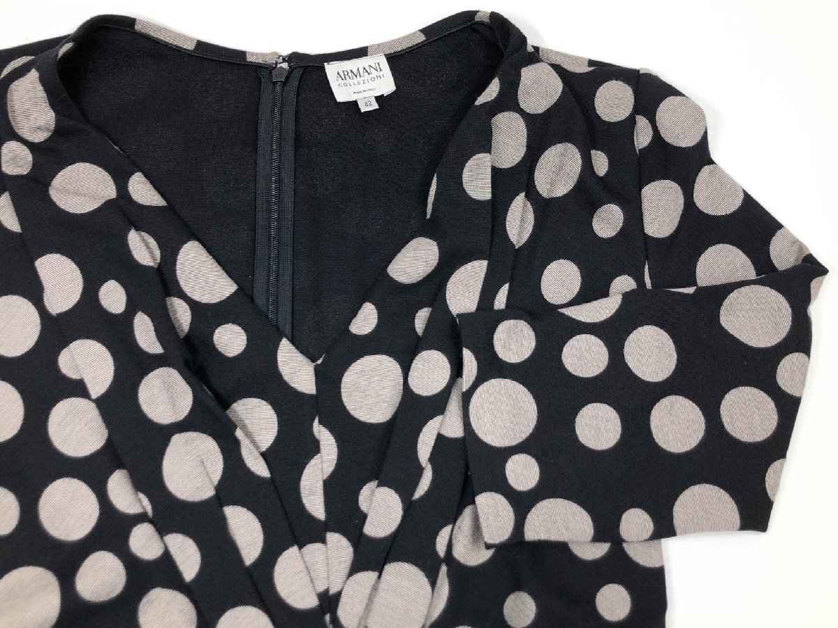 超美品【アルマーニコレツィオーニ】JMA03J JMPGJ 五分袖 ドット柄 ロングワンピース (レディース) 42 黒×グレージュ系 伊製 ◇17LT5561◇