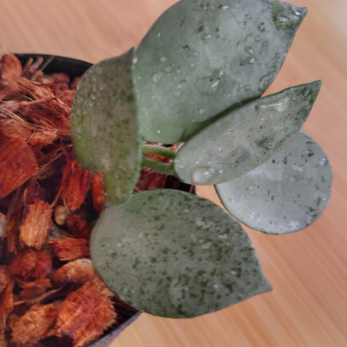 流通量のとても少ないミントコインは、少し黄緑のようにも見え、小葉で丸みを帯びたシルバーの葉が美しいホヤです。
