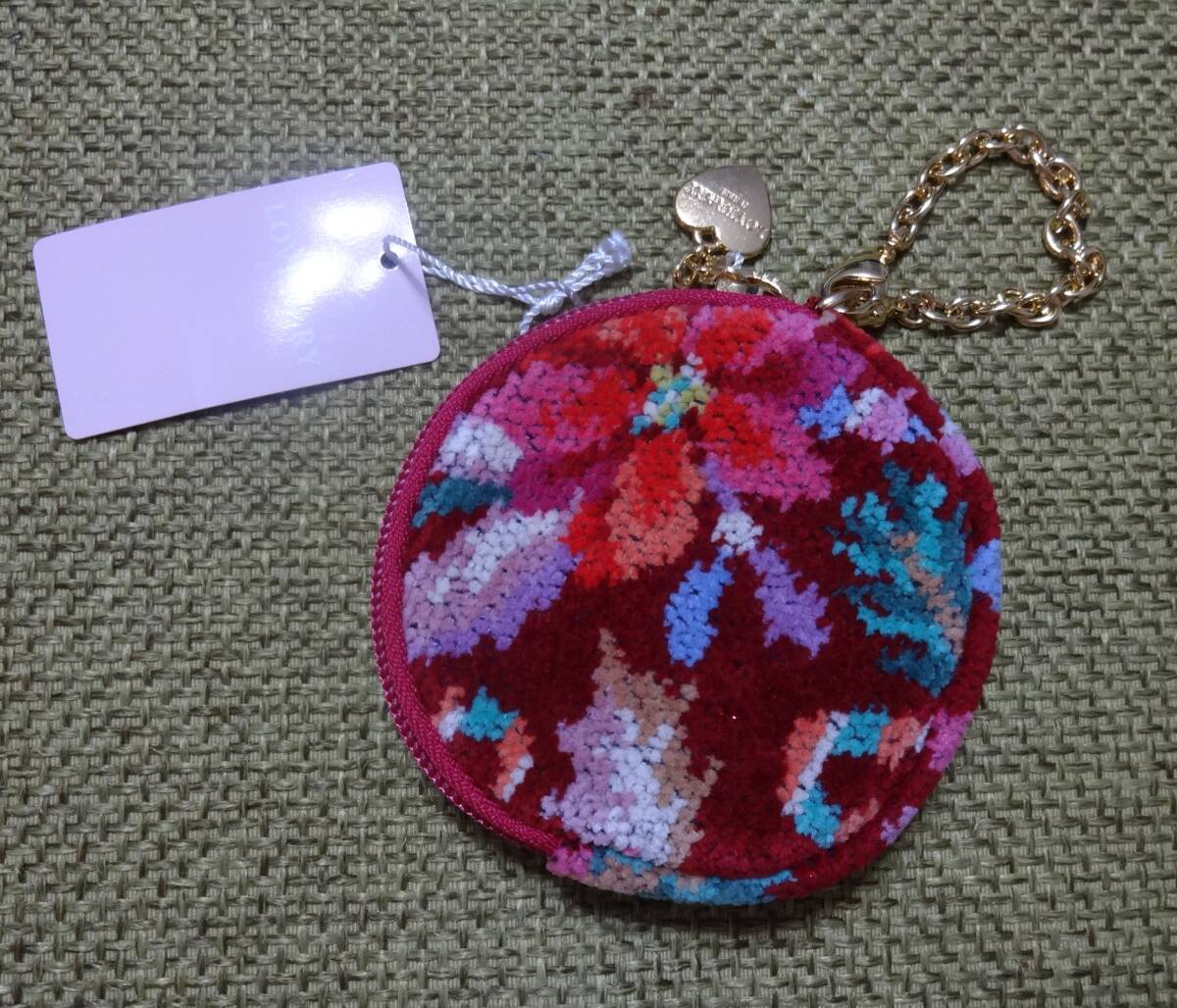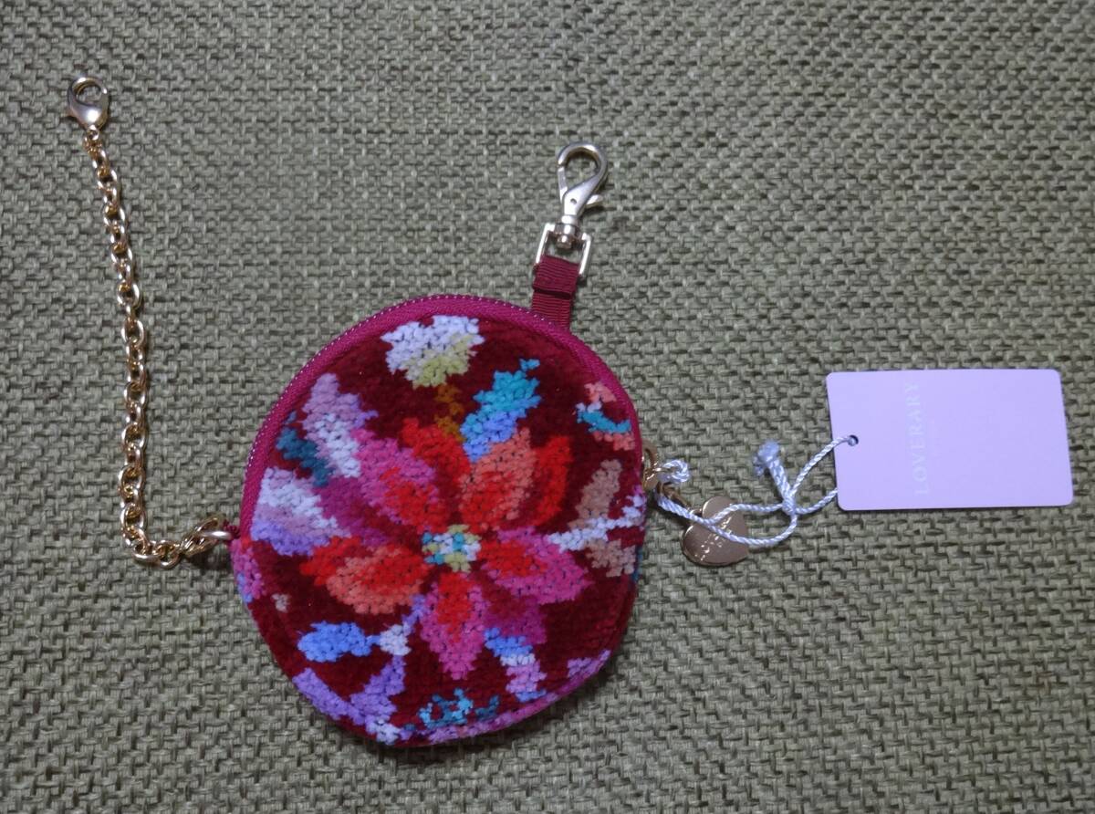 「ノエルフラワー」柄のキー&小銭入れポーチです! ファスナー部分のハートチャームが可愛く内側にキーを付けられます