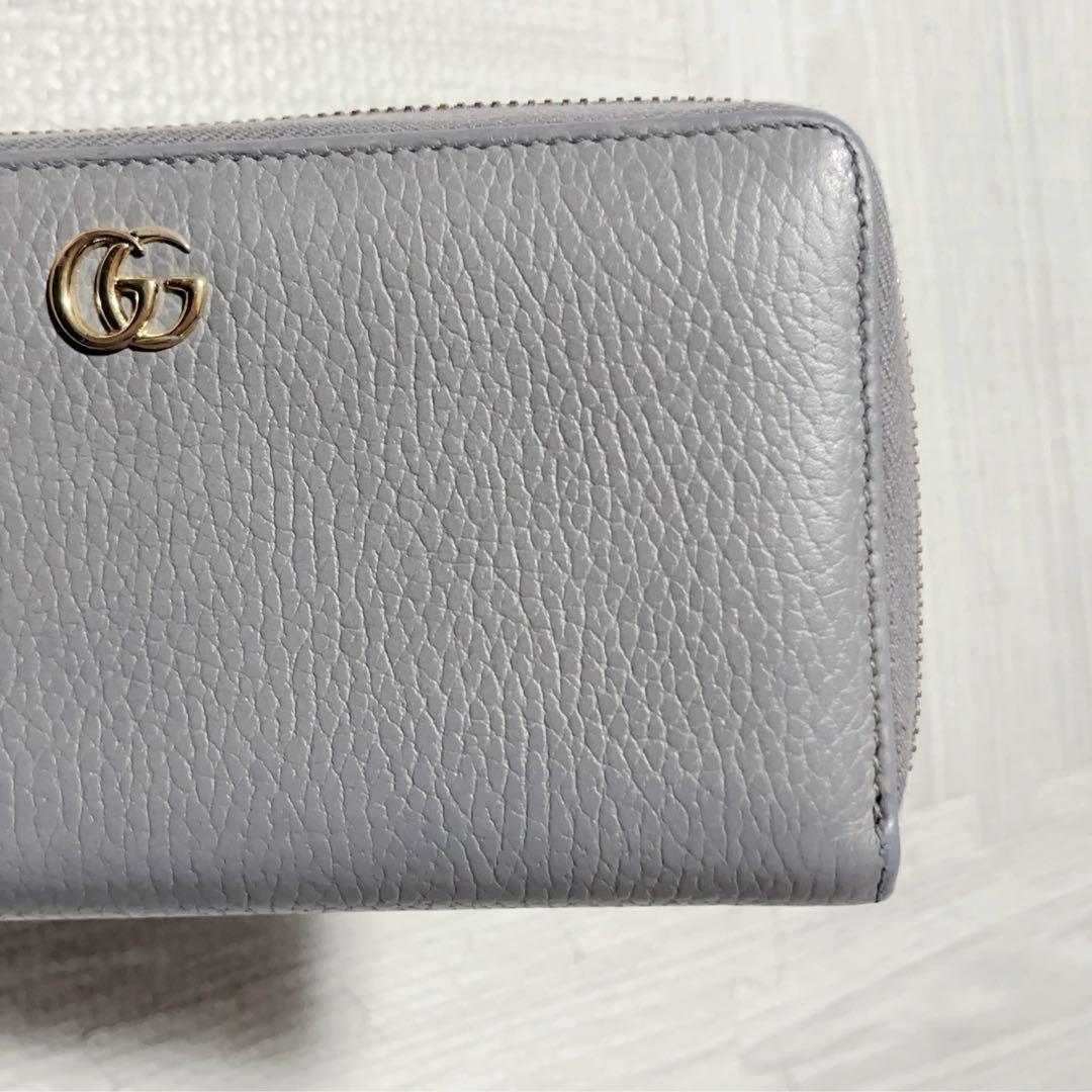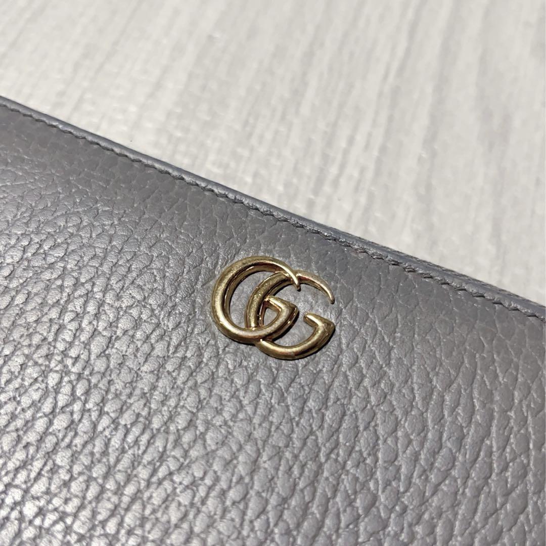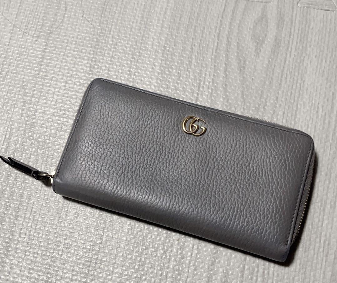 【商品】GUCCI グッチ 長財布 ラウンドファスナー マーモント金具 グレー レザー 本革 メンズ レディース 男女共用