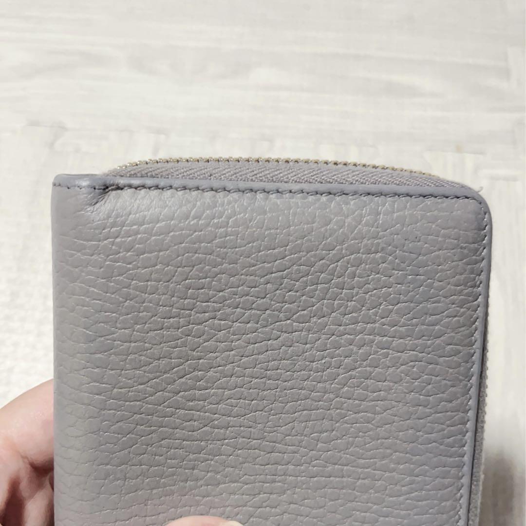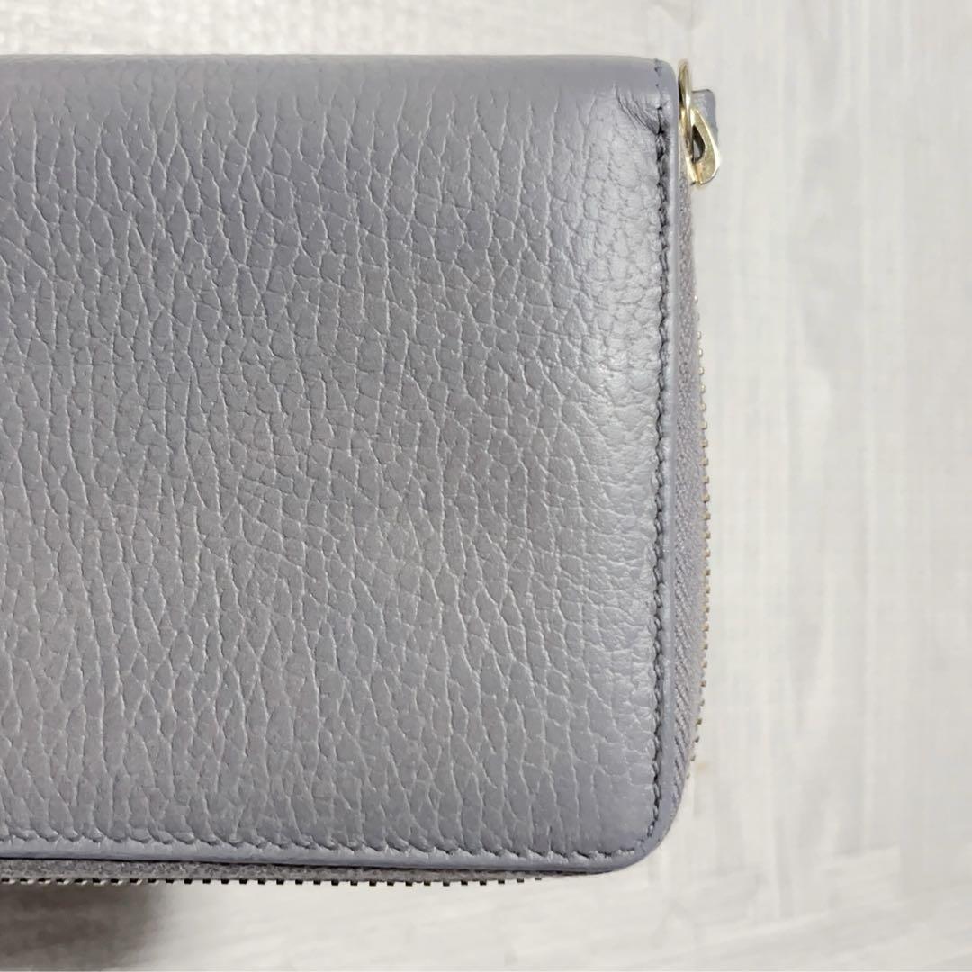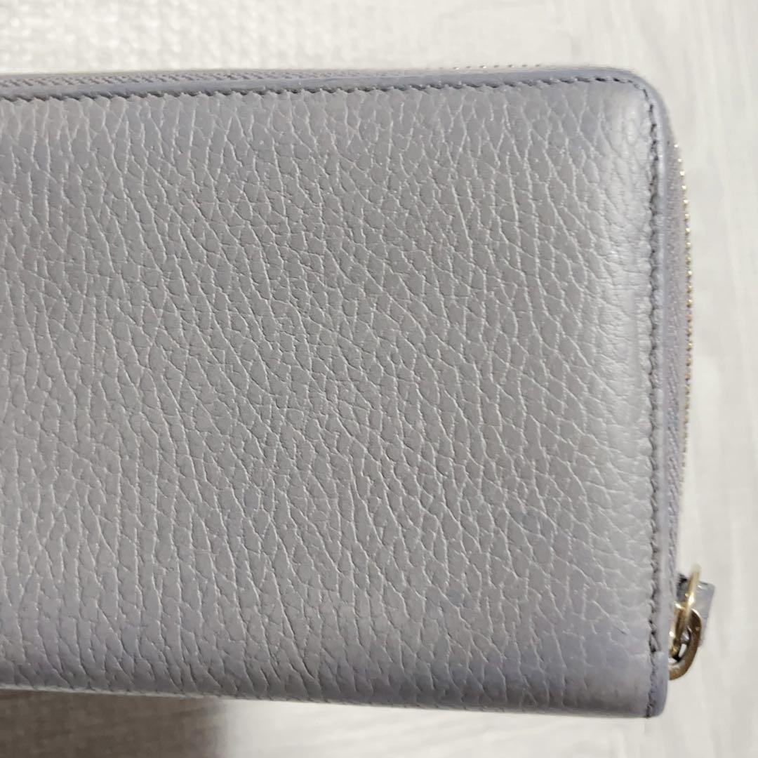 【商品】GUCCI グッチ 長財布 ラウンドファスナー マーモント金具 グレー レザー 本革 メンズ レディース 男女共用