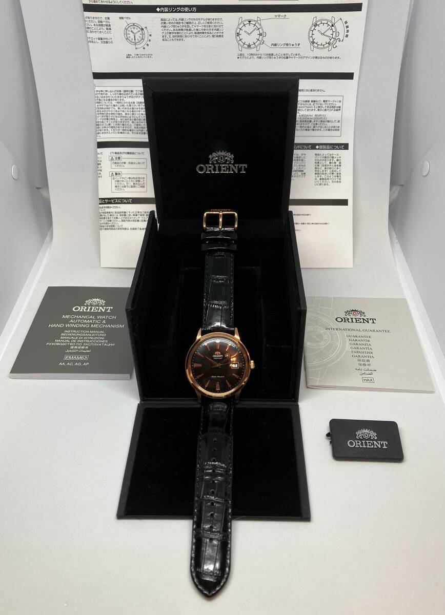 ・付属品:本体、ORIENTロゴ入り収納BOX、商品タグ、取扱説明書(英語等外国語版冊子)、取扱説明書(日本語版複写)、保証書(保証期間は終了しており、あくまでも参考資料としてお付けするものです)