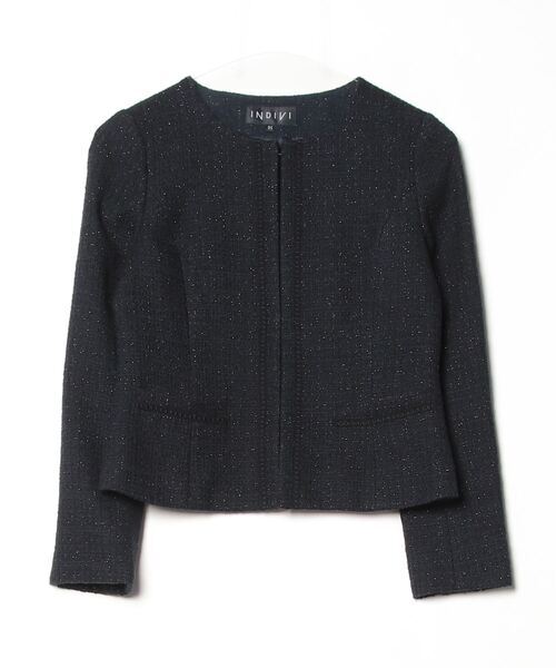 「INDIVI」 ノーカラージャケット 5 ネイビー レディース