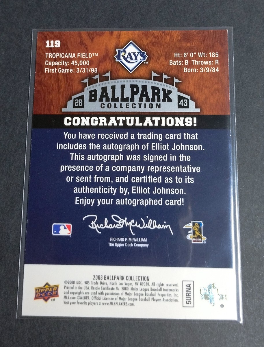 MLB 2008年upper deck エリオット・ジョンソン(レイズ)直筆サインカード!No.119。5URNA。ELLIOT JOHNSON