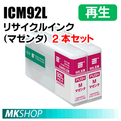 エプソン用 ICM92L リサイクルインクカートリッジ マゼンタ 2本セット 再生品 PX-M840F PX-S840対応 ECI-E92L-M ecorica(代引不可)