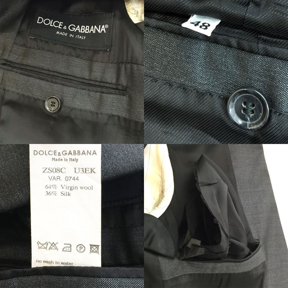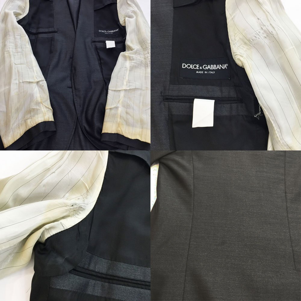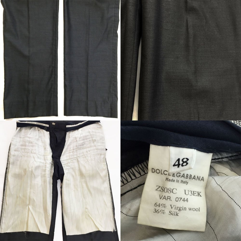 コメント | イタリアを代表する世界的なラグジュアリーファッションブランド、ドルチェ&ガッバーナのお品となります。 ジャケットとスラックスのセットアップスーツです。ウールにシルクが混紡された生地は光沢があり、軽やかな印象。ジャケットはフロントボタン×2、フロントポケット×3、肩パッド、総裏地付き、センターベントです。スラックスはテーパードに近いストレートシルエット、シングル仕上げ、一部裏地付きです。2005年頃に購入されたとの情報をいただいています。海外正規品or国内平行輸入品です。 状態はUSEDです。経年、強い使用感があります。裏地に目立つシミ汚れ、金具にくすみや錆、襟に汚れ、細かい汚れ、スレ、シワ、ヨレ、小傷があります。ジャケットの裏地ポケット一つの内部が破れています。スラックスの後ろ身頃の右ポケットのボタンが取れています。ご理解のある方の入札をお待ちしております。 |