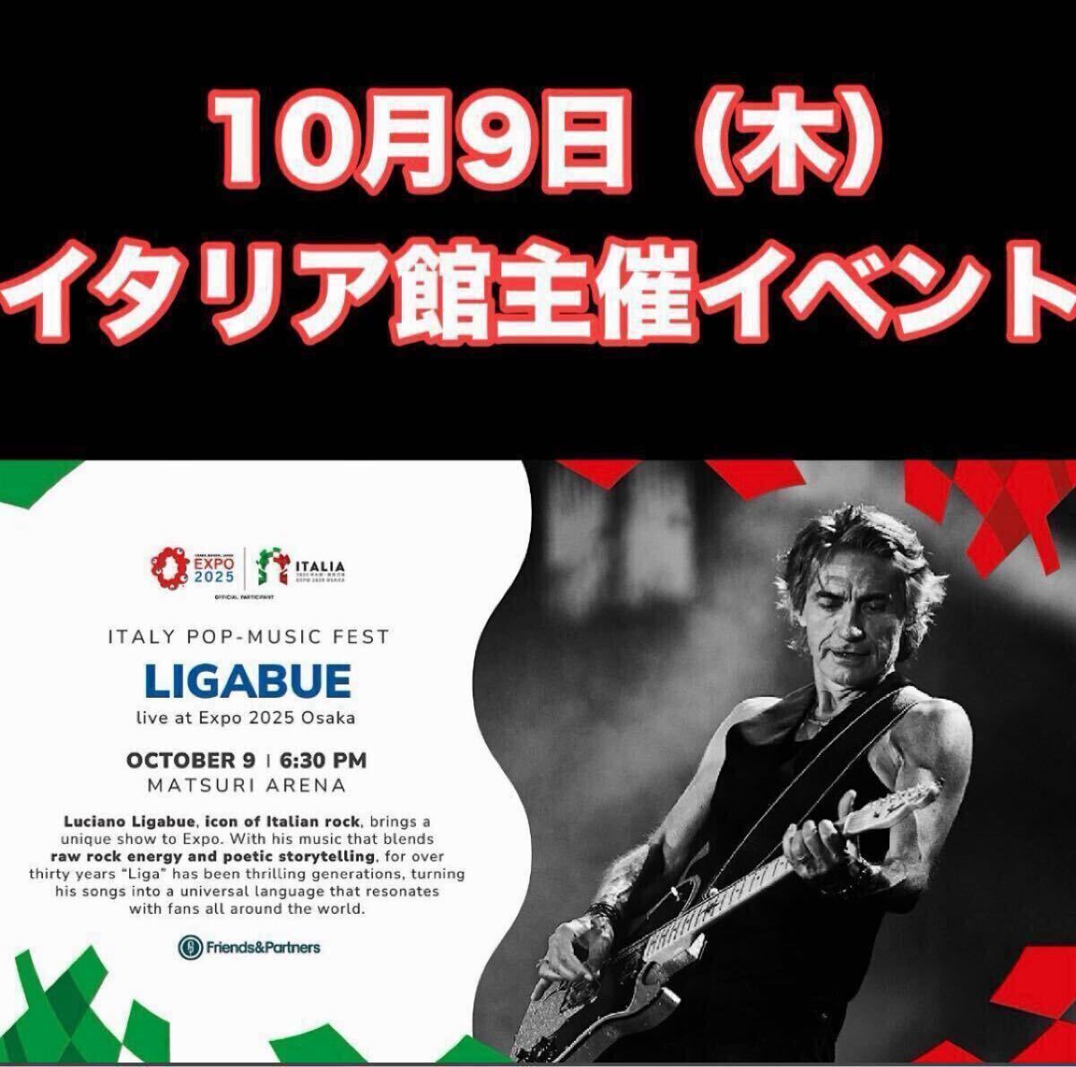ルチャーノ・リガプエ イタリアンロックのアイコン 大阪・関西万博に登場し唯一無二のショーを披露。彼の音楽はロックの力強さと叙情的な物語性を融合させ、30年以上にわたり“リーガ”は世代を超えて人々に感動を与えてきた。その歌は普遍的な言語へと昇華し、世界中のファンを魅了している。
