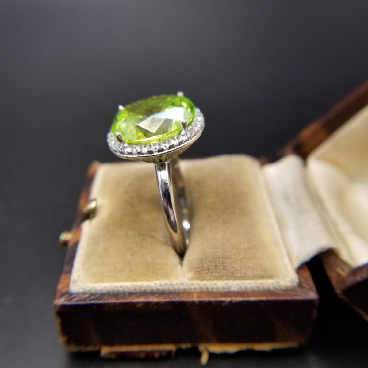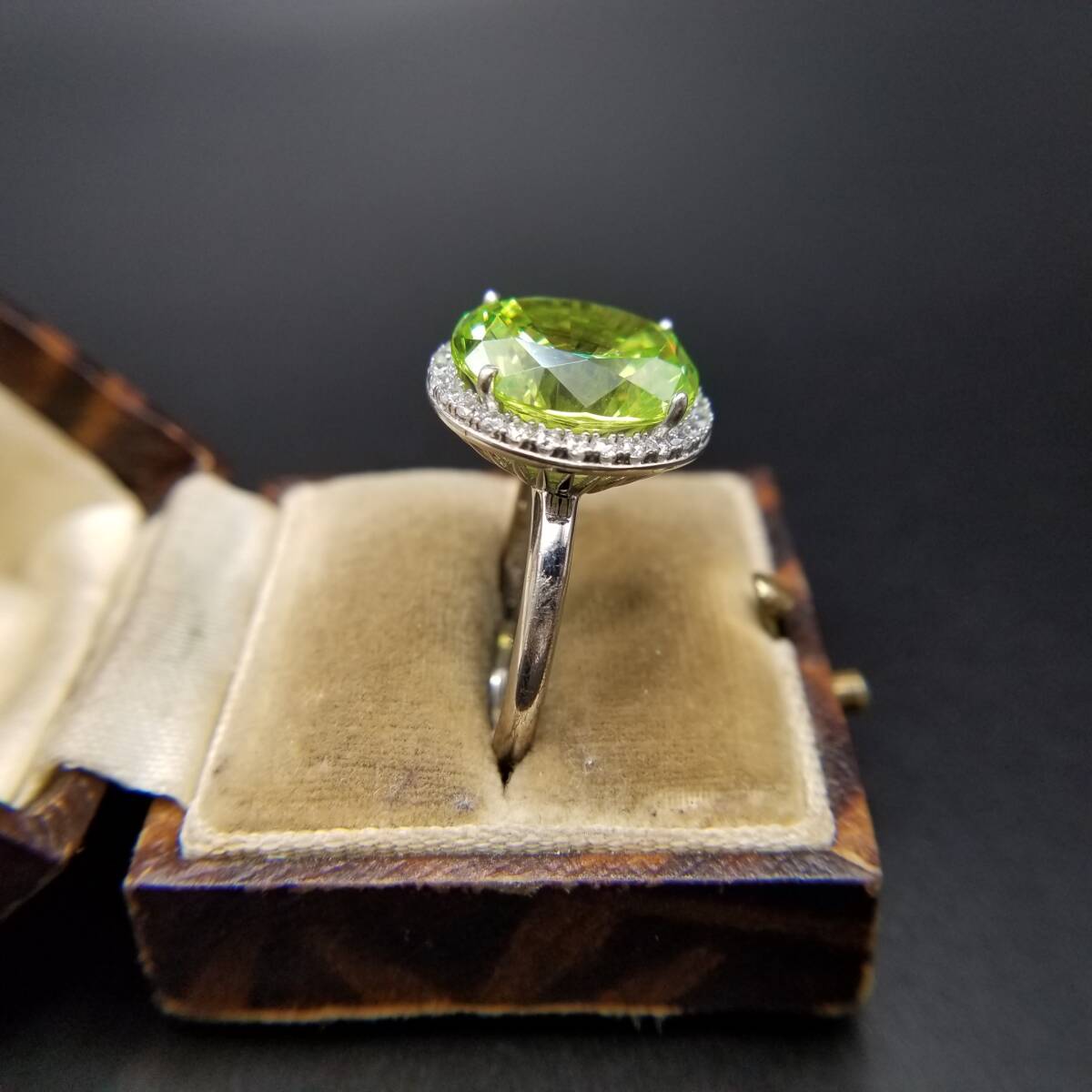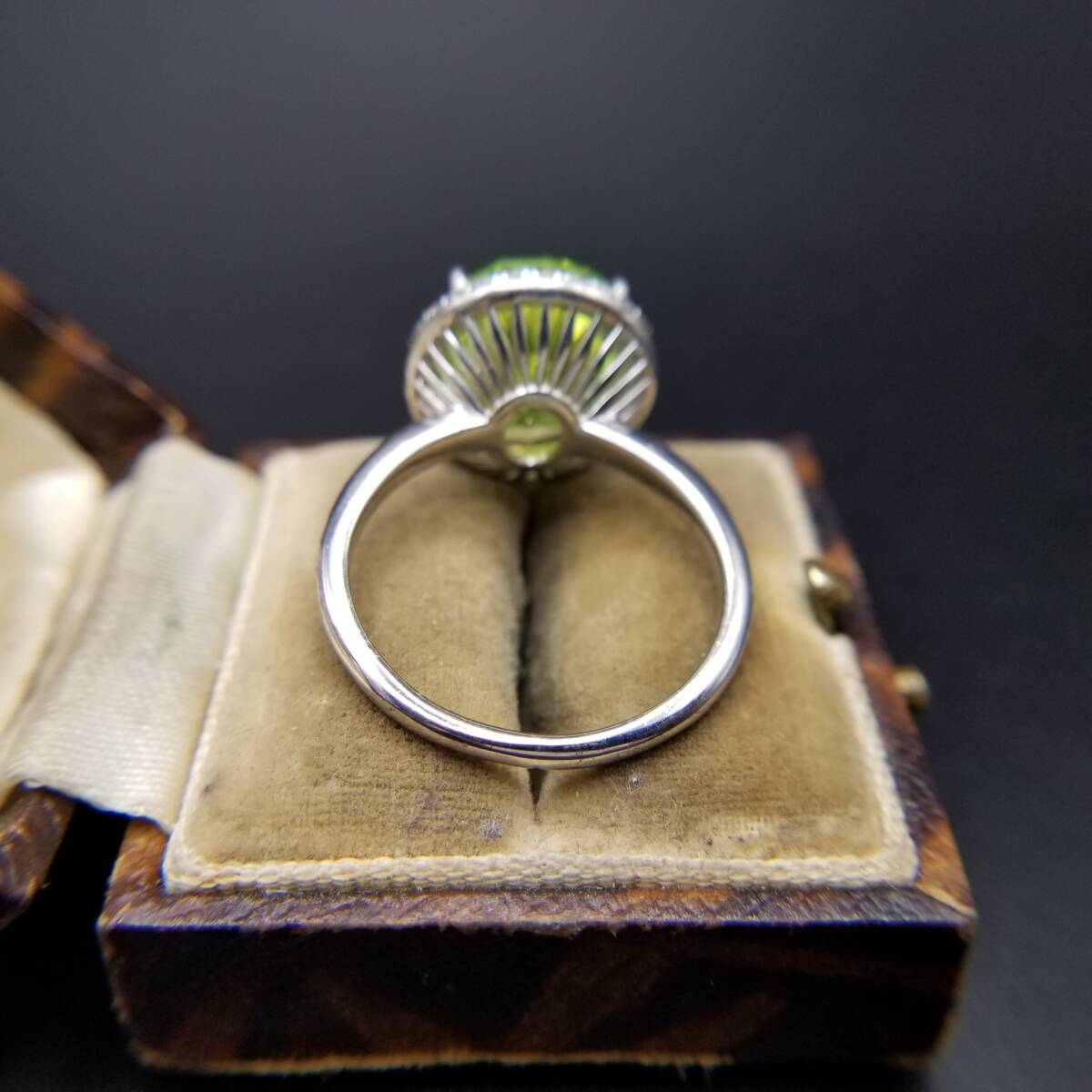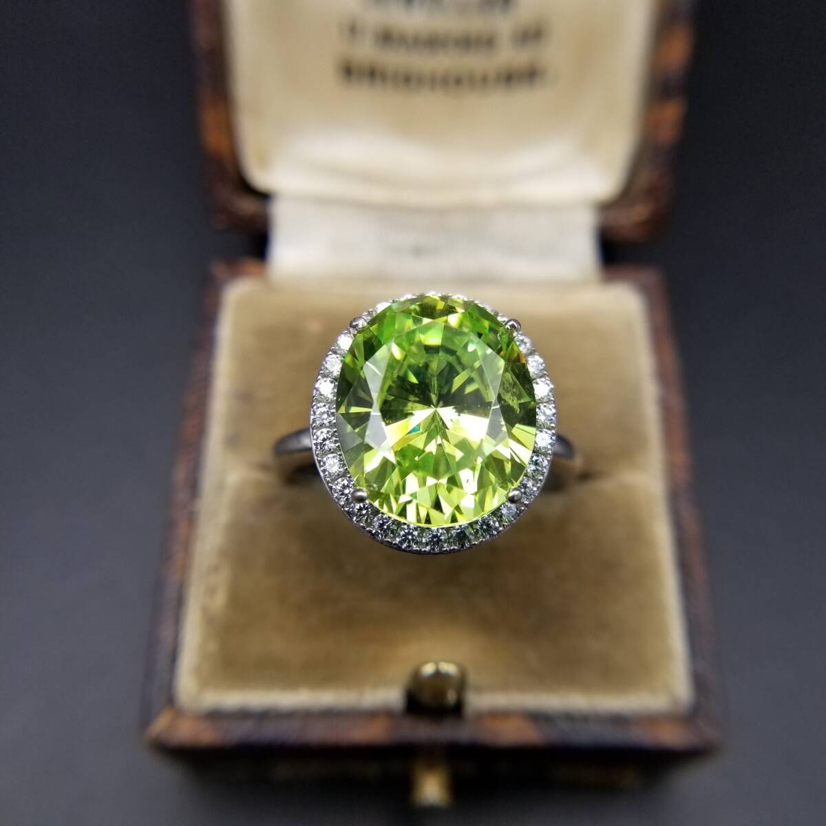 大粒 ペールグリーン オーバル キュービックジルコニア 925 シルバー リング 指輪 銀 ゴージャス エレガント 華やか 大きいサイズ R16-T