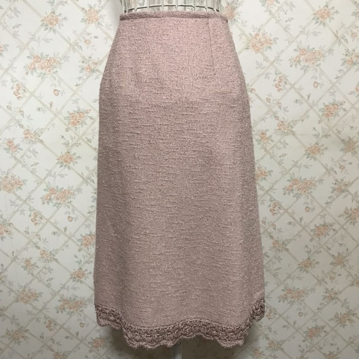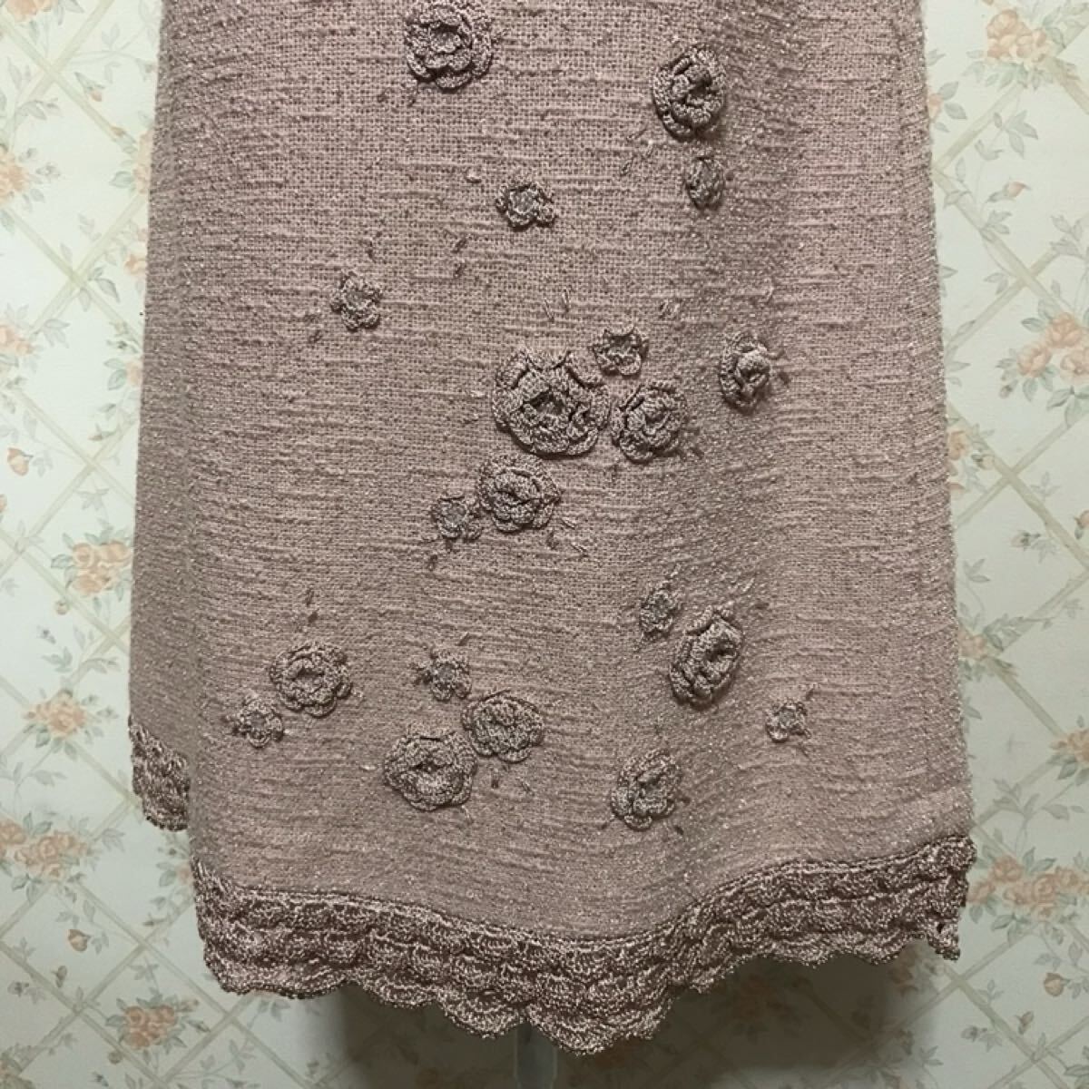 前後裾にピンクラメが入った、同色カギ編みレースが施されております。