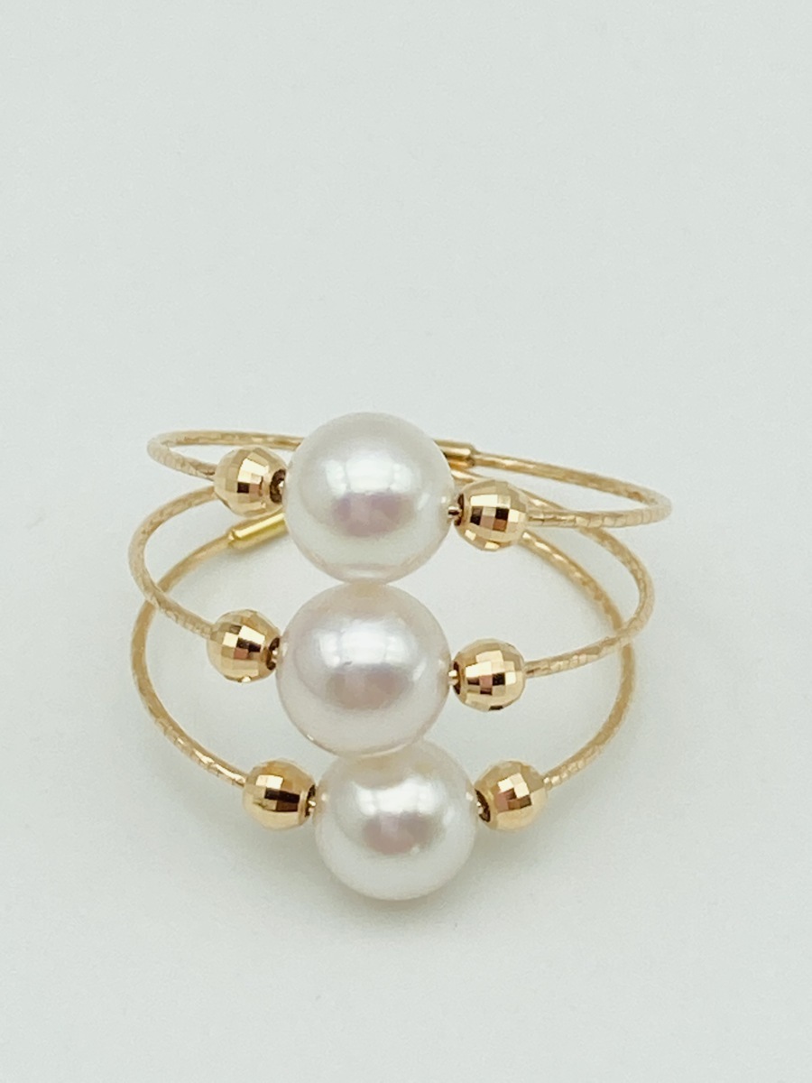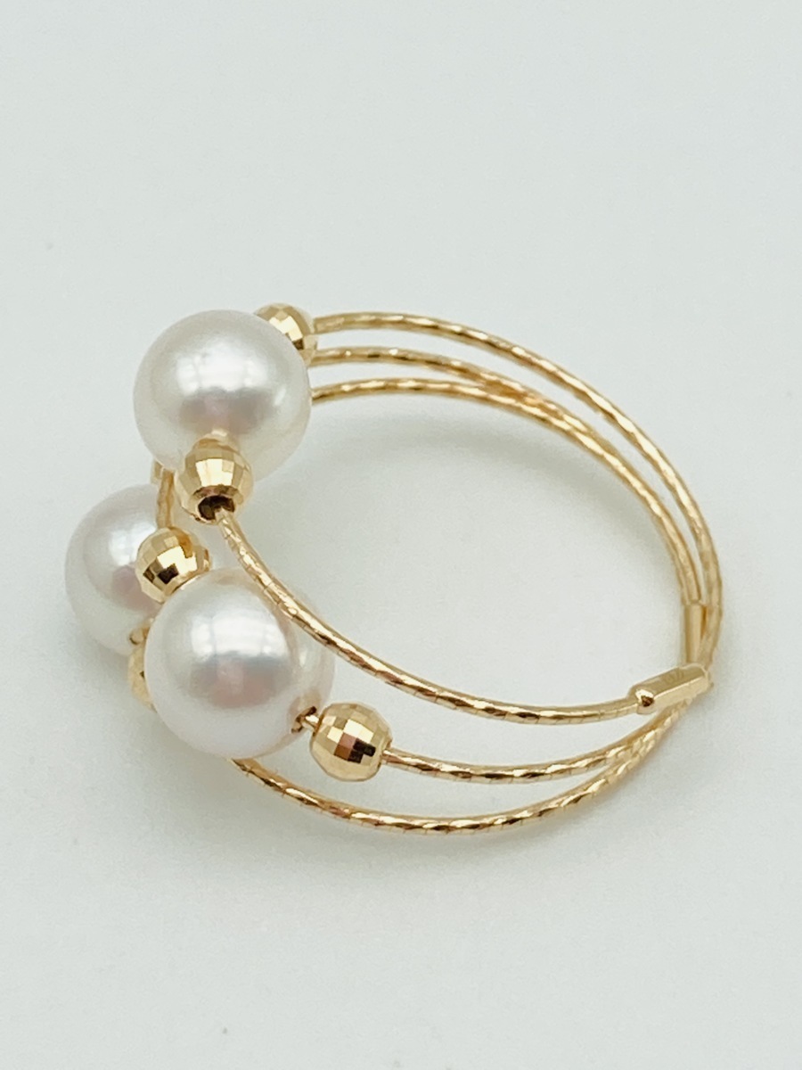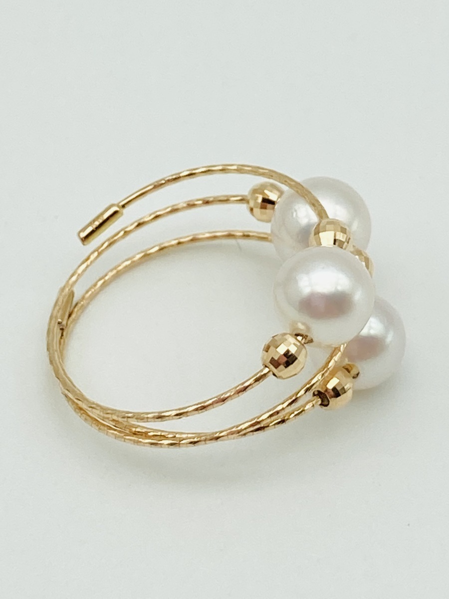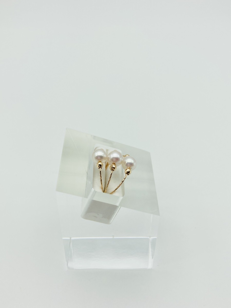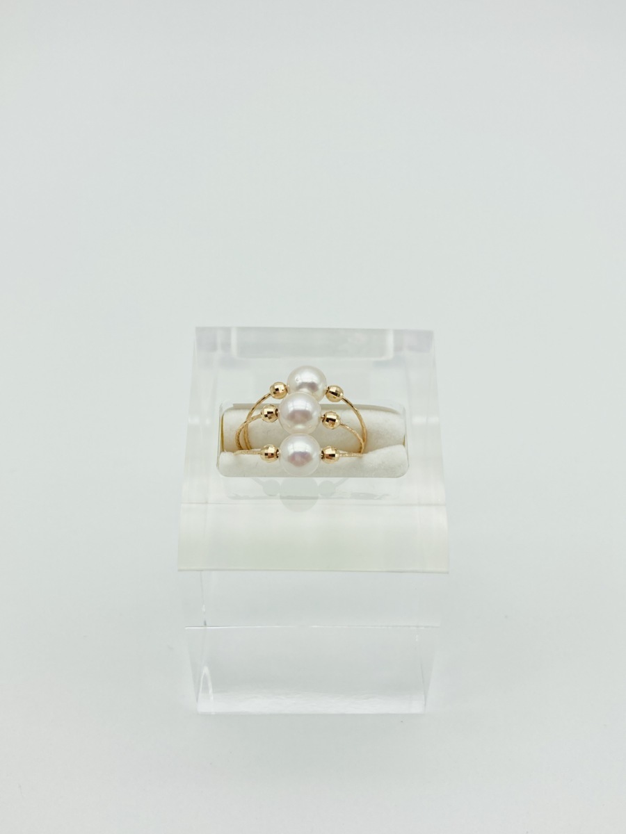 コメント | アコヤパールを3ピース使用したお洒落なファッションリングです。 形状記憶タイプでフリーサイズなので、自由自在に着用出来ます。 枠は18金を使用、真珠との組み合わせが抜群です! カジュアル~オフィスシーンまで様々なシュチュエーションでお使いいただけます。 真珠も動かせますので、色々なパターンで楽しめます。 お値打ち価格でご提案致します! |
