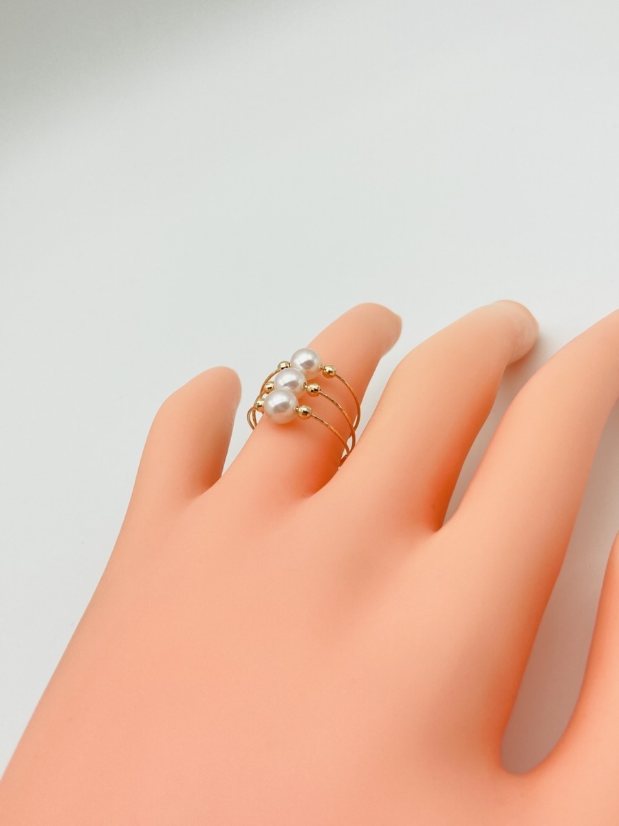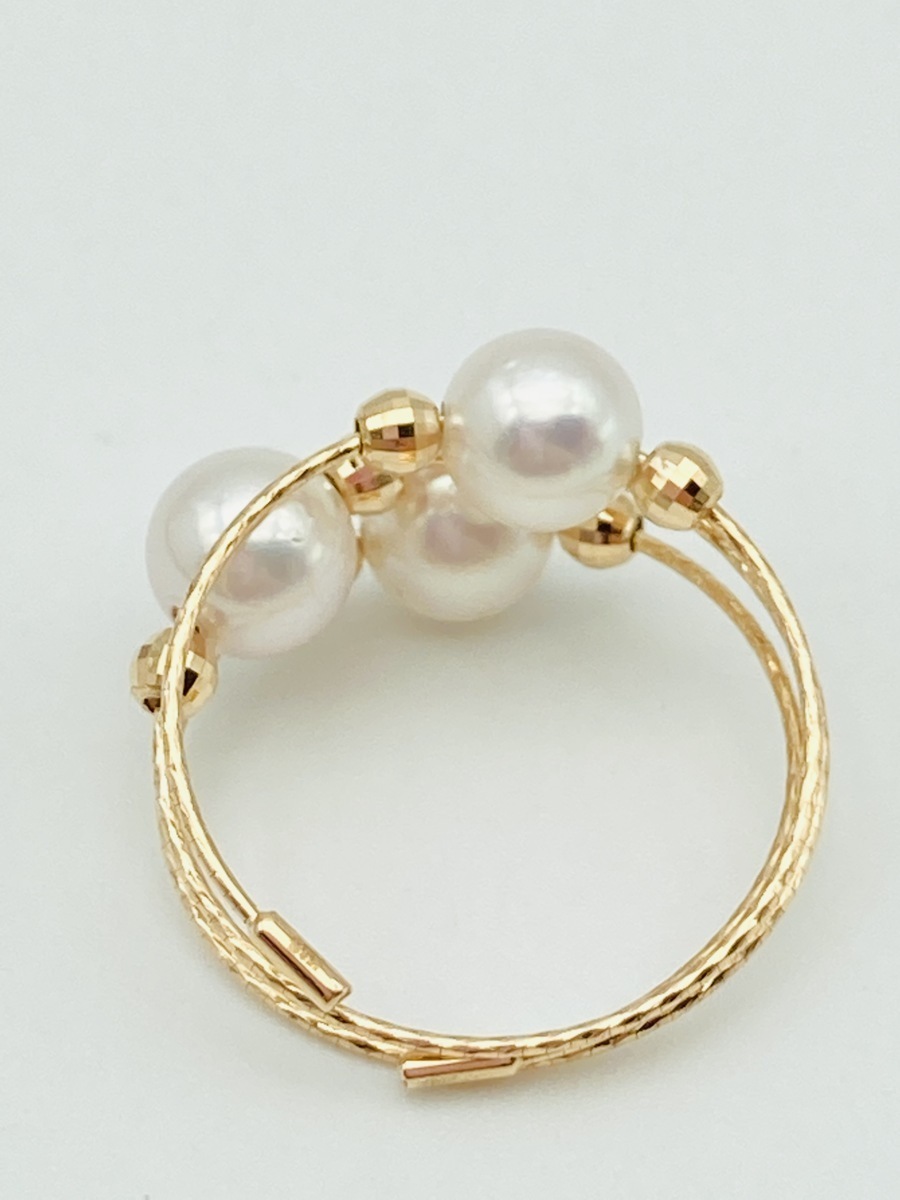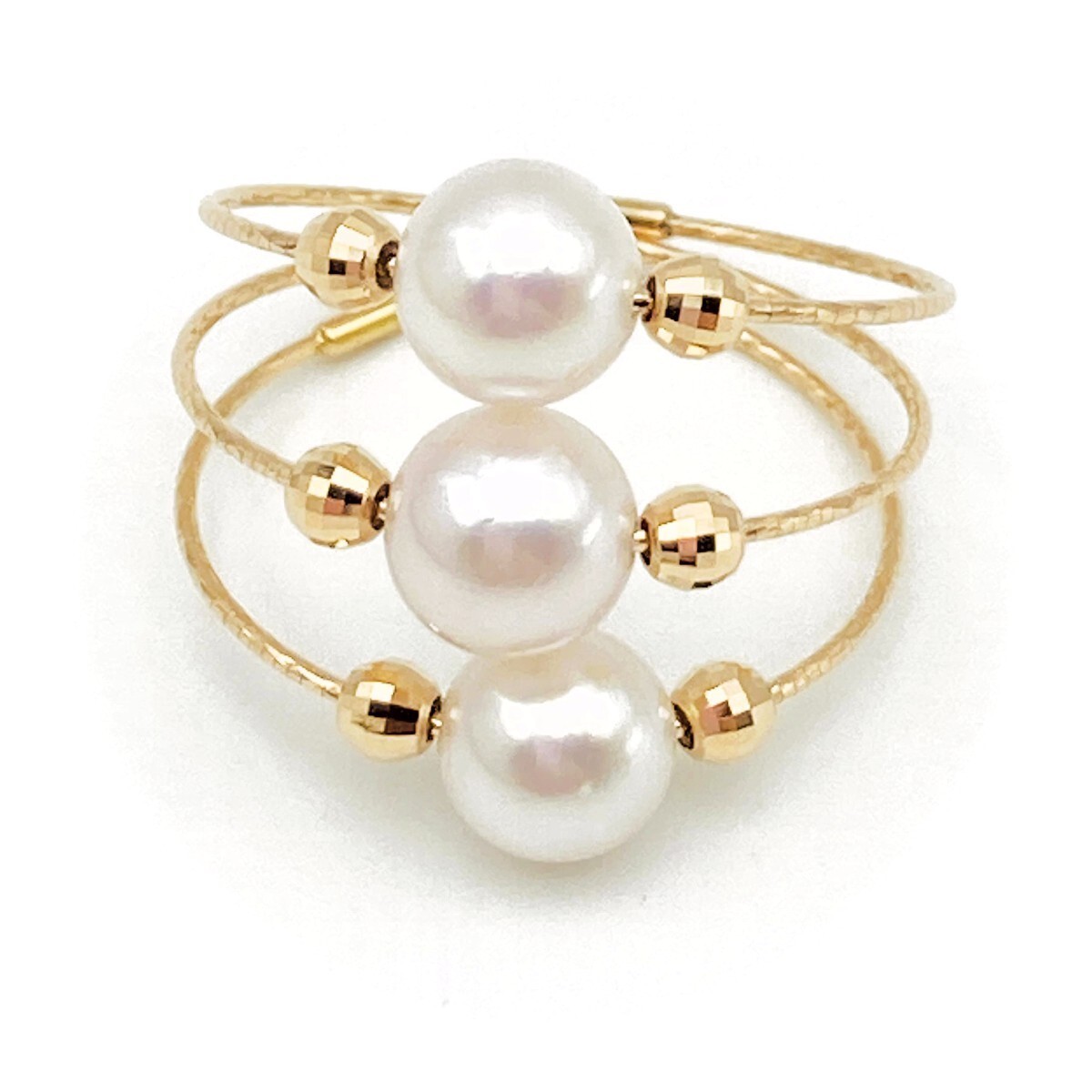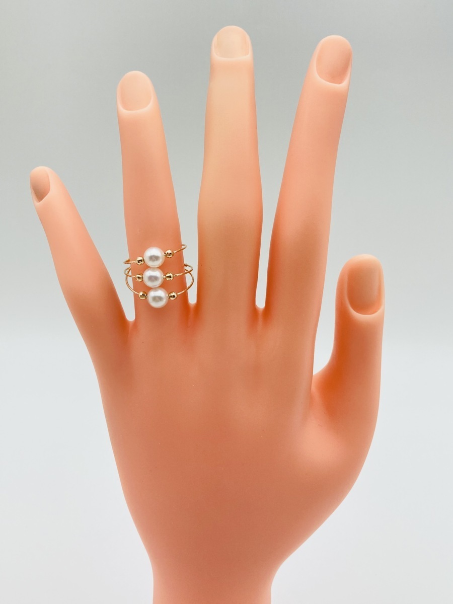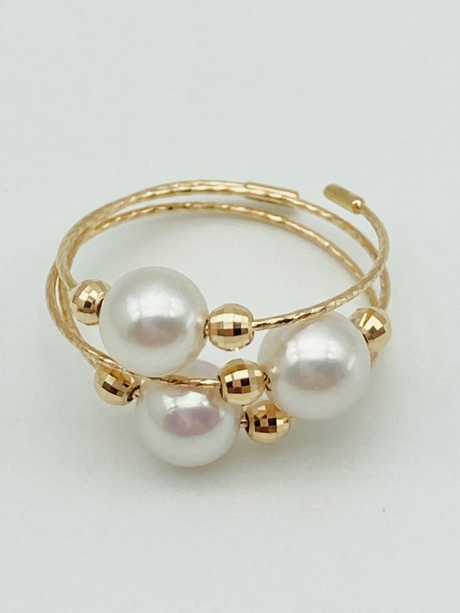 コメント | アコヤパールを3ピース使用したお洒落なファッションリングです。 形状記憶タイプでフリーサイズなので、自由自在に着用出来ます。 枠は18金を使用、真珠との組み合わせが抜群です! カジュアル~オフィスシーンまで様々なシュチュエーションでお使いいただけます。 真珠も動かせますので、色々なパターンで楽しめます。 お値打ち価格でご提案致します! |
