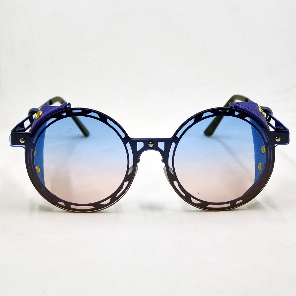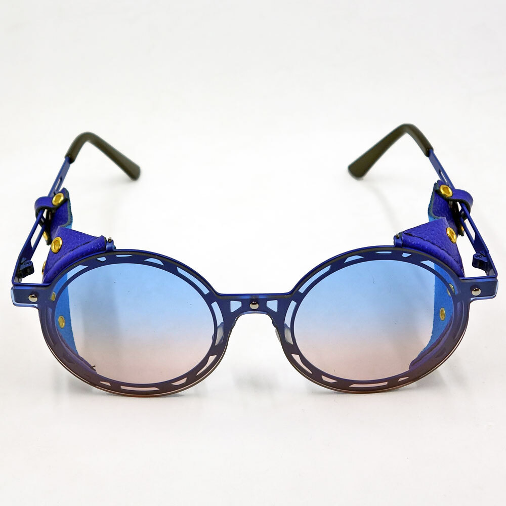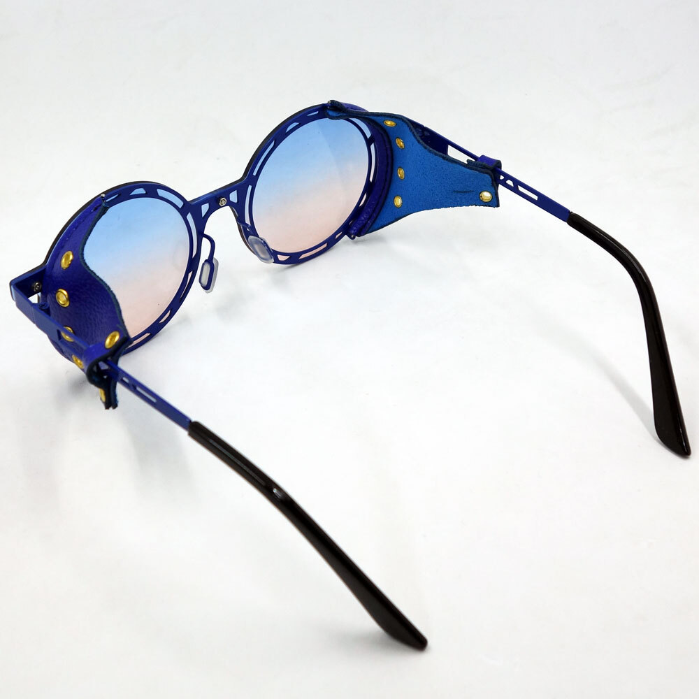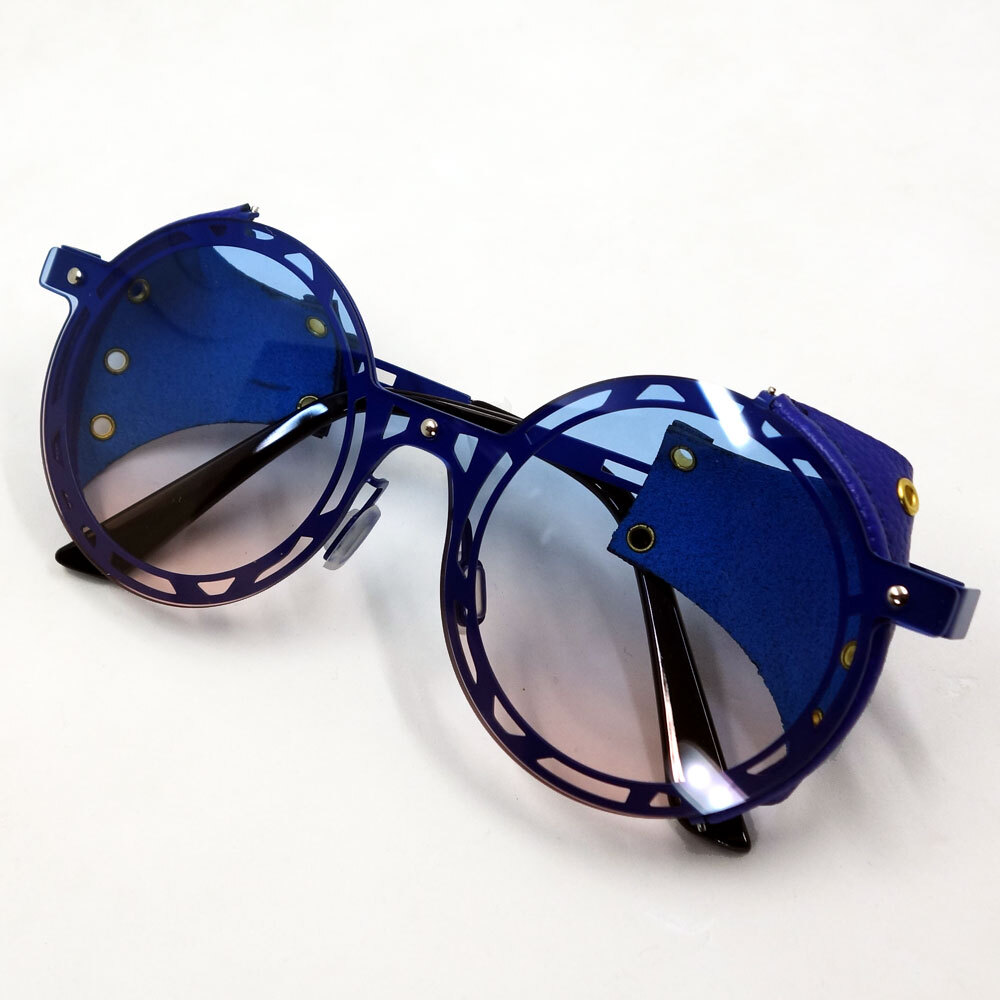 スチームパンク風 サングラス メンズ レディース 風防 丸目 ラウンド型 メタル ブルー 青