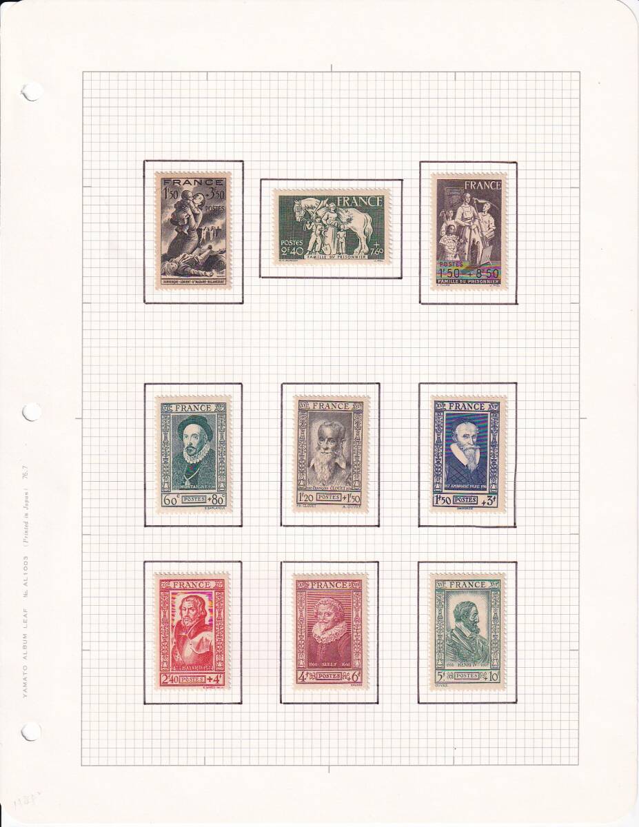 28 フランス【未使用】<「1943 SC#B161-B166 (付加金) 国家救済 / 16世紀の著名人」 6種完、他 on リーフ >