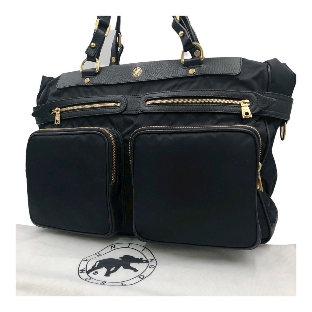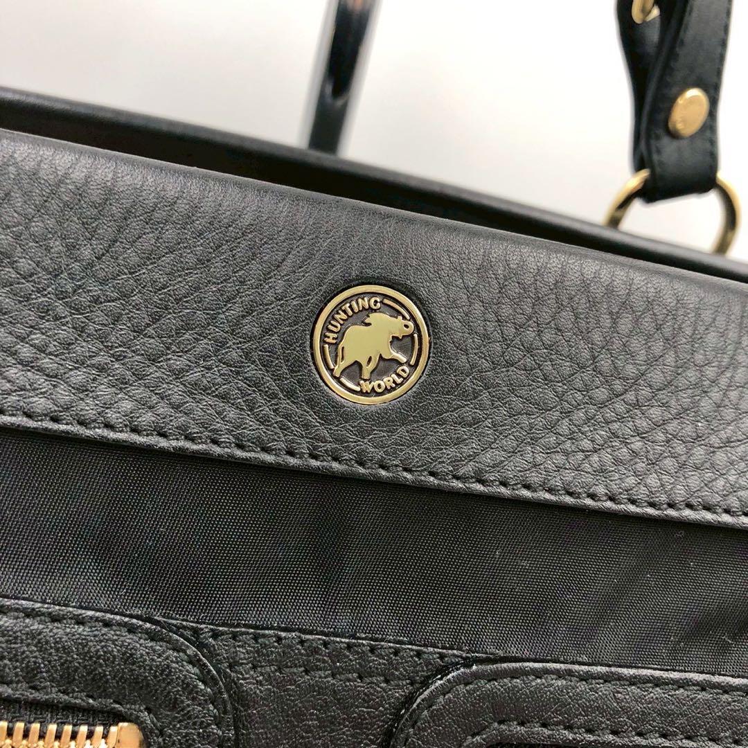 極美品◎大容量◎HUNTING WORLD トートバッグ ビジネスバッグ 黒 ブラック ナイロン レザー イタリア製 保存袋付き A4収納可能070602