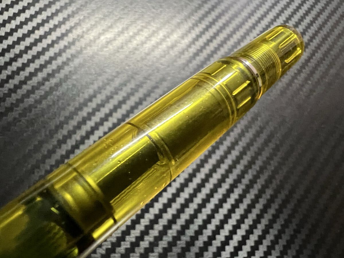 インクの残量を視認できるデモンストレーター仕様で、明るいネオンカラーがデスク上でも存在感を放ちます。