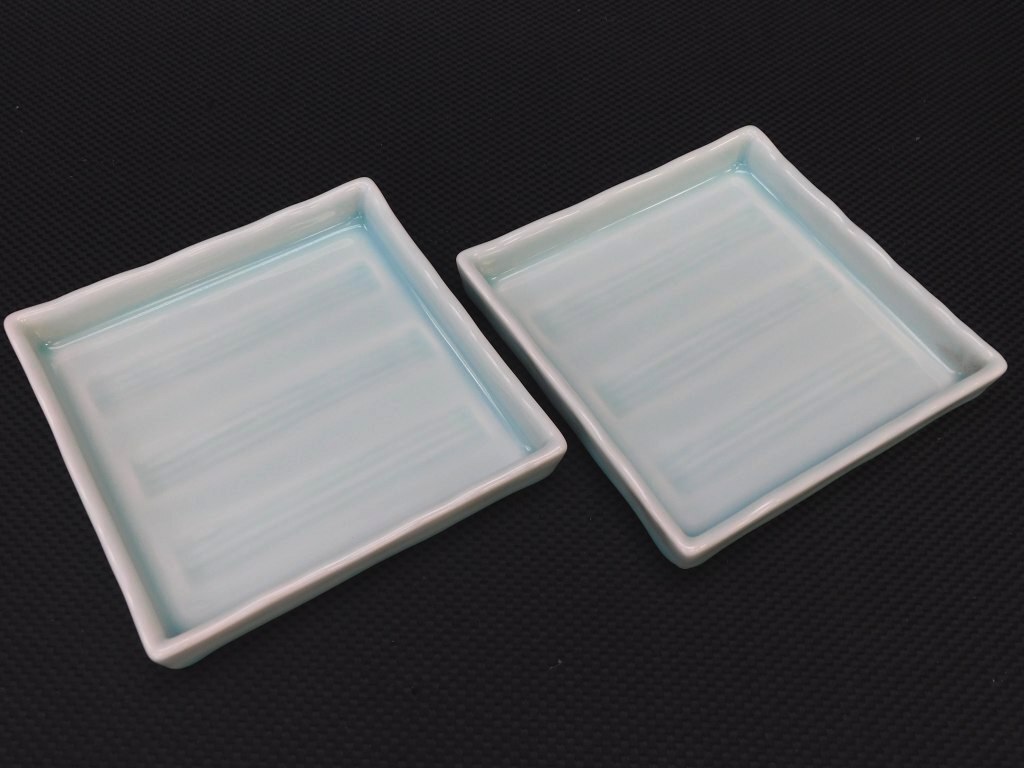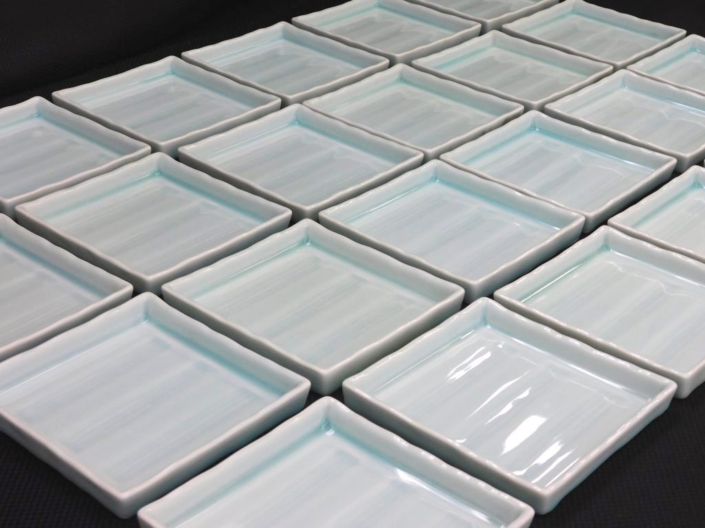 品名 【高級和食器】 青磁 正角皿 陶器製 業務用食器 銘有 和会食 懐石 披露宴 料亭 居酒屋 飲食 レストラン 外食 インバウンド |