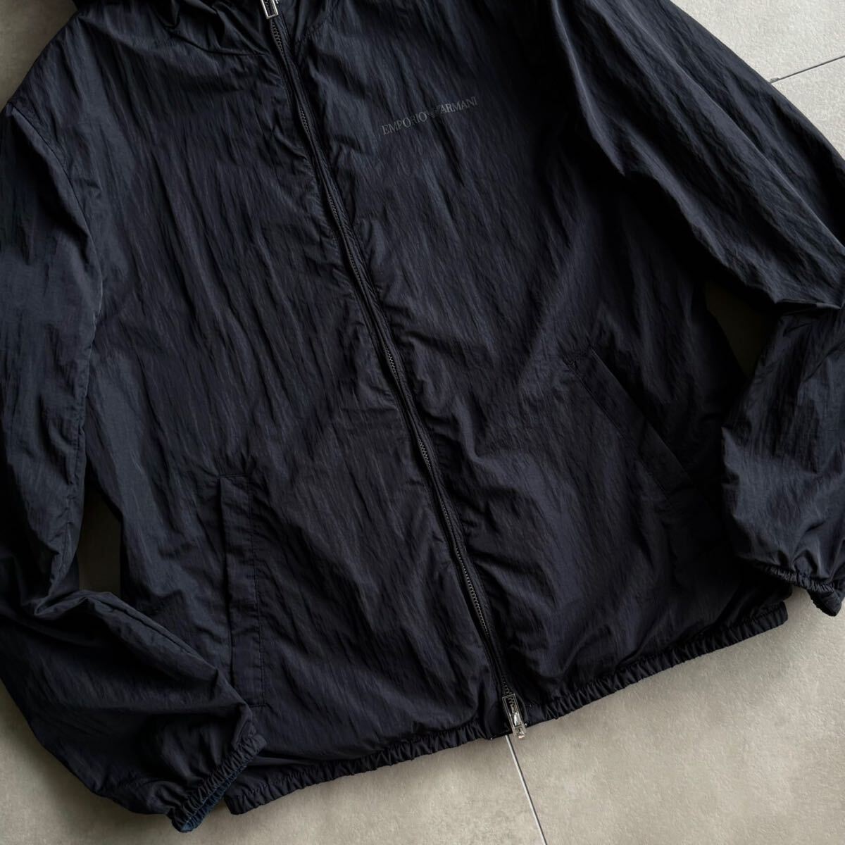 イタリアが誇るラグジュアリーブランド、**EMPORIO ARMANI(エンポリオ・アルマーニ)**が手掛けた、洗練された印象のリバーシブルナイロンジャケット。