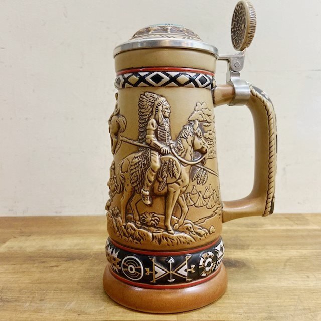 アメリカ ヴィンテージ ビアマグ ネイティブアメリカン インディアン 80’s アメリカン雑貨 ディスプレイ ナバホ【B5328】