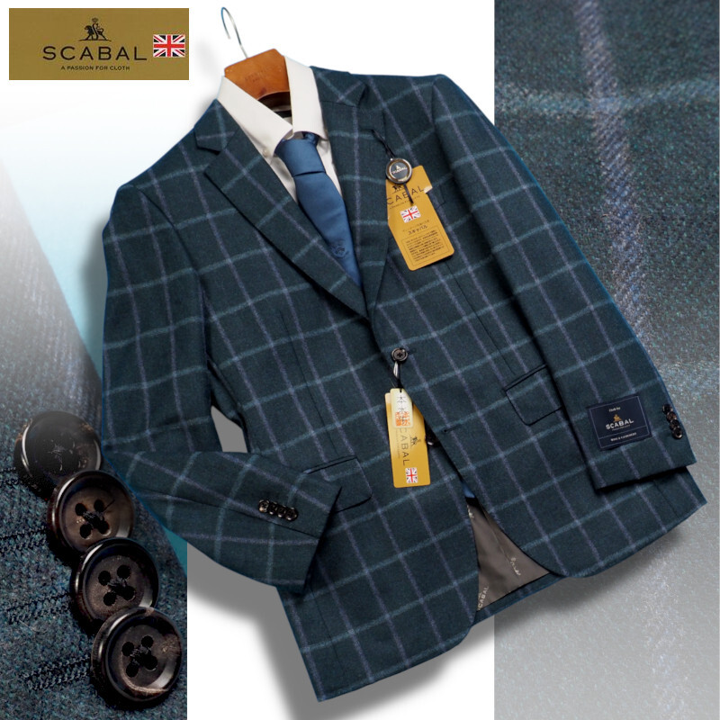 新品14.3万円 大手百貨店扱い 秋冬 日本製『Scabal スキャバル 英国製生地』カシミヤ混ウール フランネル ジャケットA6緑(I) 3251490