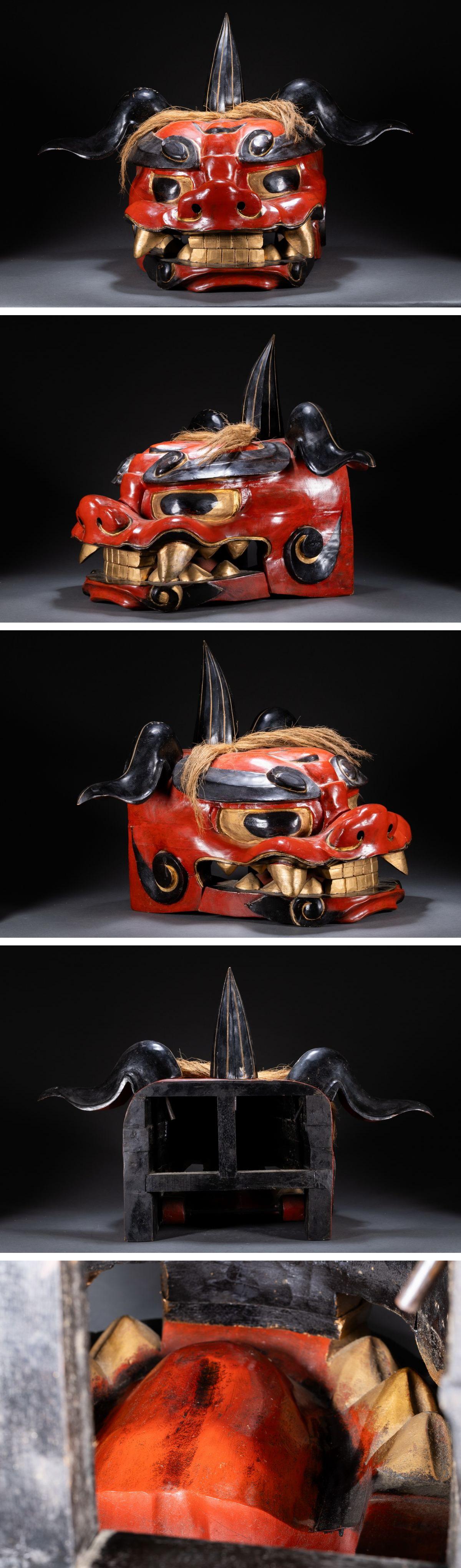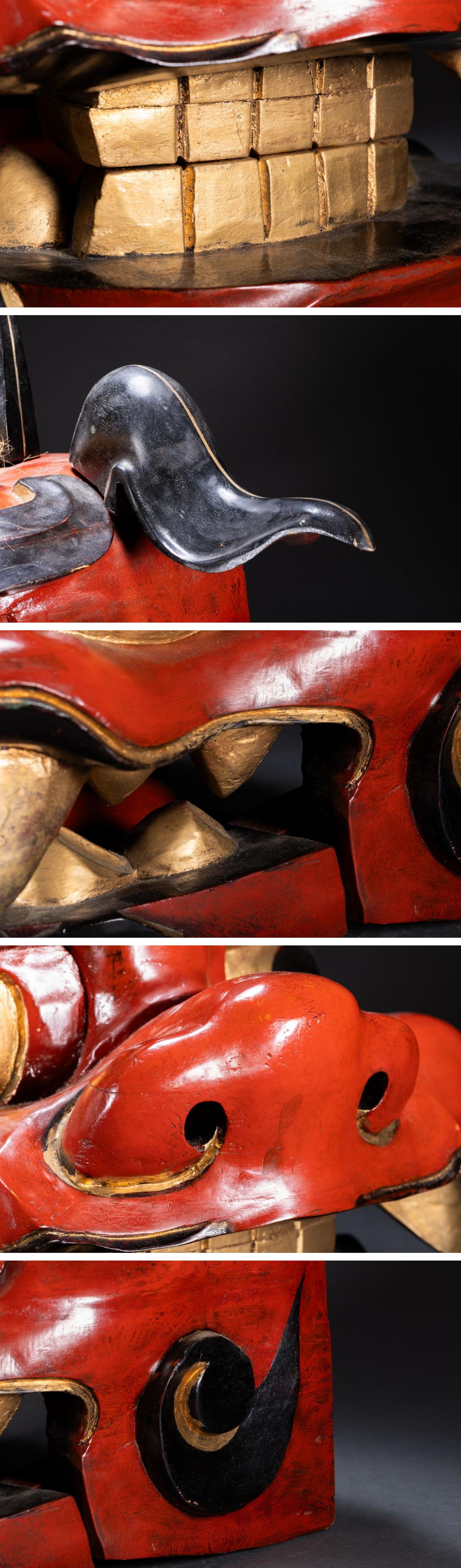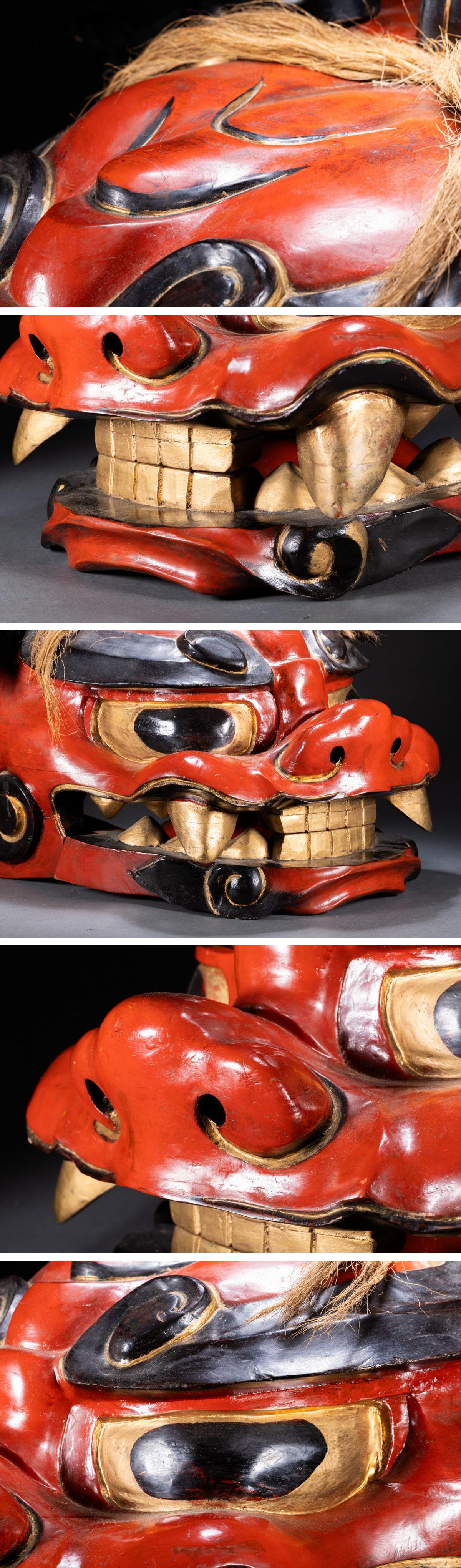 【雲錦】某有名オークション購入 明治時代物 木彫り金彩 巨大獅子頭100CM 古置物 古擺件 古美術 時代コレクションWK9-215L