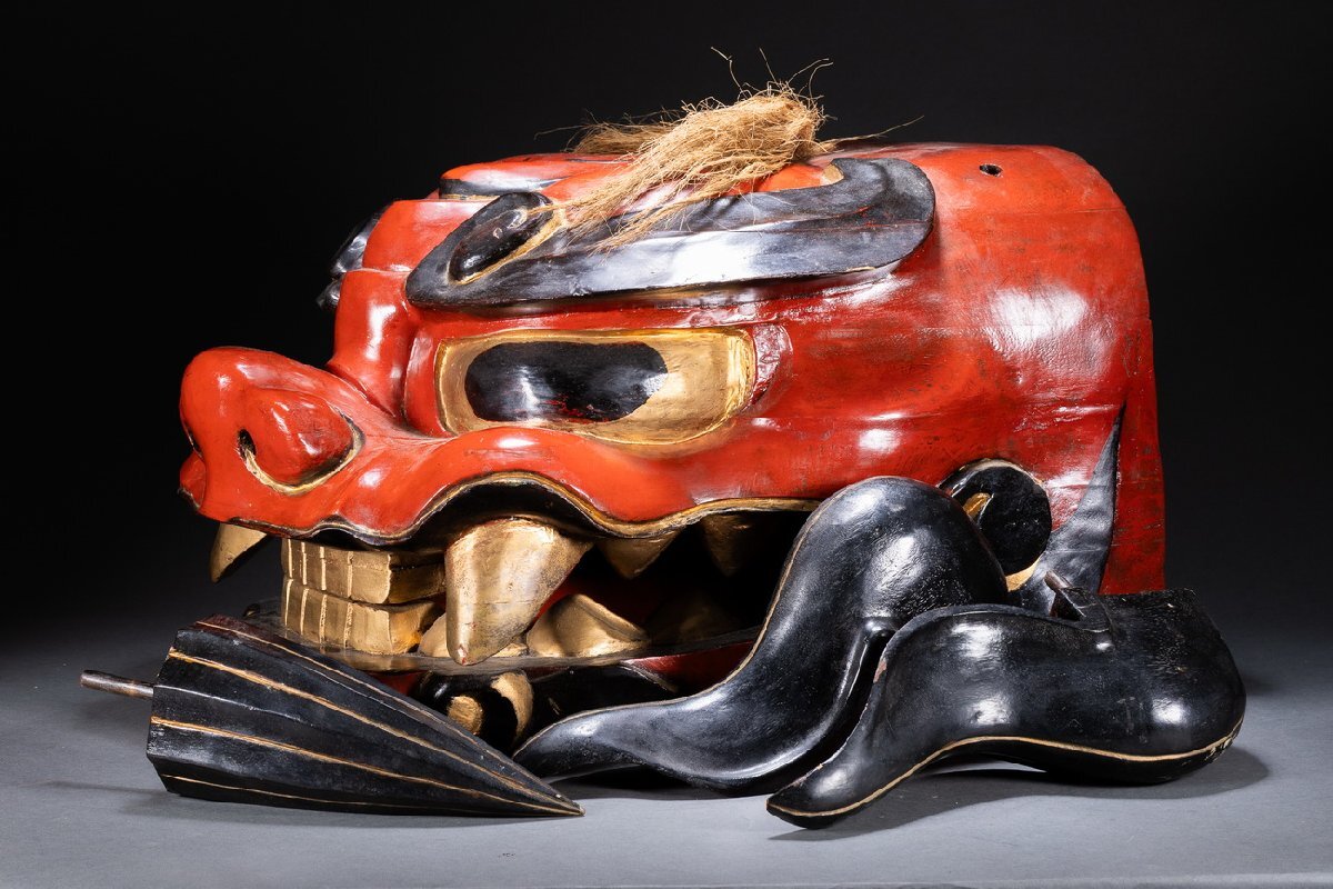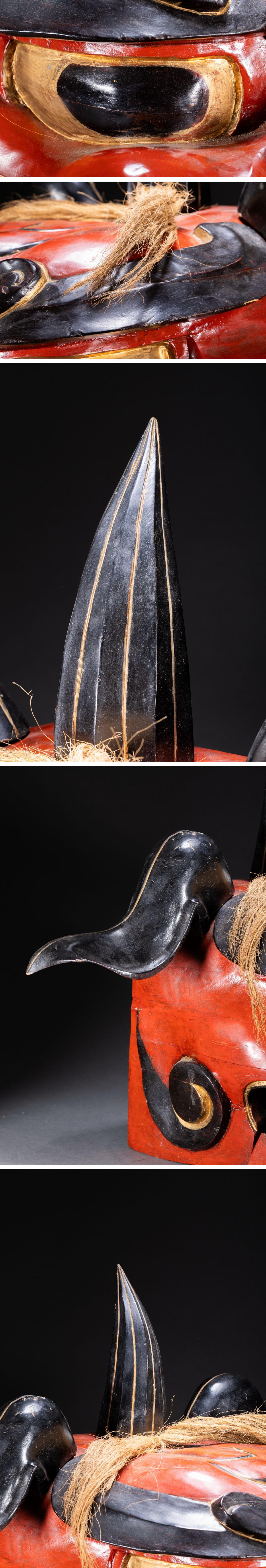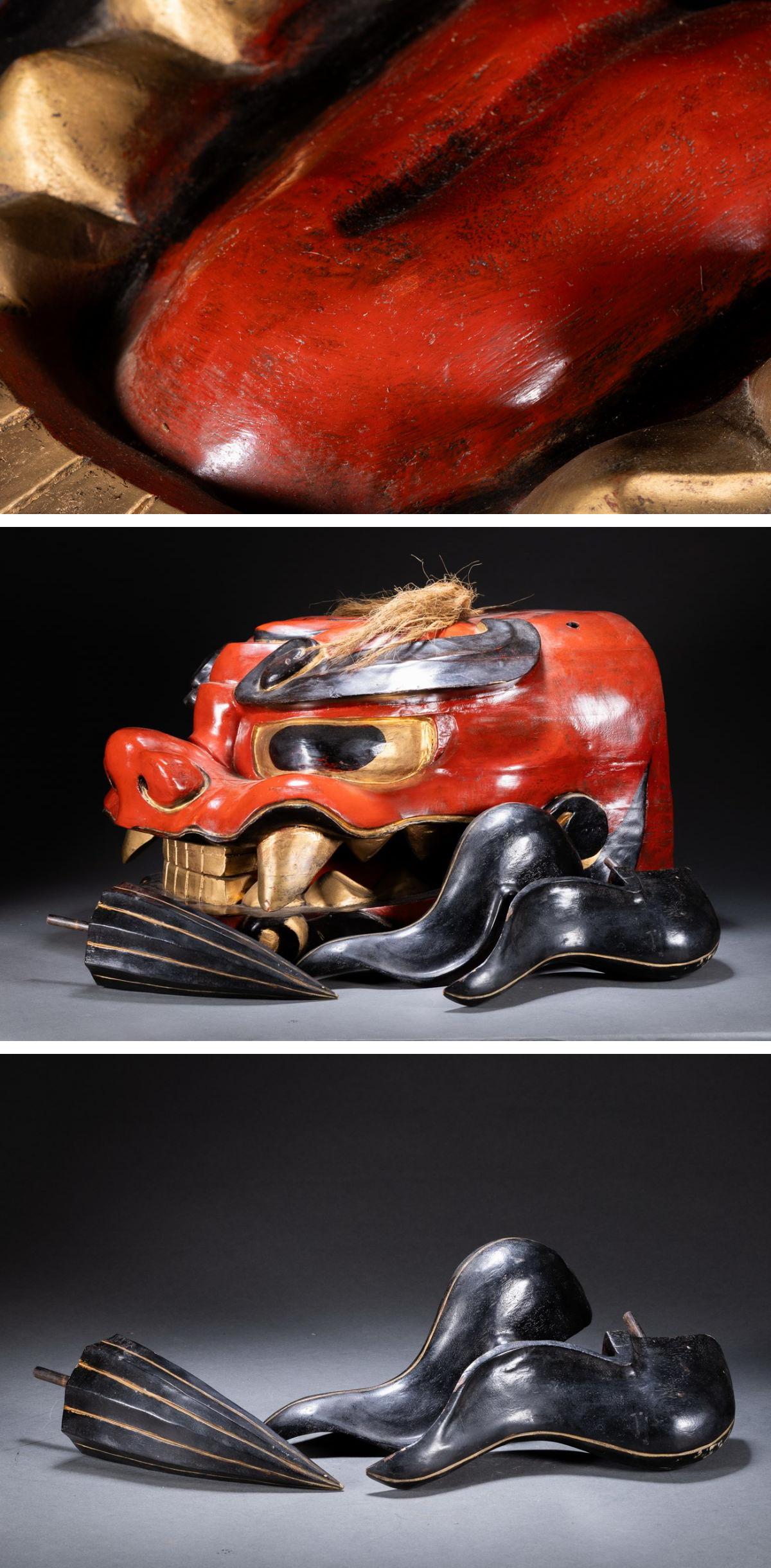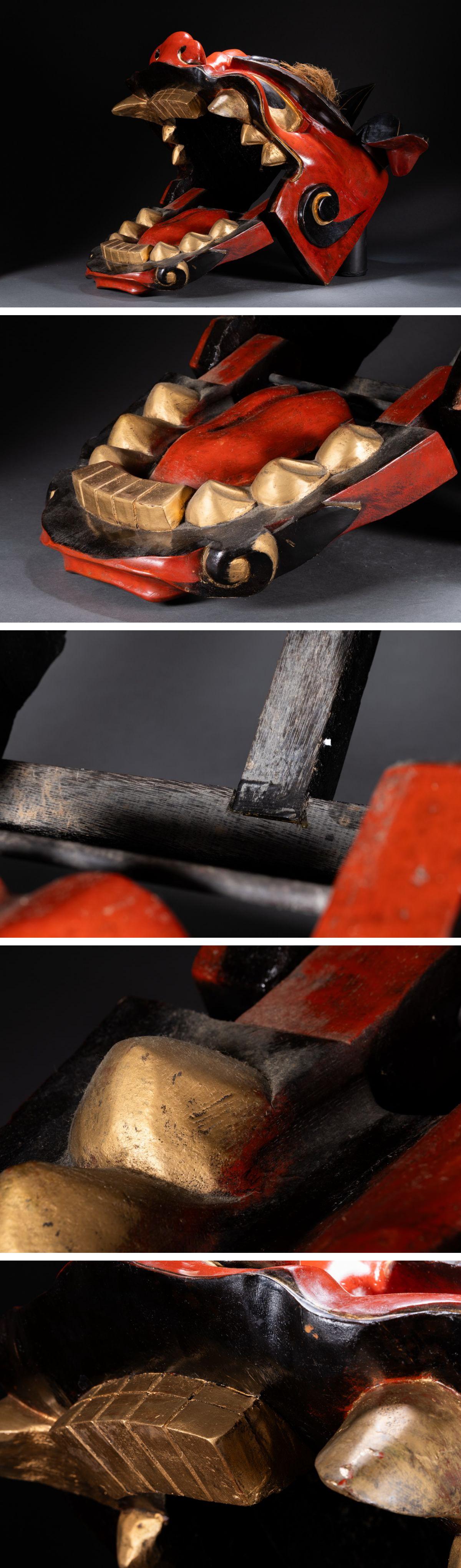 【雲錦】某有名オークション購入 明治時代物 木彫り金彩 巨大獅子頭100CM 古置物 古擺件 古美術 時代コレクションWK9-215L