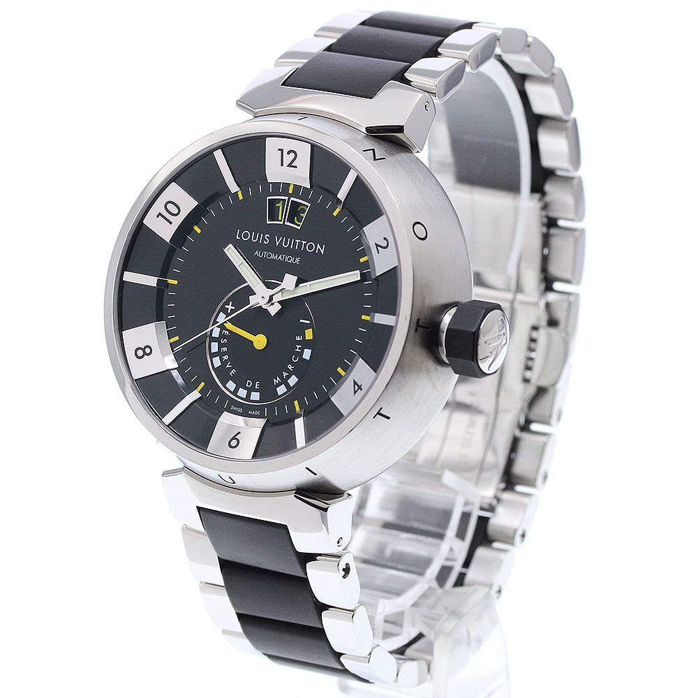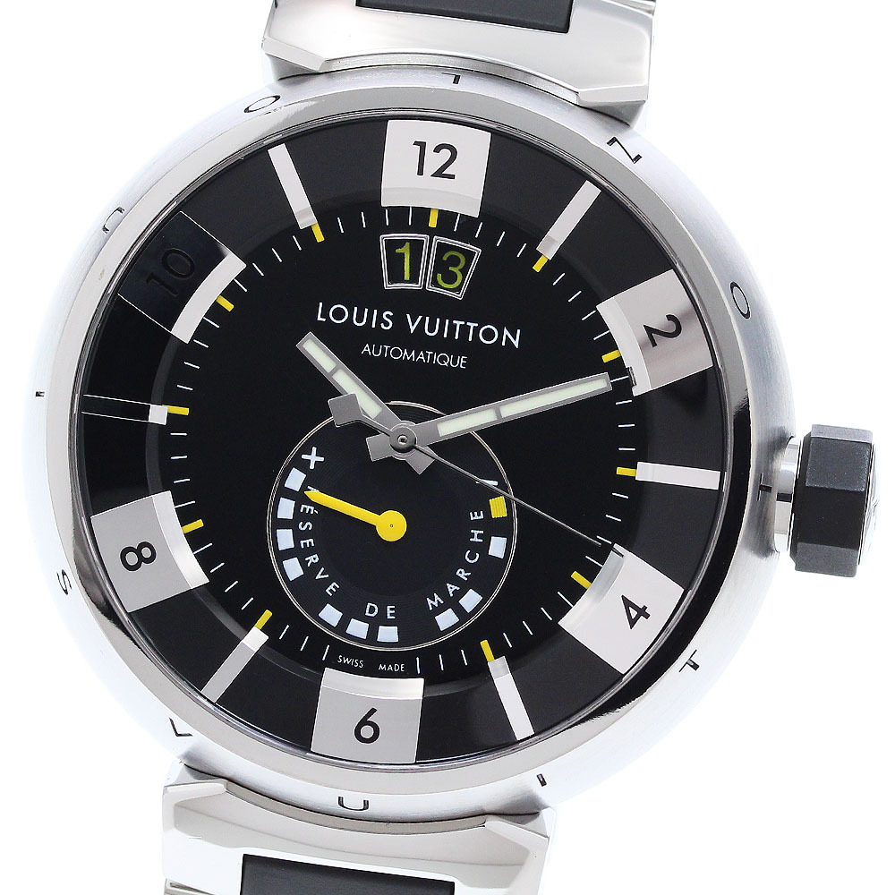 ルイ・ヴィトン LOUIS VUITTON Q109G タンブール インブラック パワーリザーブ デイト 自動巻き メンズ 良品 _910791