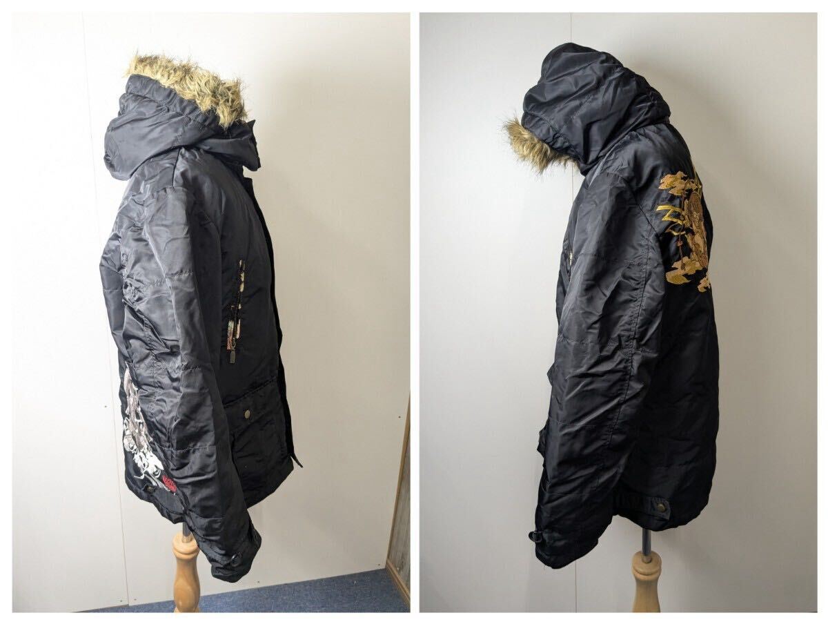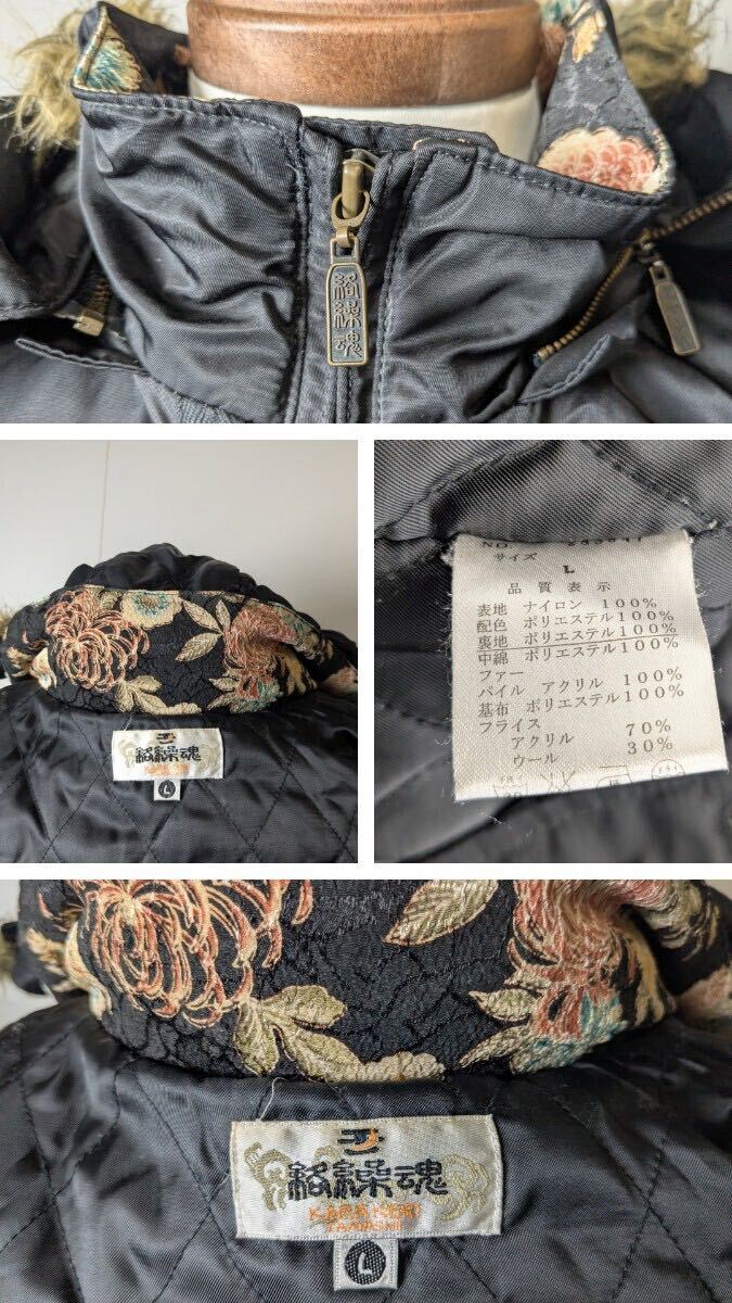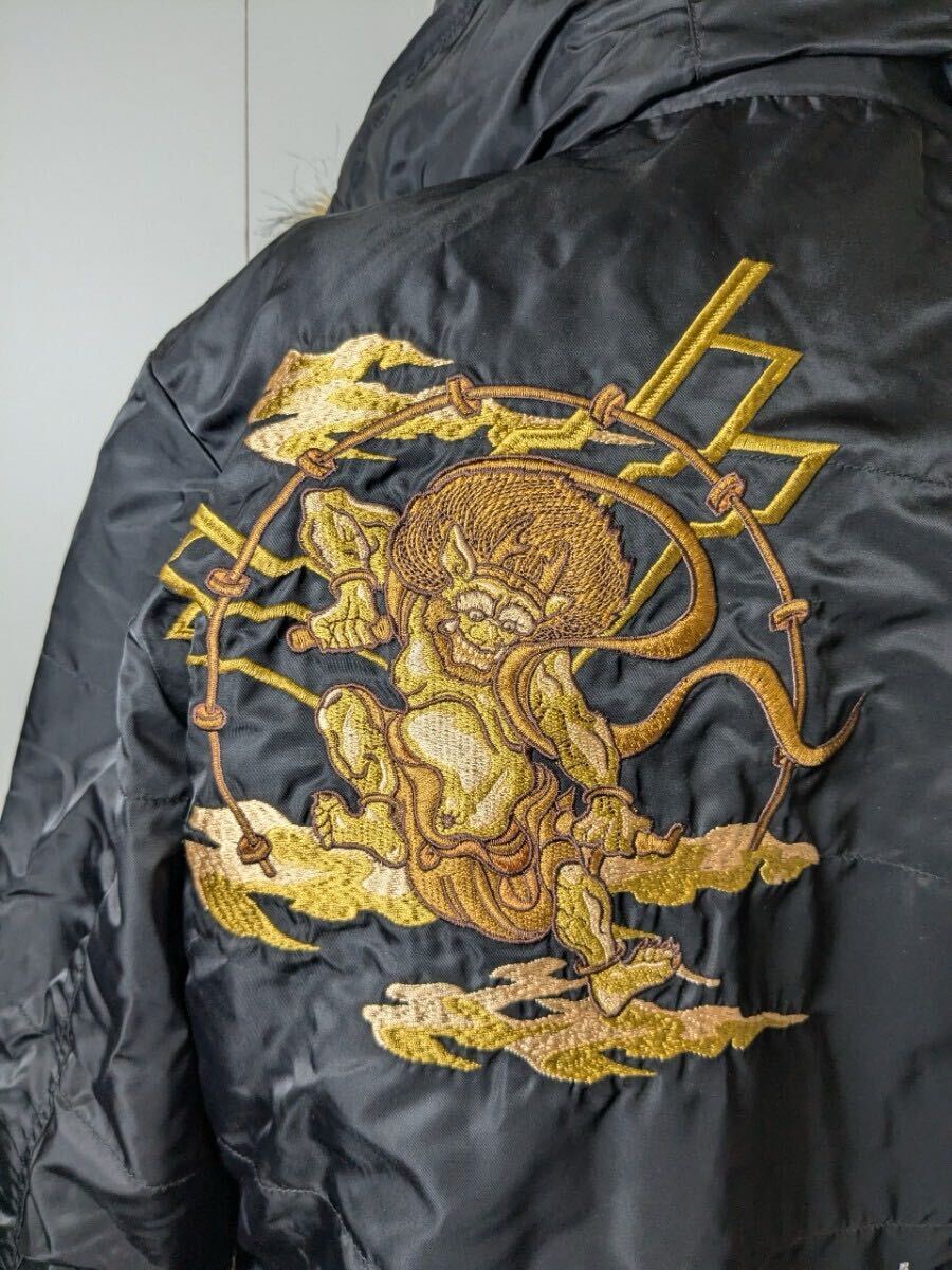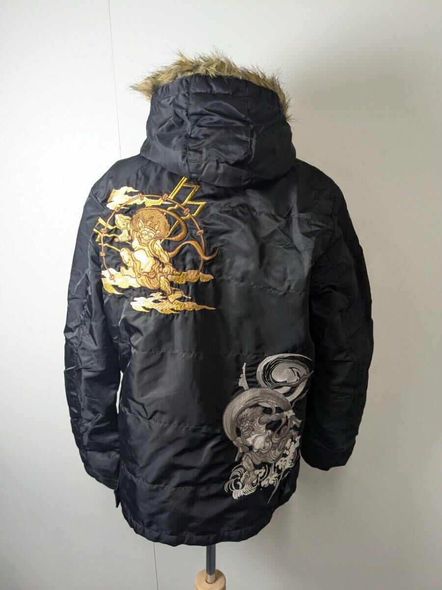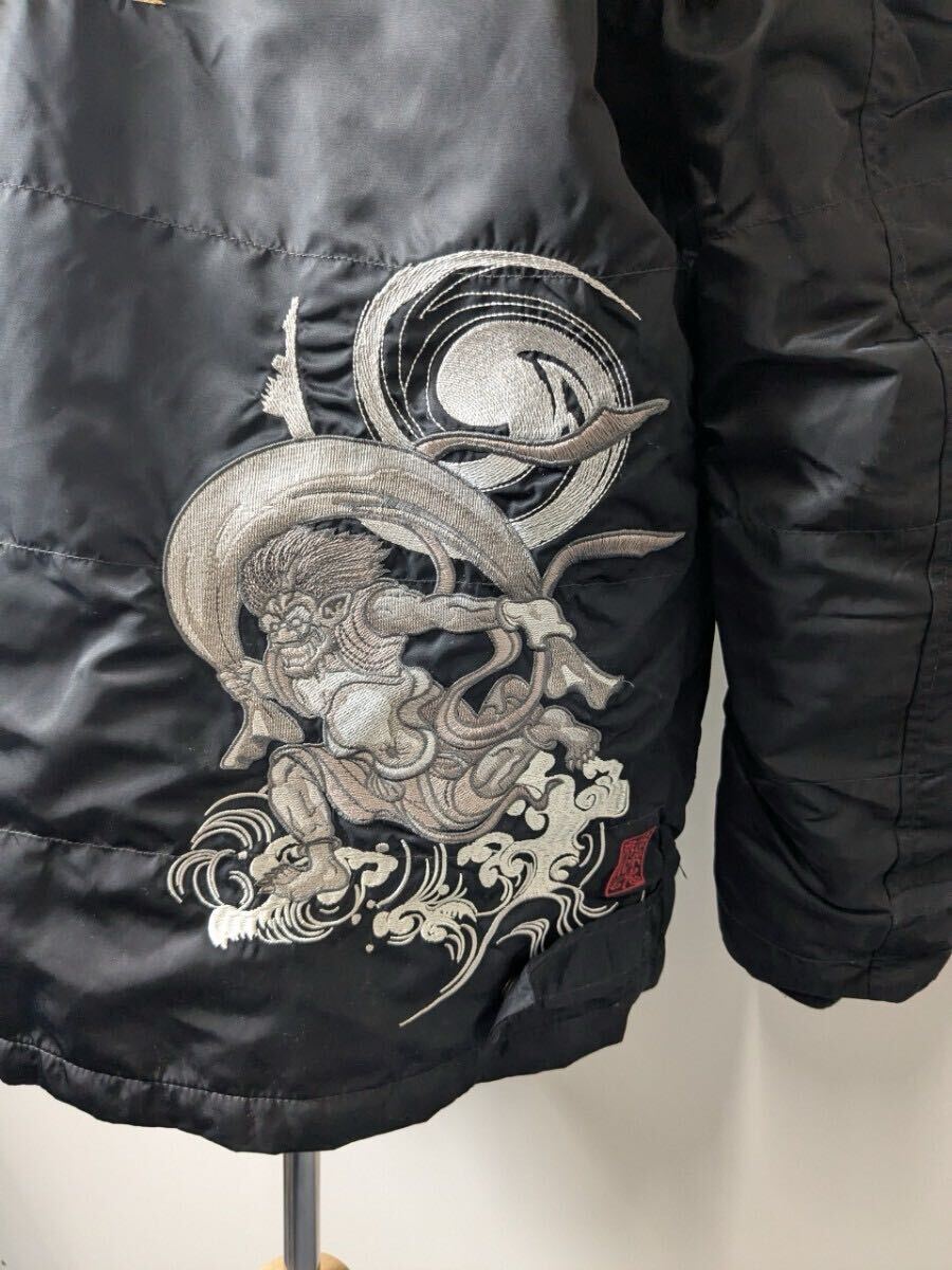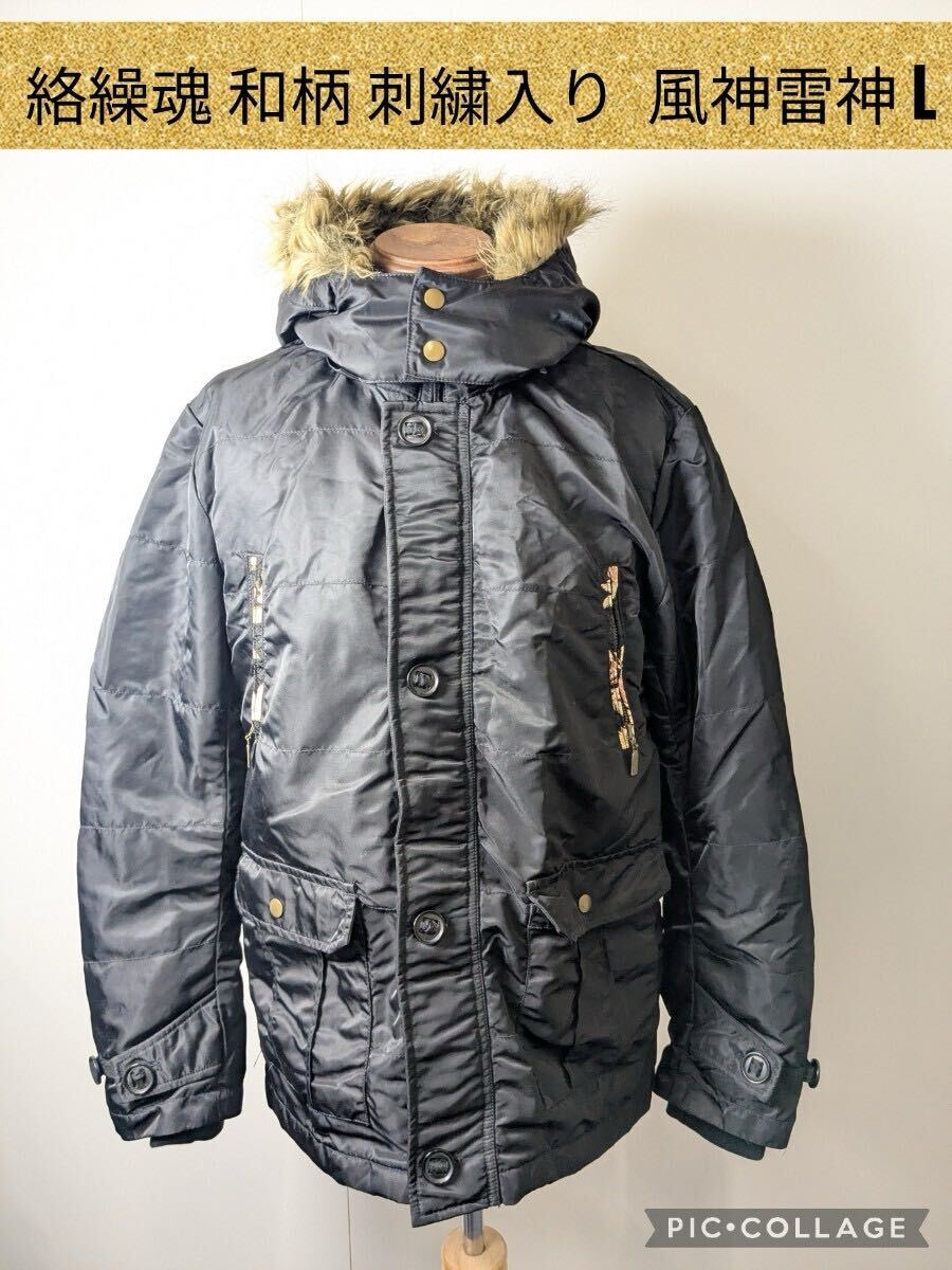 絡繰魂 和柄 刺繍入り 中綿フードブルゾン 風神雷神 L になります。