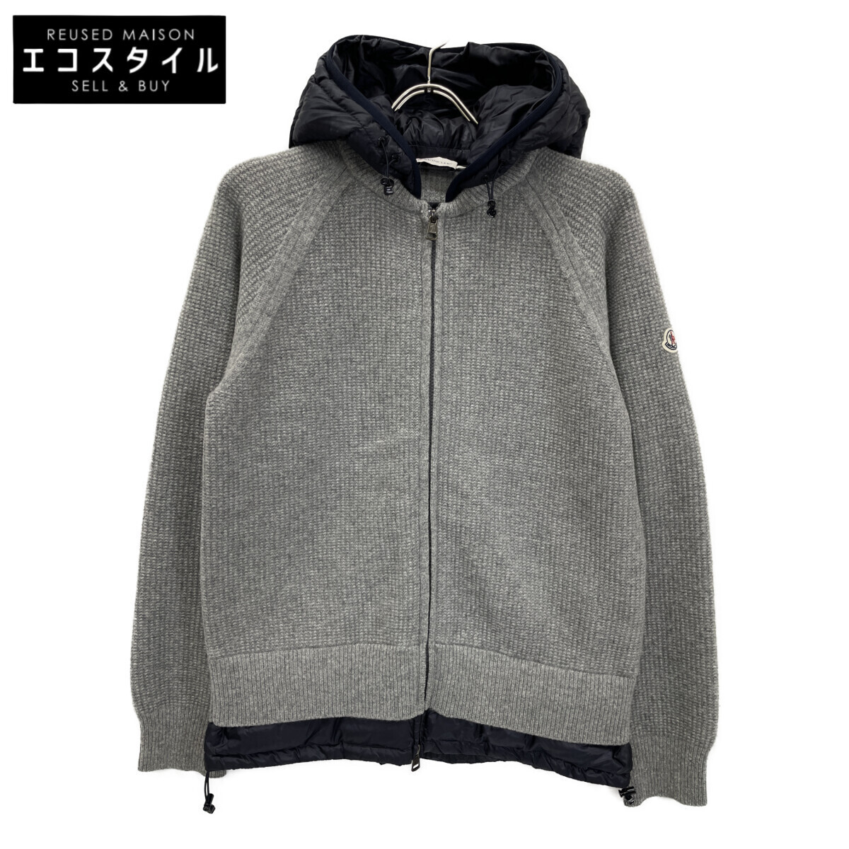 MONCLER モンクレール グレー×ネイビー マグリアトリコットカーディガン グレー×ネイビー S カーディガン ウール メンズ 中古