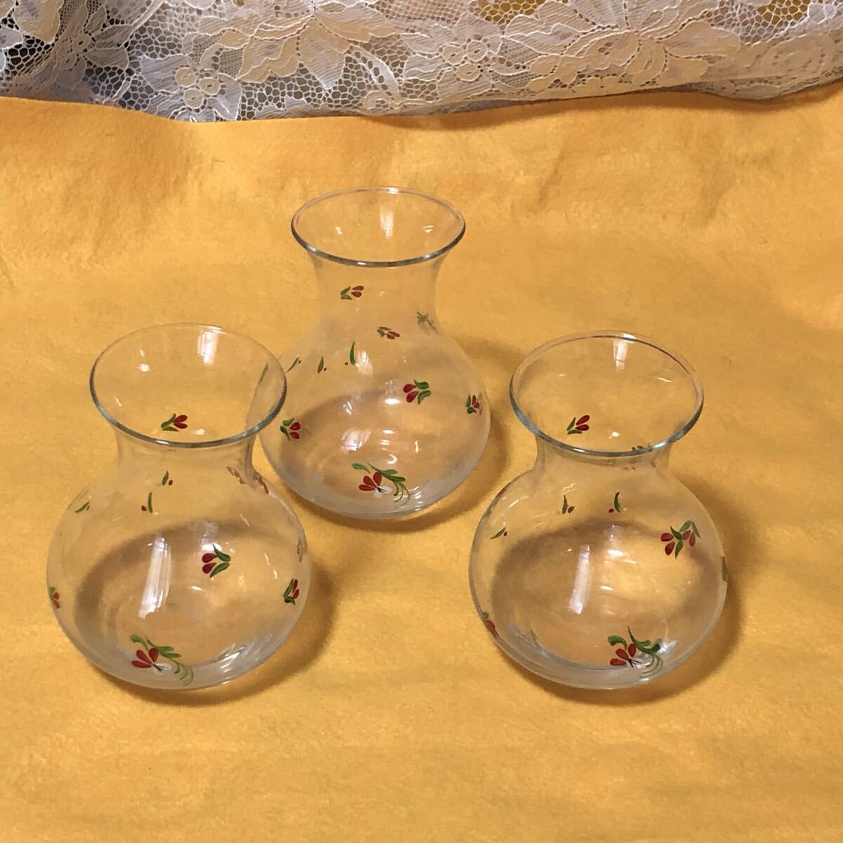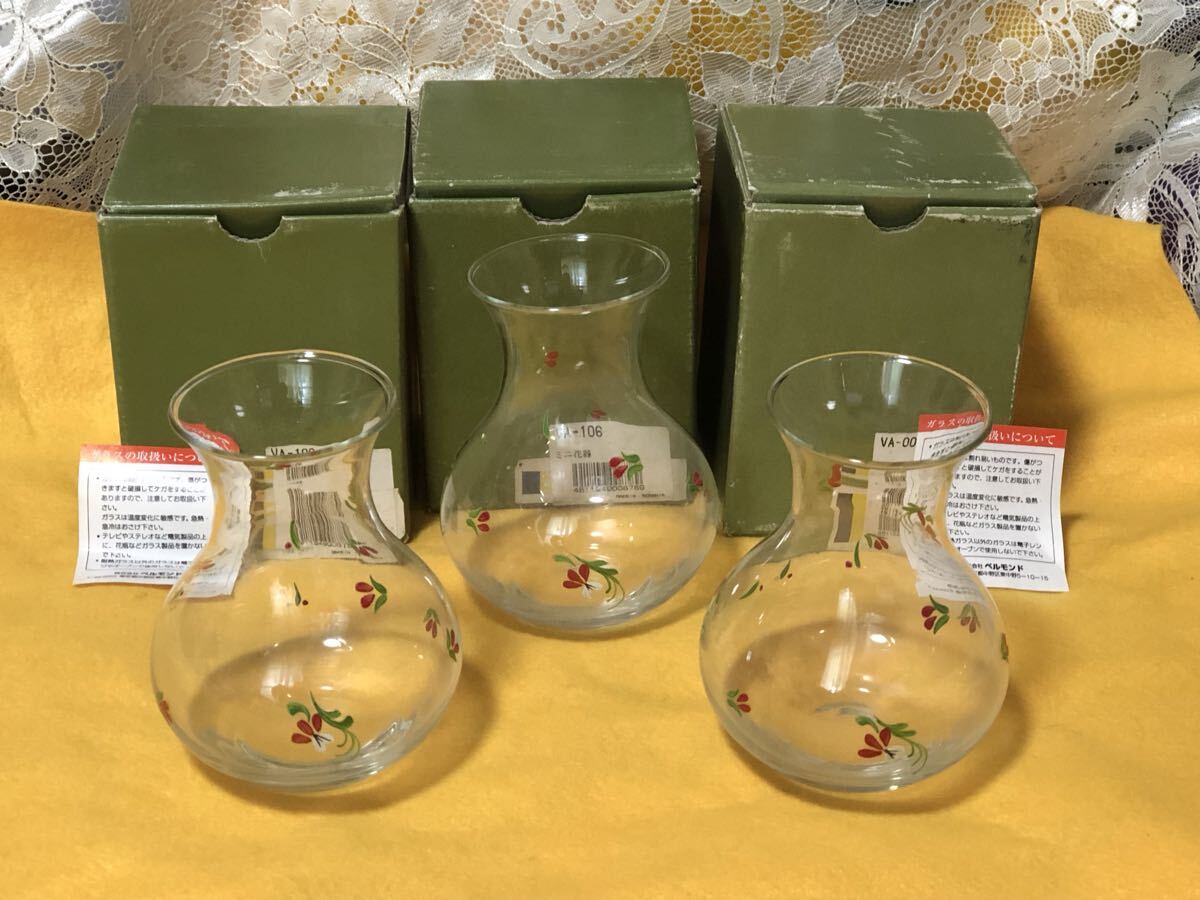 使用状況 :未使用保管品です。ルーマニア製のクリスタルの花柄のミニ花瓶まとめて3点です。箱等も有ります。レトロな花柄の可愛い花瓶です。