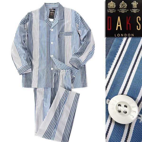 【DAKS LONDON】 英国を代表するブランド「ダックス」は、100年以上の歴史を誇る伝統と信頼のあるブランドとして高い評価を得ています。 英国王室御用達の証として3つのロイヤルウォラントを授与されています。 お洒落なマルチストライプが配色された、サラッとしたコットン100%素材を使用したパジャマです。 胸ポケットには【DAKS】タグが装飾され、ボタンにも【DAKS】の刻印が入っています。 パンツは前開き付きで、ウエストにゴムを使用したストレスフリータイプ。 少し肩を落としたゆったりシルエットなので、リラックスタイムにピッタリのアイテムです。 |