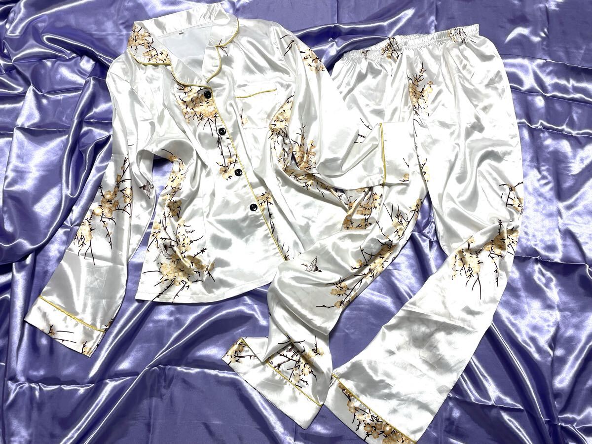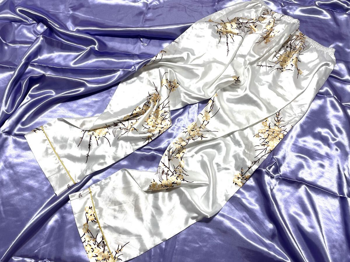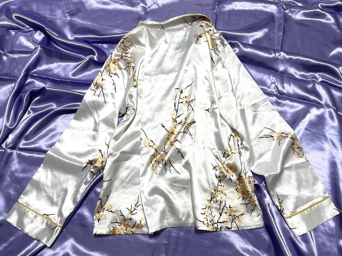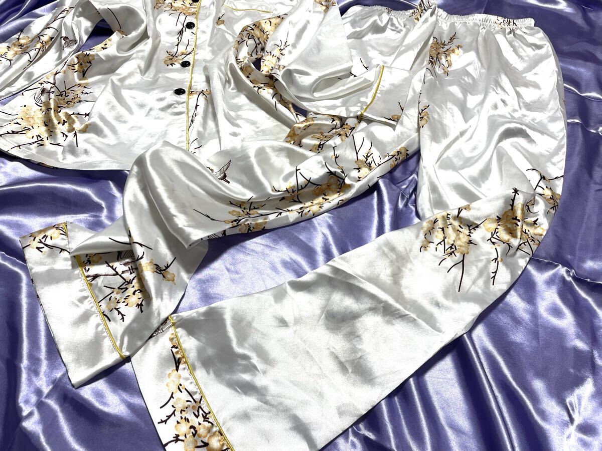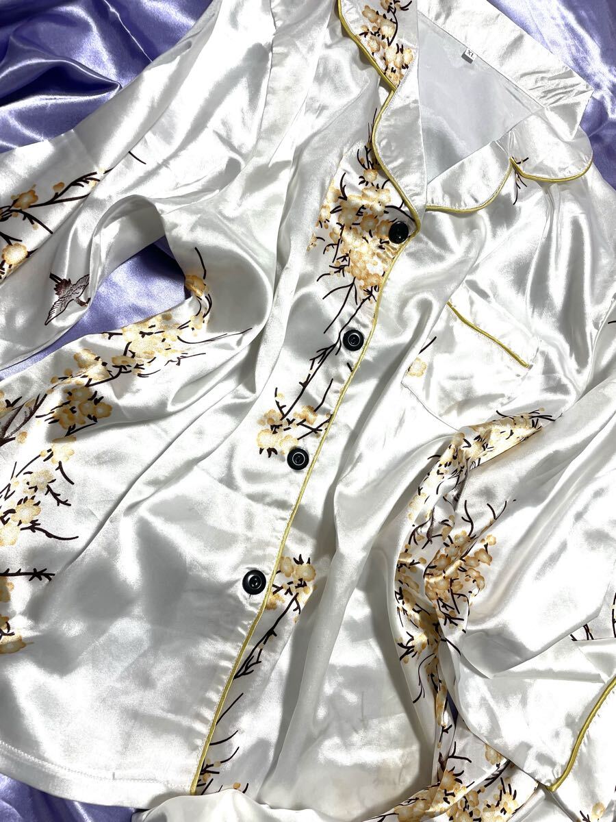 上下セット 超光沢サテン 超ツルツル パジャマ ナイトウエア フェチ 女装家様 XL 大きいサイズ