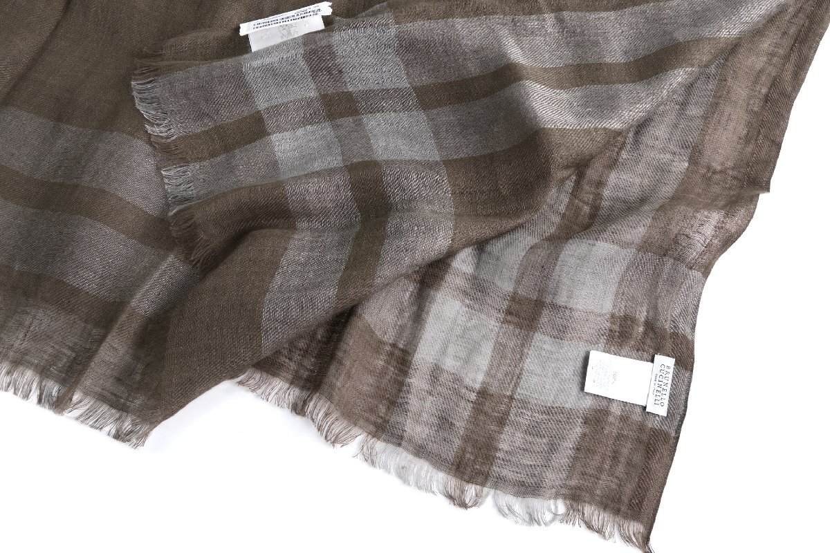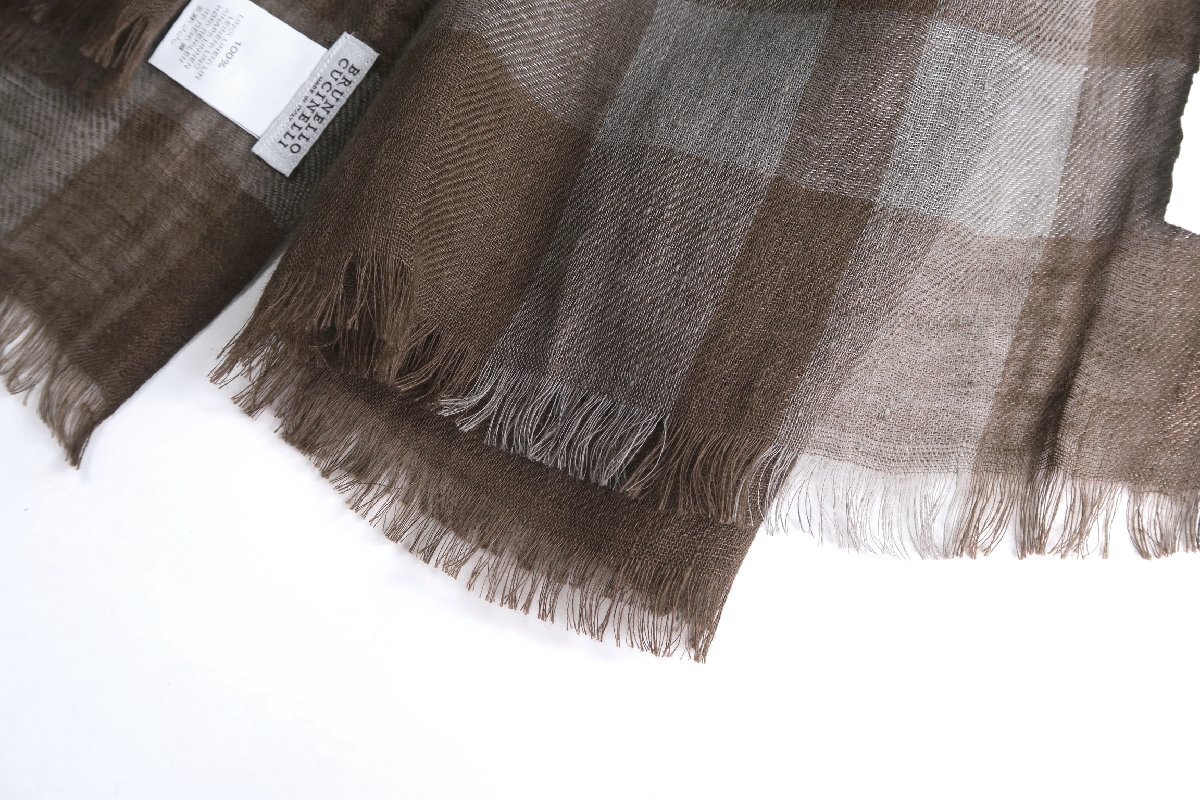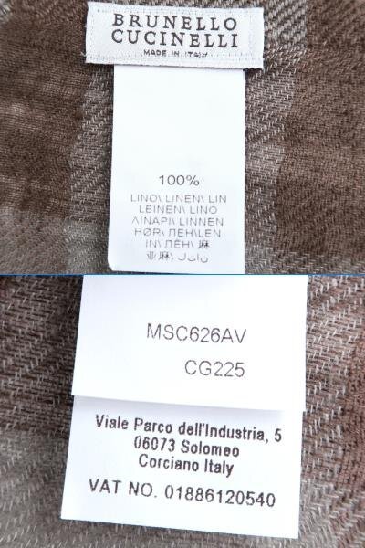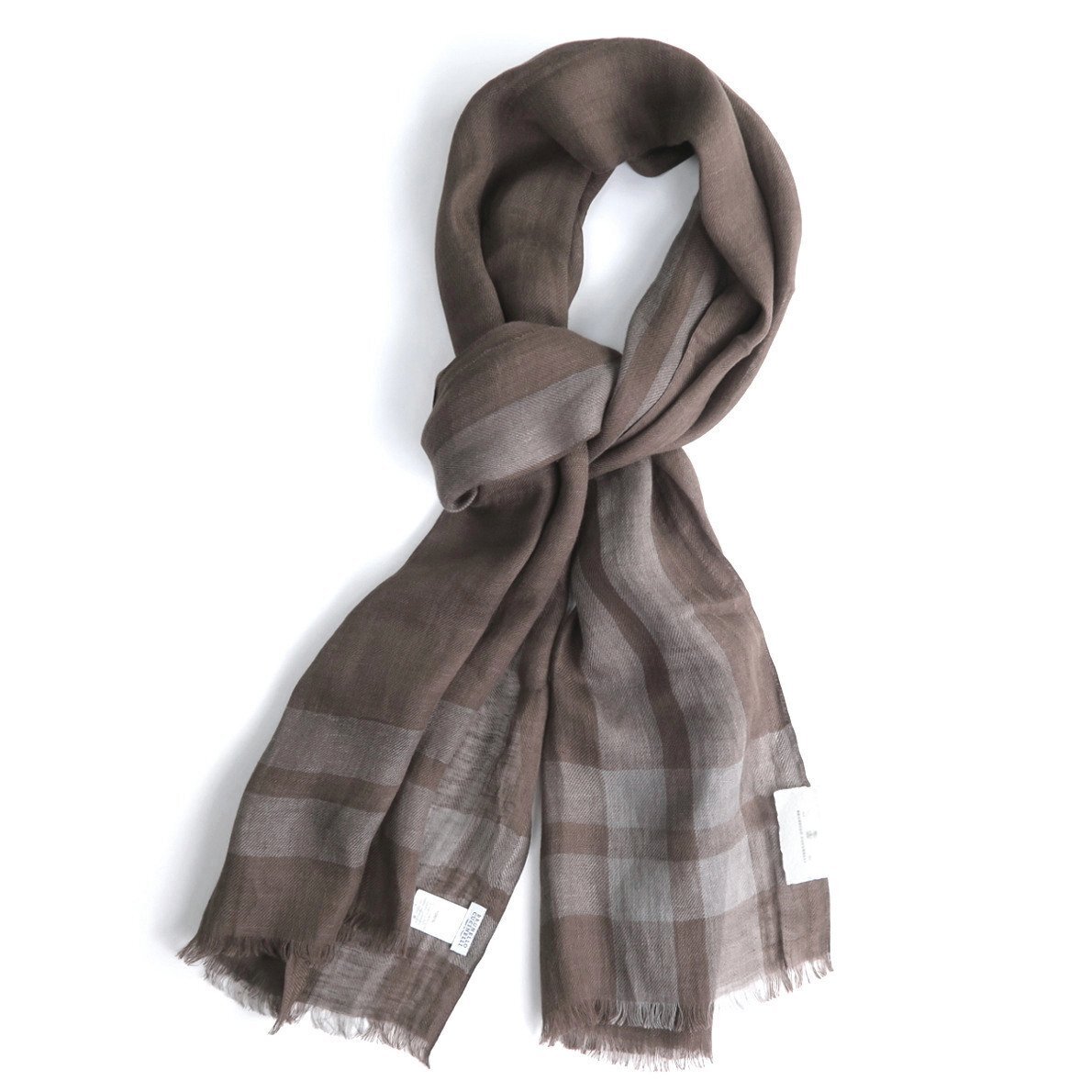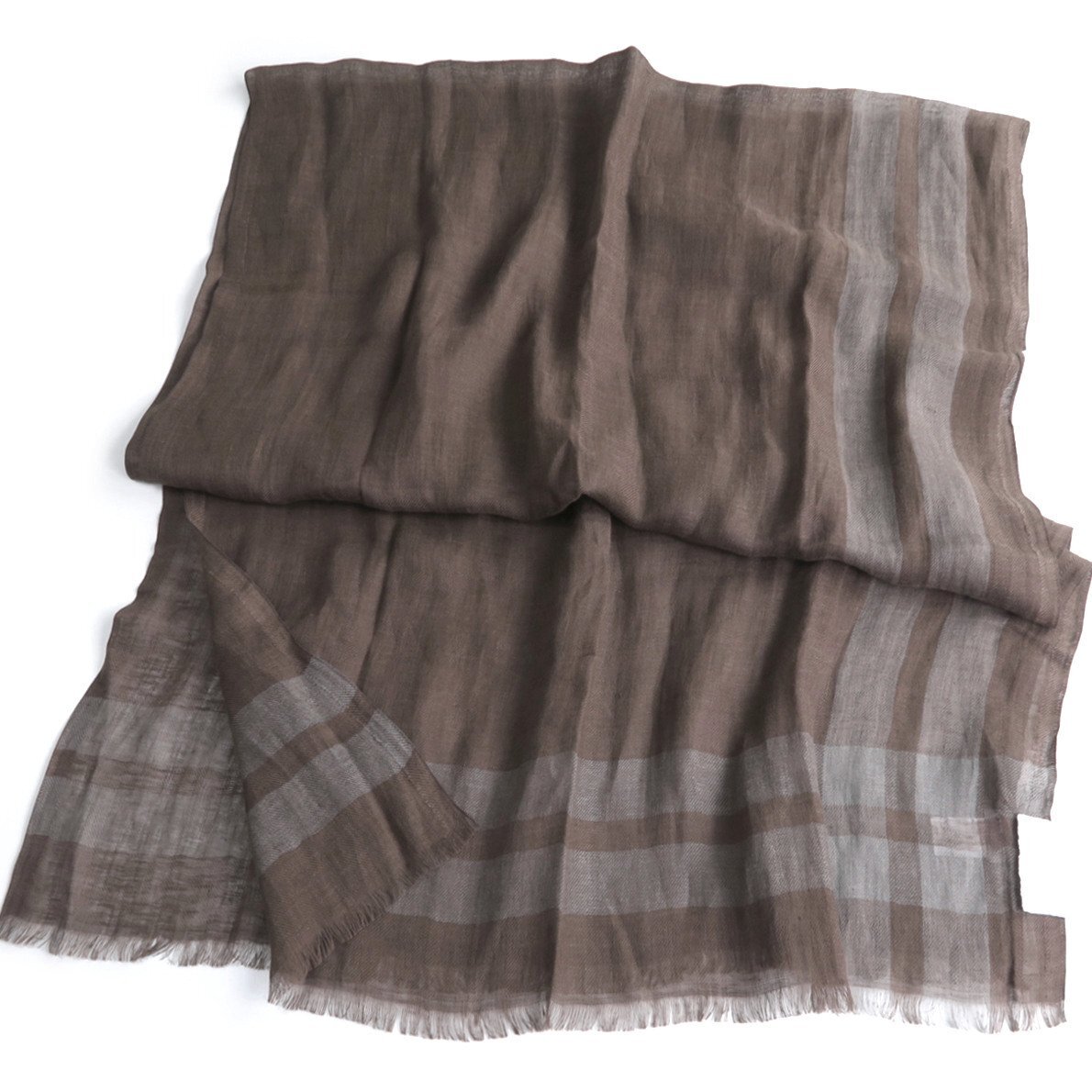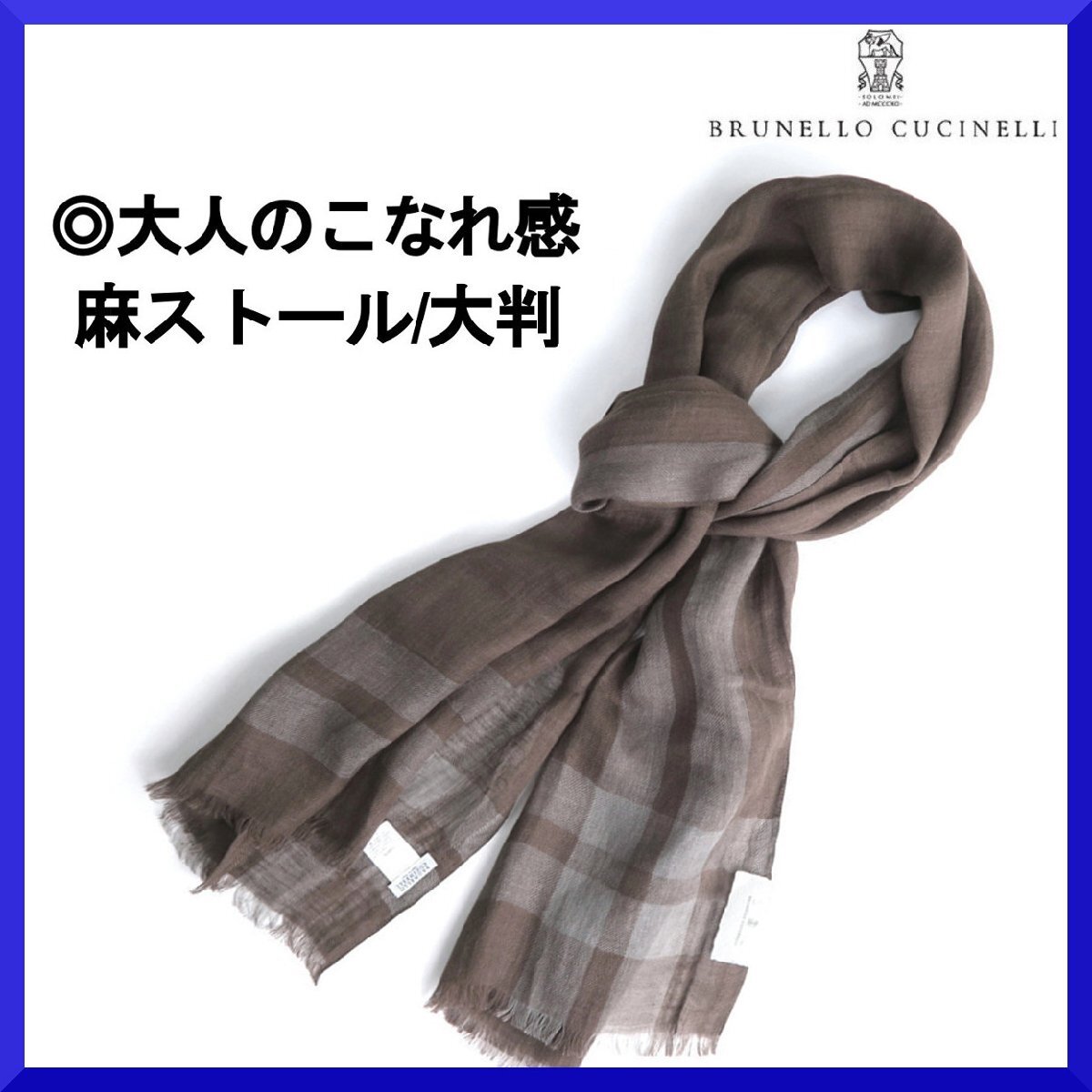 【参考価格10万】BRUNELLO CUCINELLI イタリア製 リネンマフラー・ストール/ダークブラウン系/大判/長さ:約185cm×横幅:約73cm/新品未使用