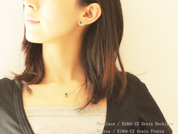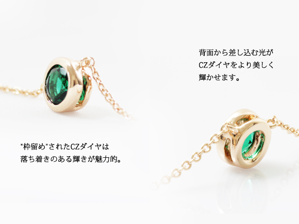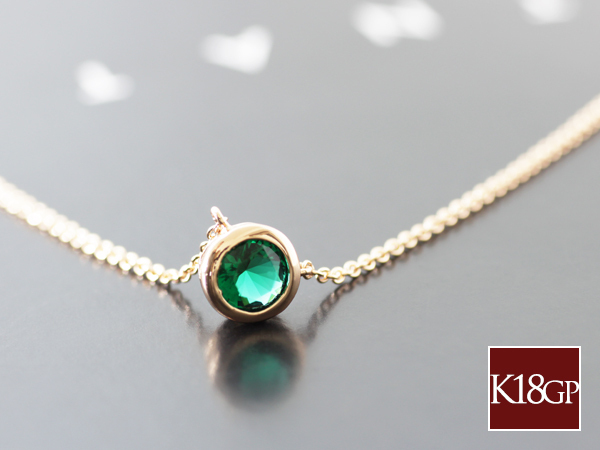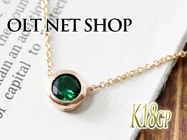 ネックレス レディース 一粒 エメラルド カラー ピンクゴールド 18金 18kコーティング シンプル 上品 女性/ K18GP CZダイヤ 一粒ネックレス