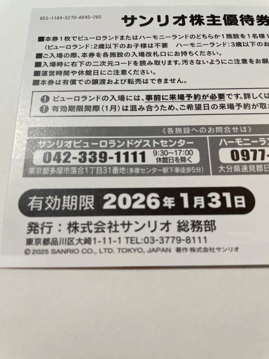・画像3枚目の株主用のサンリオカードも一緒にお付けします。
