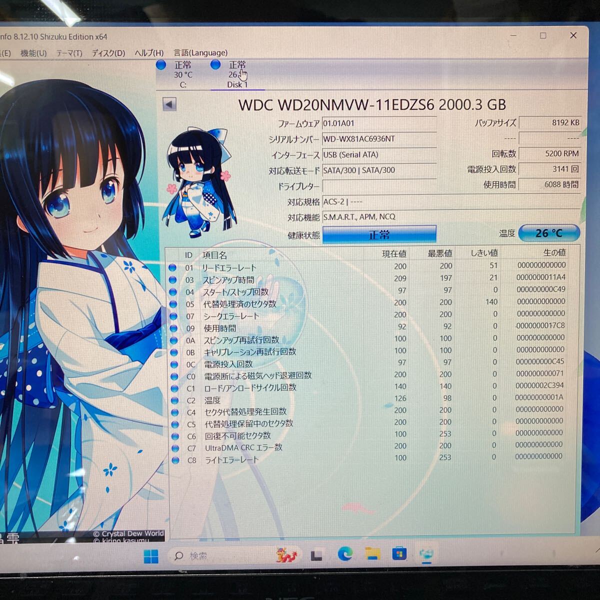 Crystaldiskinfoにて【正常】と判定されました。