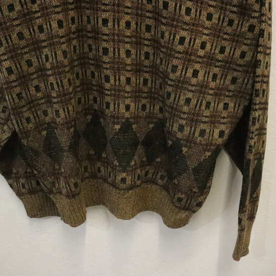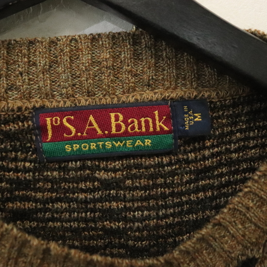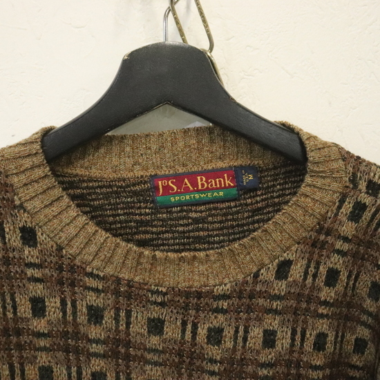 n962 80sビンテージ コットンニットセーター JSABank USA製■1980年代製 表記Mサイズ 古着 アメカジ ストリート 90s 70s 柄 激安 古着卸