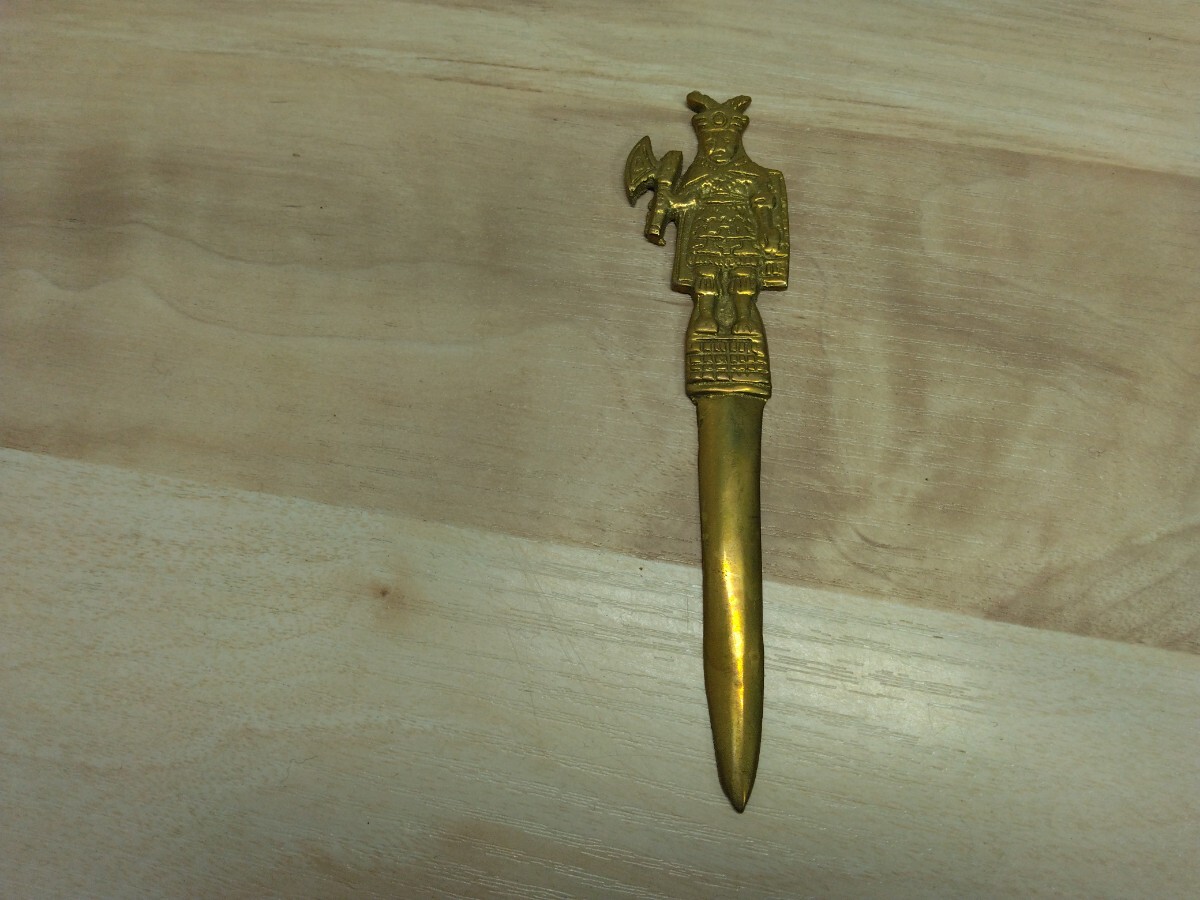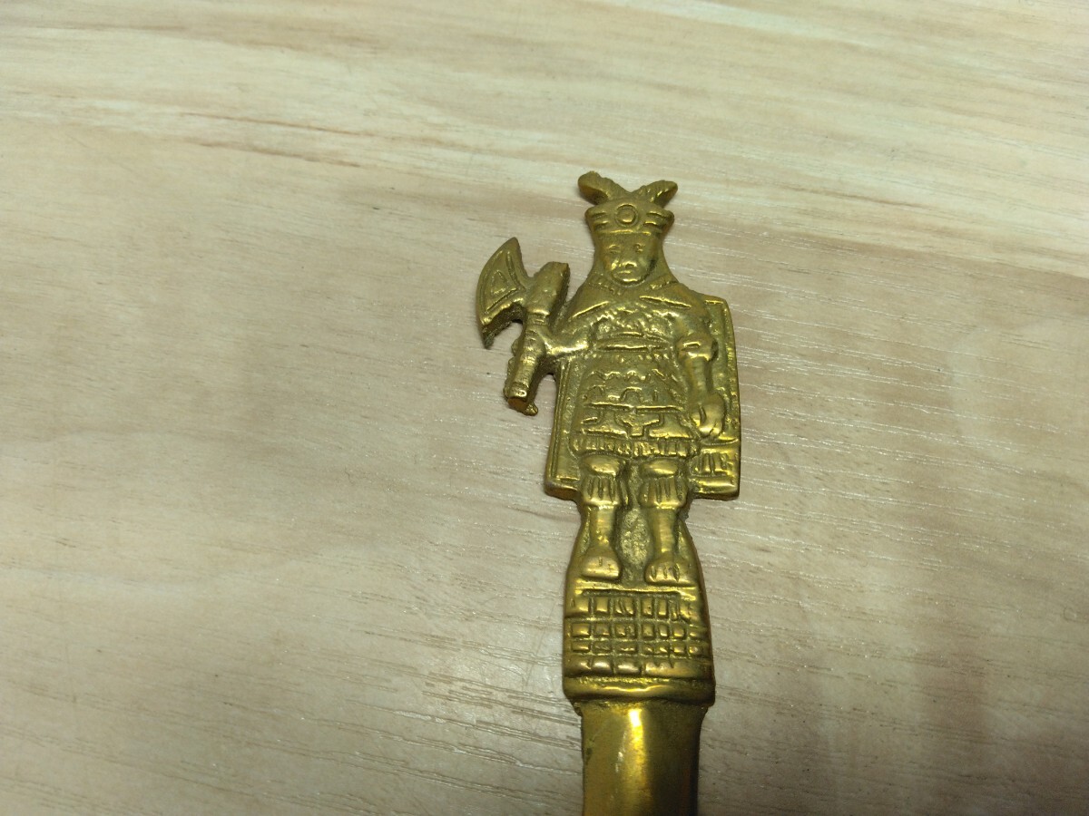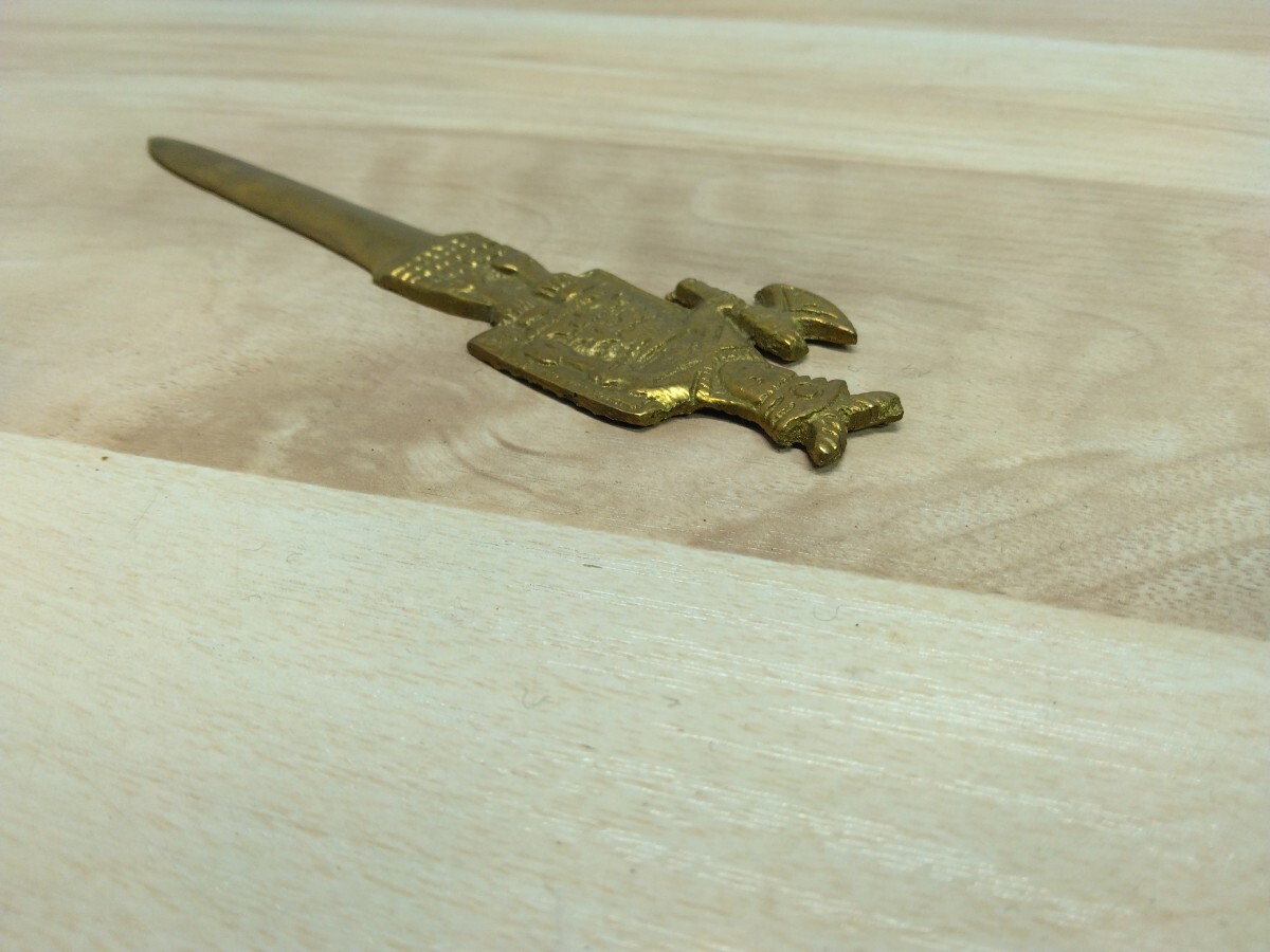 当時物 レトロ 真鍮 ペルー マヤ戦士 レターオープナー ペーパーナイフ ヴィンテージ 飾り物 インテリア