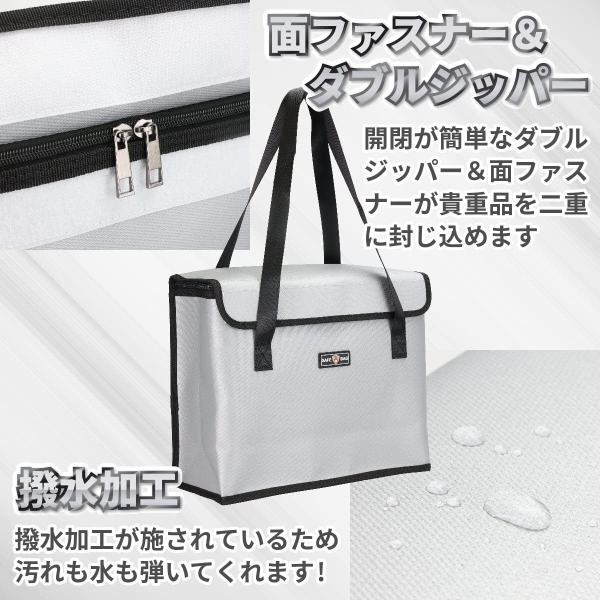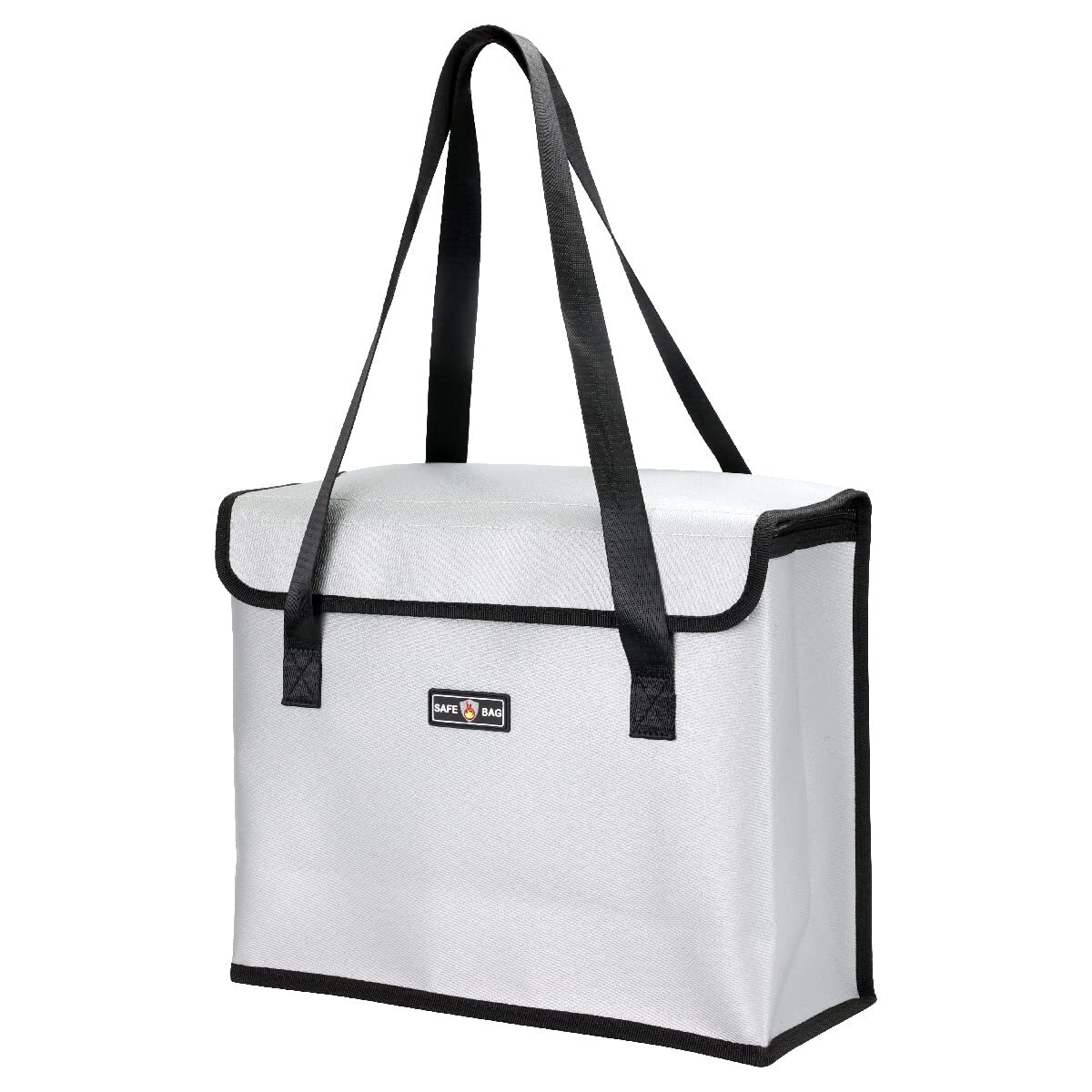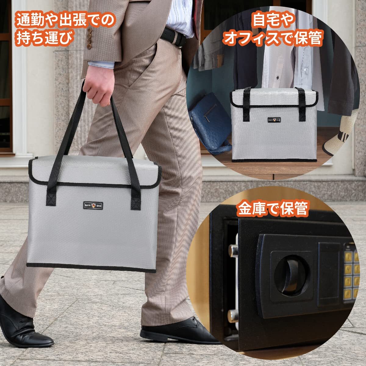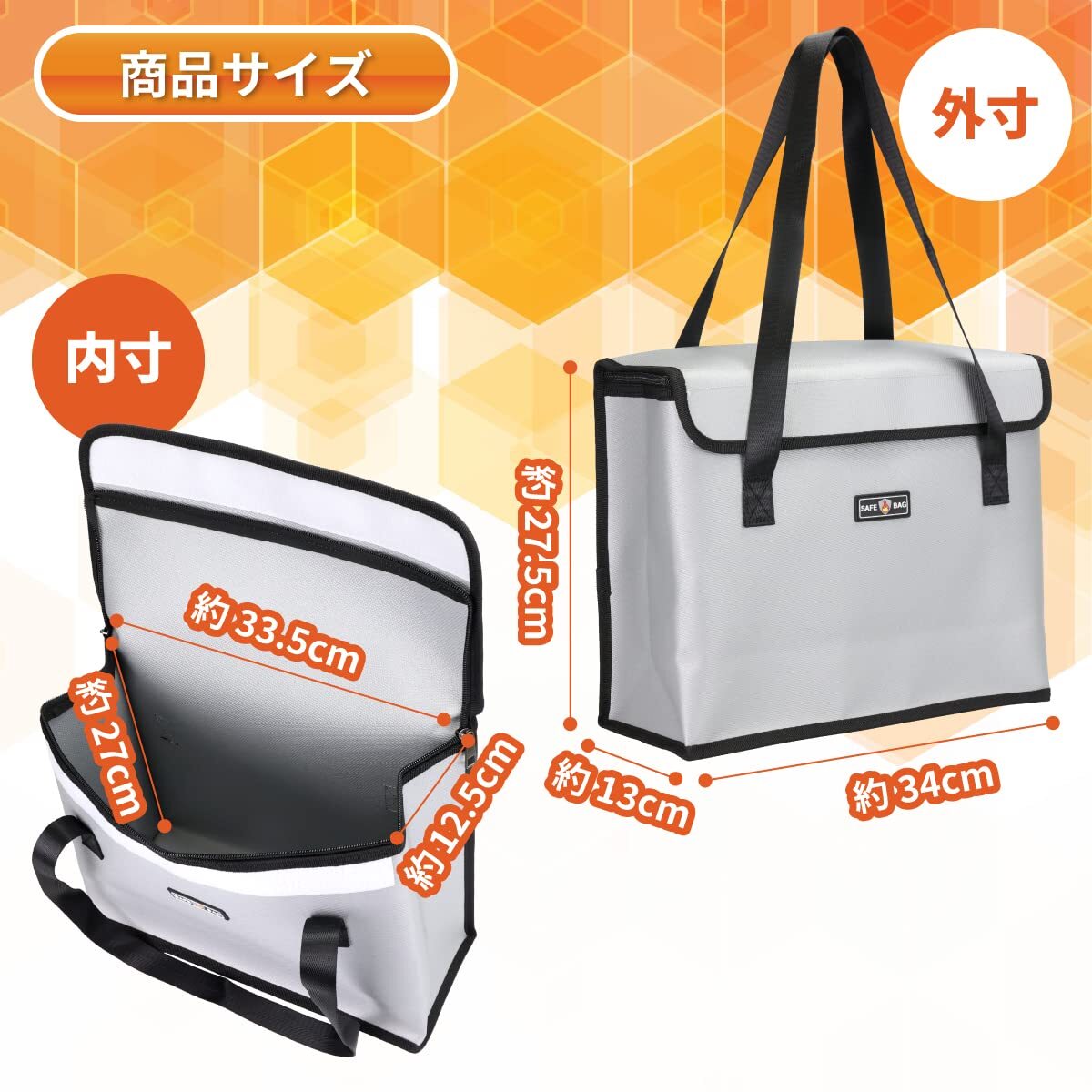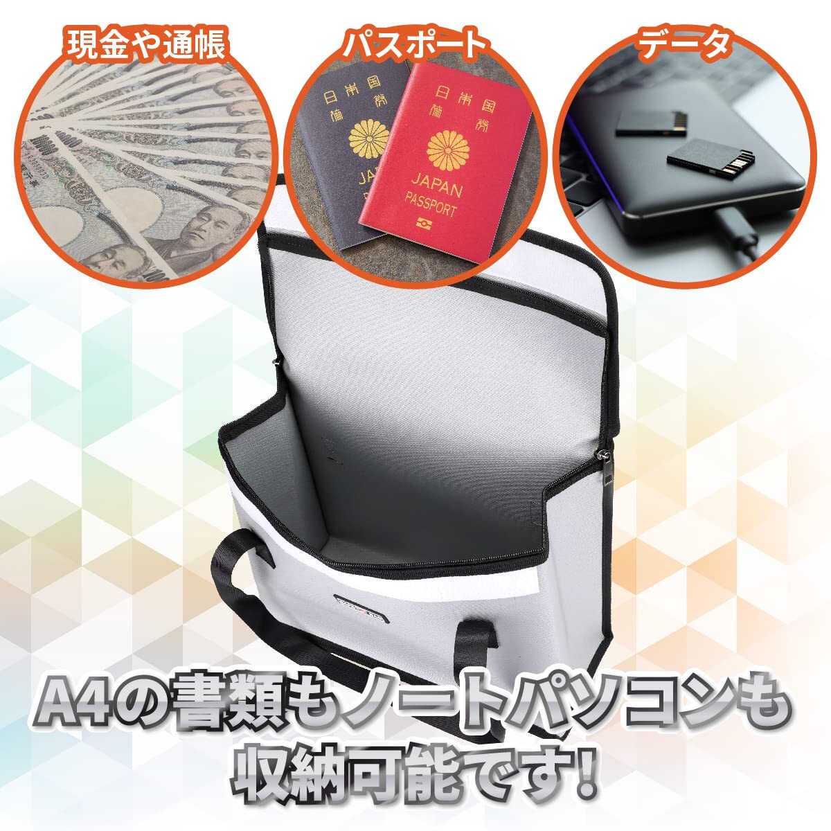 高密度ガラス繊維と高品質シリコンで作られており、約1,000度の高温に耐えられる耐火バッグです。外側と内側の二重防火素材により、貴重品・データ・パスポート・通帳などを火災から最低限守ります。約12Lの容量が入る大きめかつマチあり設計のため、A4サイズの書類・ノートパソコン・タブレット端末なども保管しておけます。