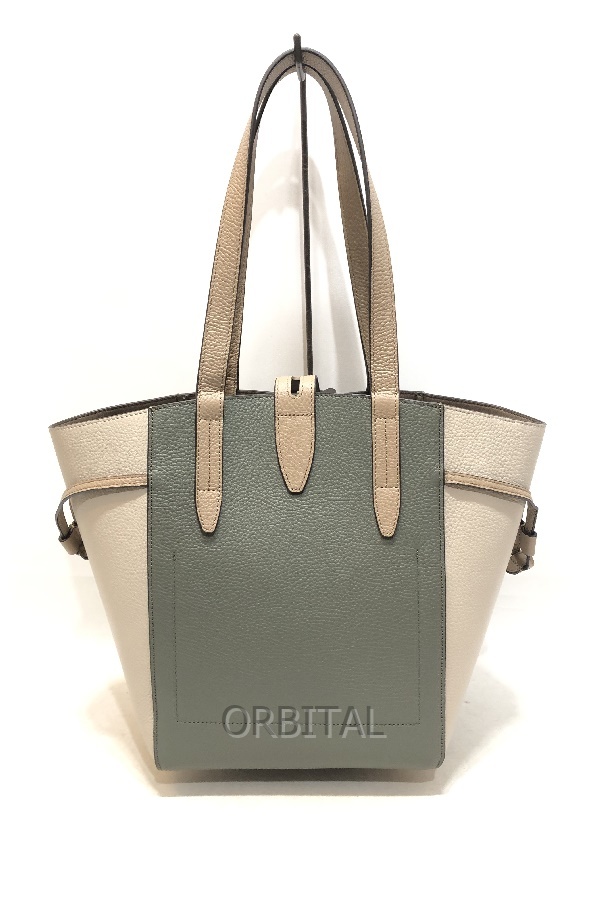 経堂) フルラ FURLA ネット NET レザー バイカラー トートバッグ カーキ ベージュ レディース