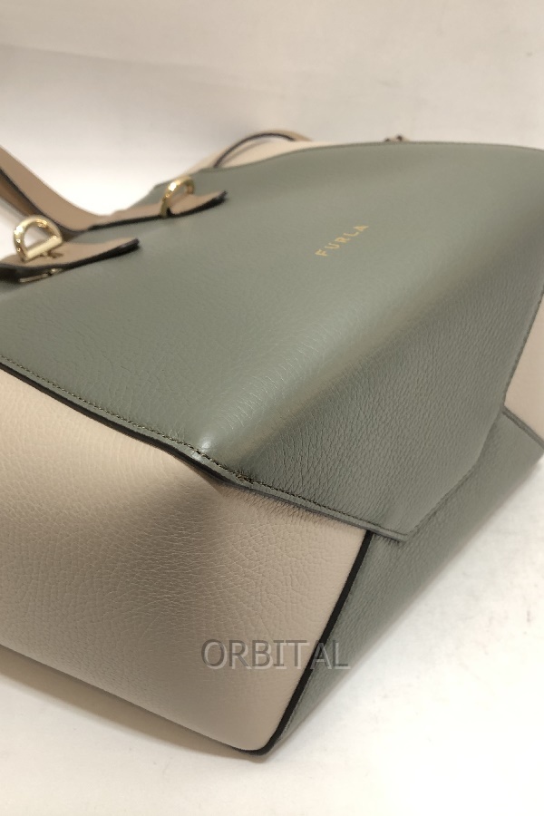 フルラ FURLA ネット NET レザー バイカラー トートバッグ カーキ ベージュ レディース