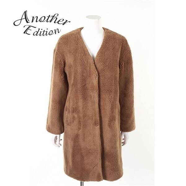 A5739/極美品 秋冬 Another Edition アナザーエディション ユナイテッドアローズ ボア ロング 膝丈 ノーカラーコート M 茶/レディース